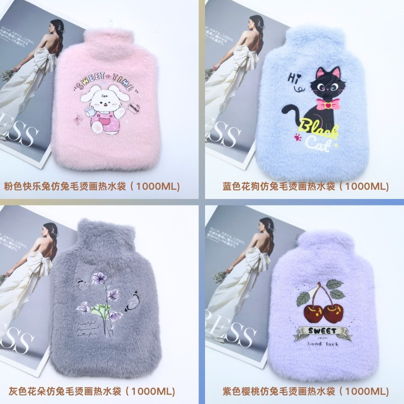 귀여운 자수 두꺼운 플러시 물 주입 온수병 겨울 손 따뜻하게 침대 따뜻하게 휴대용 손 따뜻하게