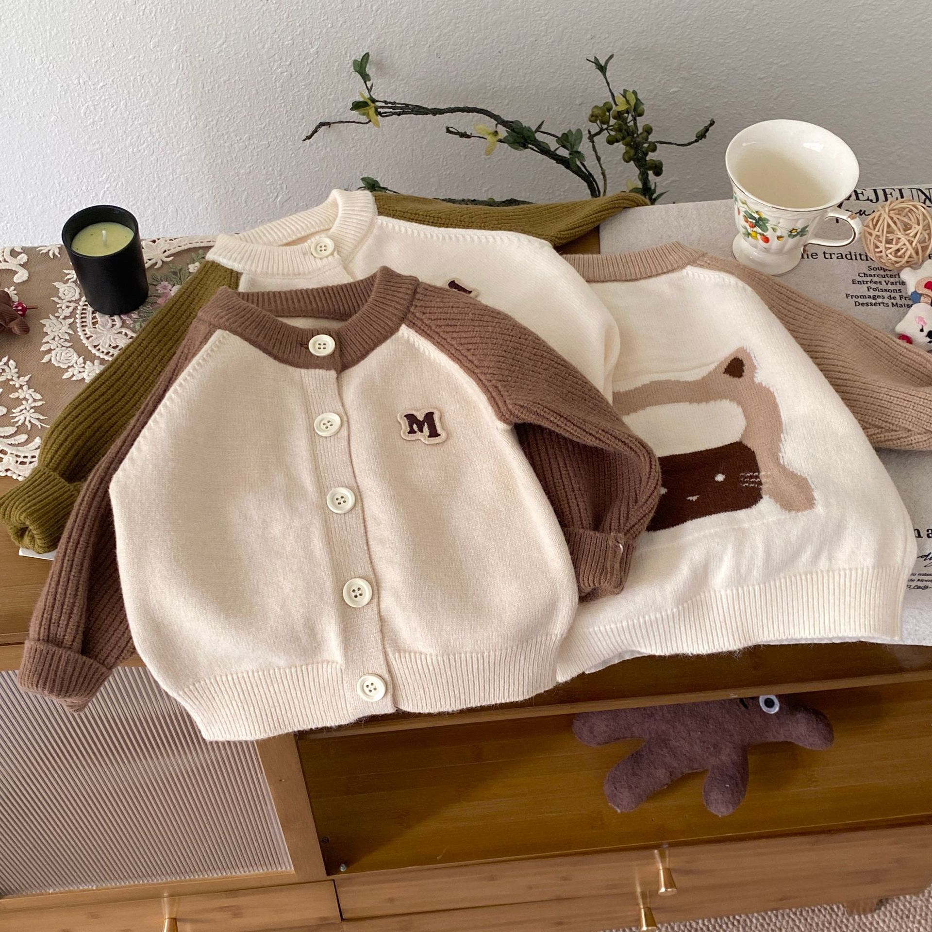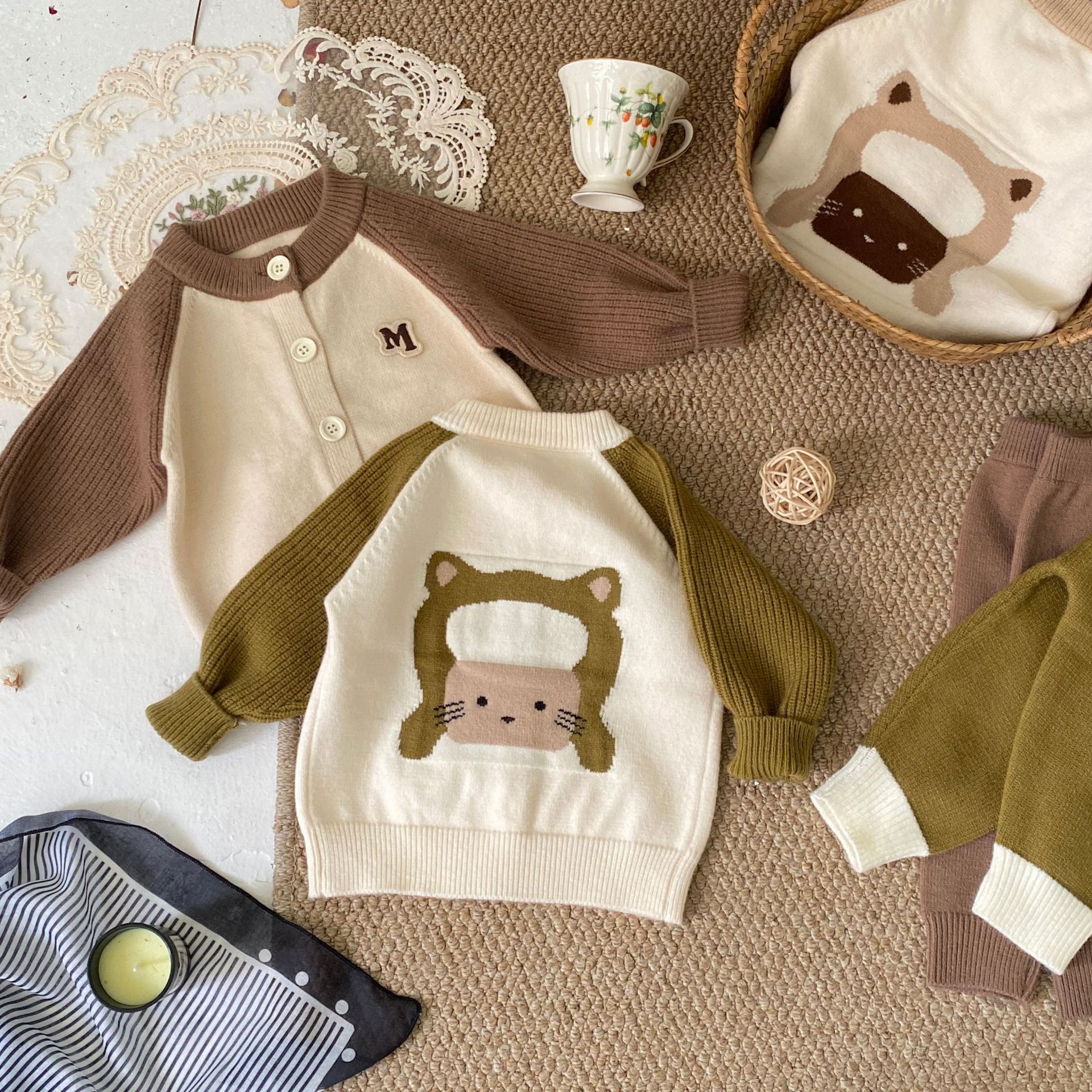 Ins 한국 스타일 유아 스웨터 카디건 코트 바지 2025 가을, 겨울 새로운 스타일 남성과 여성 아기 만화 니트스토어 가기