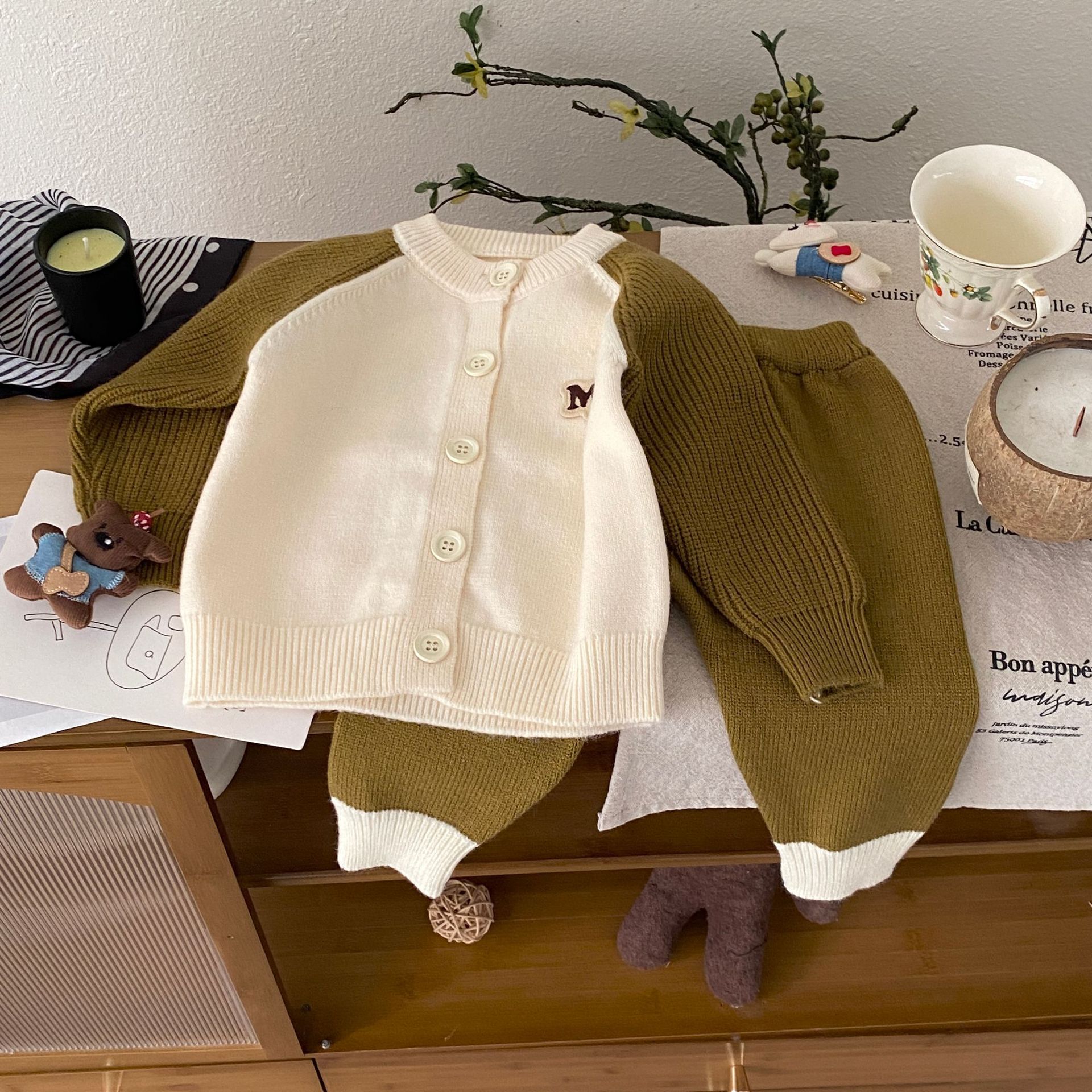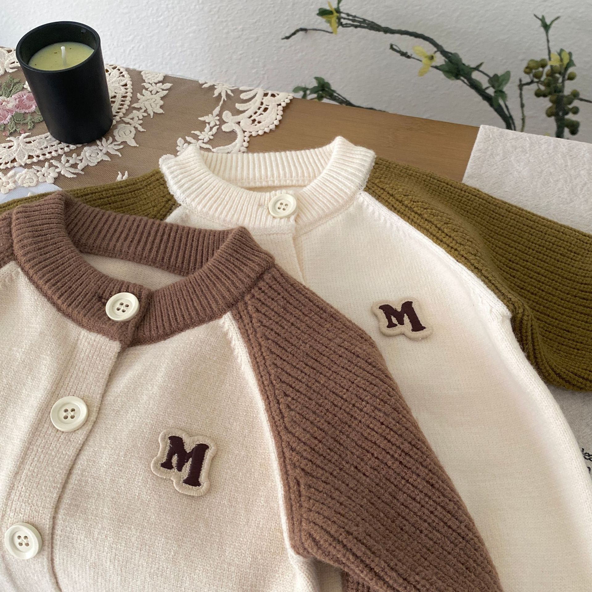 Ins 한국 스타일 유아 스웨터 카디건 코트 바지 2025 가을, 겨울 새로운 스타일 남성과 여성 아기 만화 니트