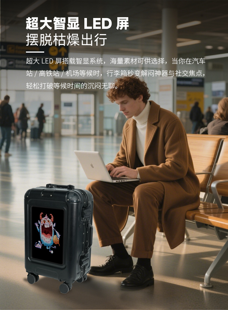 Loy 새로운 LED 가방 HD 디스플레이 가방 APP 블루투스 사용자 정의 애니메이션 방수 트롤리 케이스
