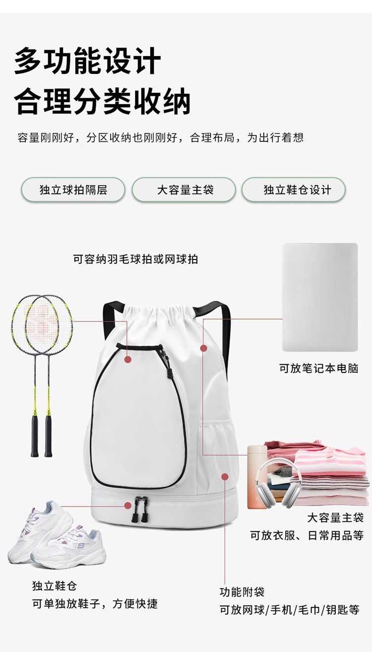 배드민턴 드로스트링 새로운 피트니스 배낭 대용량 저장 건식 및 습식 분리 배낭 농구 훈련 가방