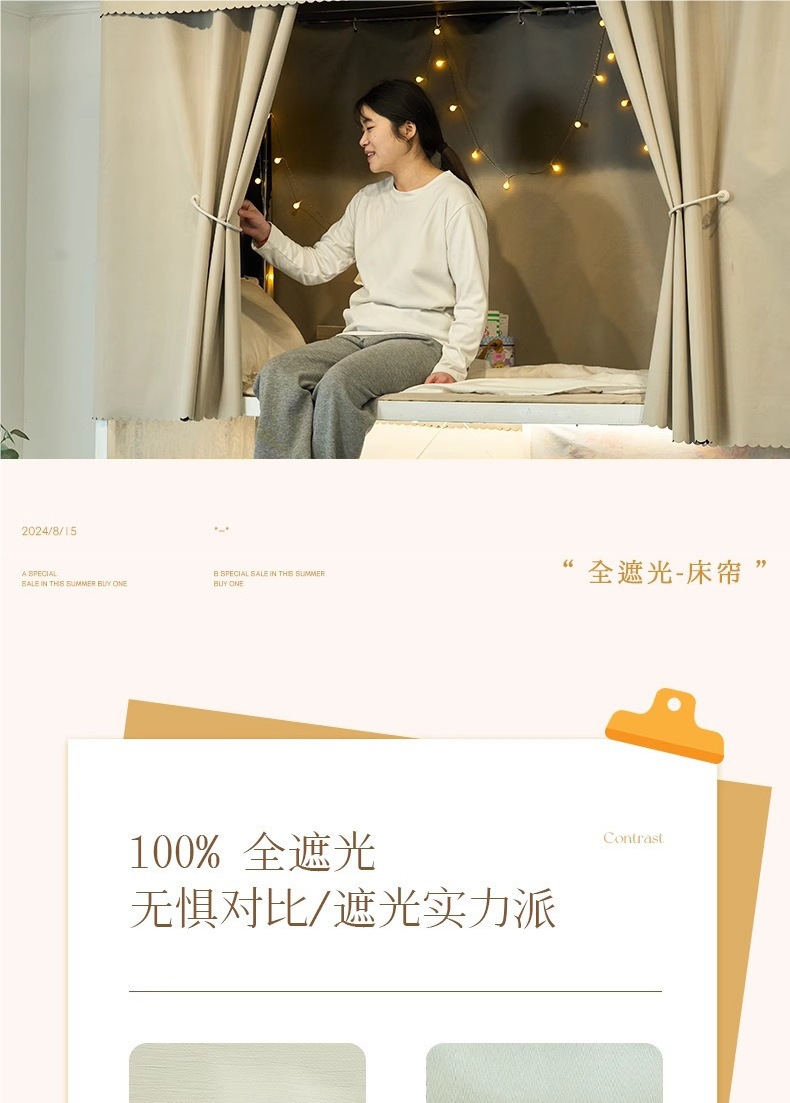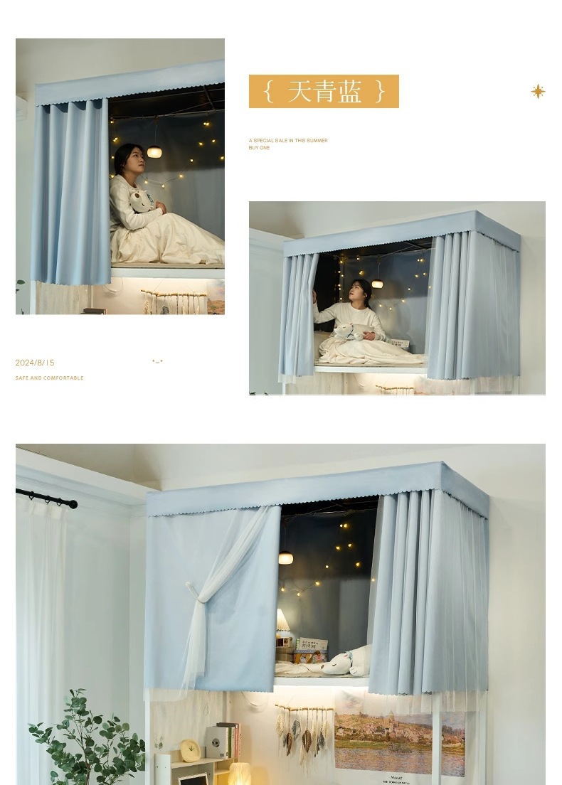 학생 기숙사용 100% 강력한 차광 침대 커튼, 단색 침대 커튼, 남녀 기숙사 이층 침대, 침대 주변 커튼스토어 가기