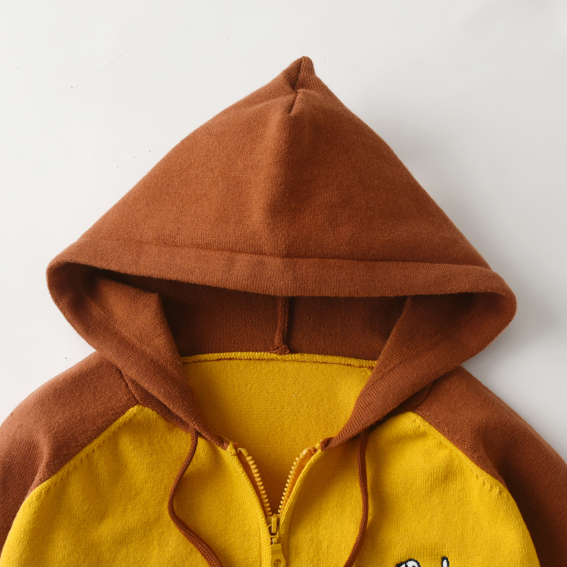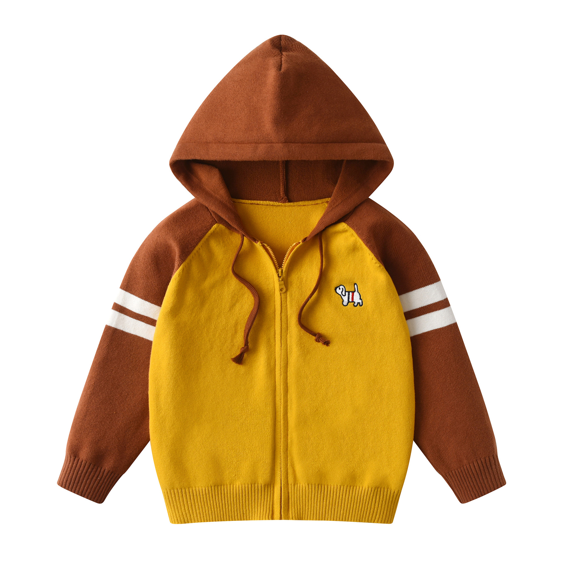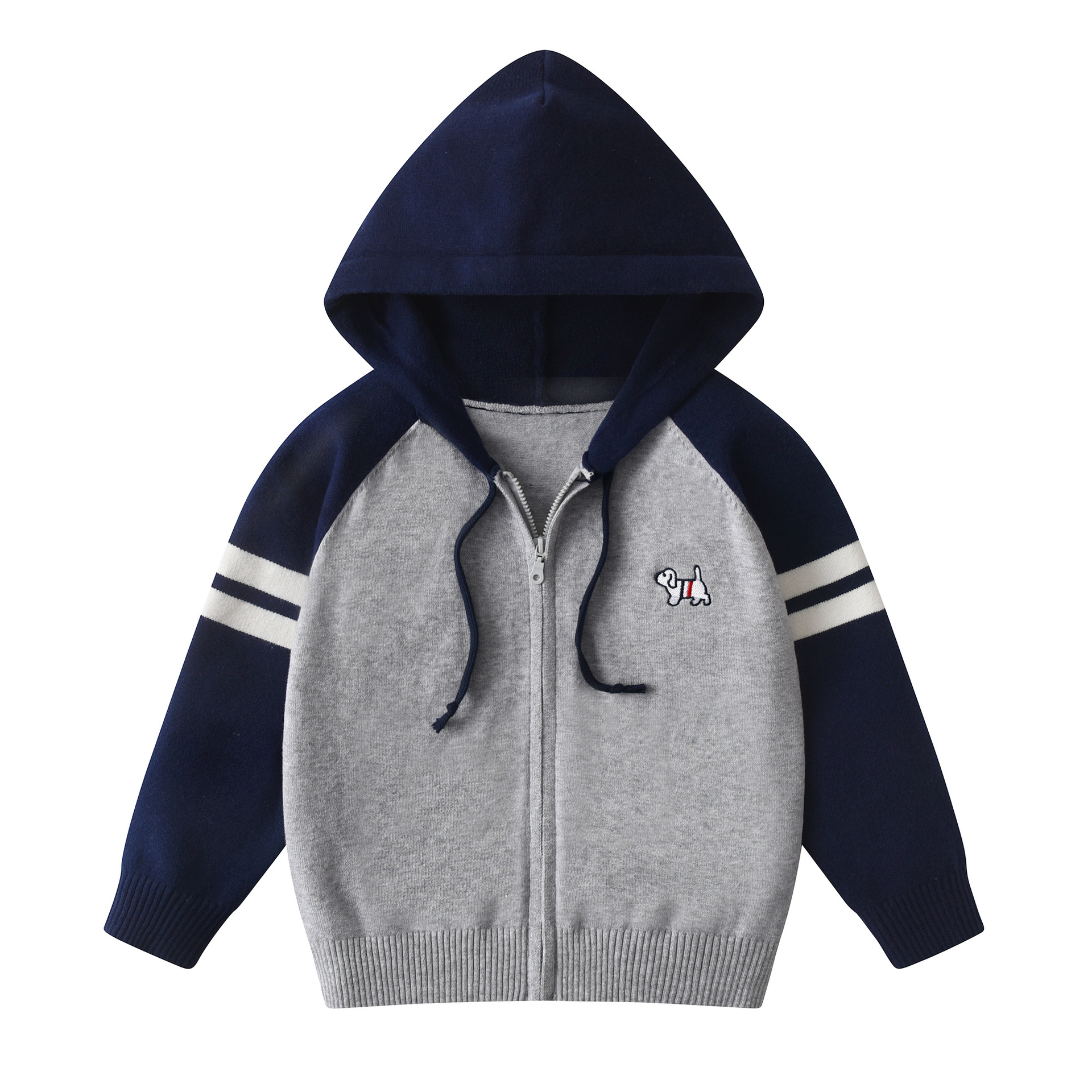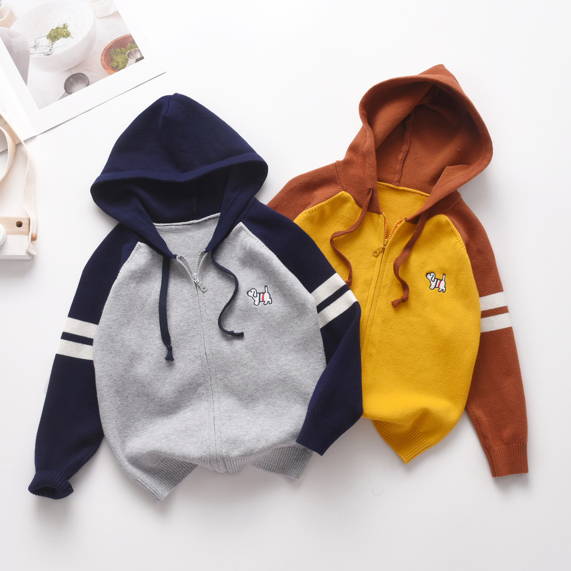 가을 새로운 면화 후드 어린이 스웨터 재킷 2025 단일 레이어 수 놓은 만화 어린이 니트 지퍼 셔츠