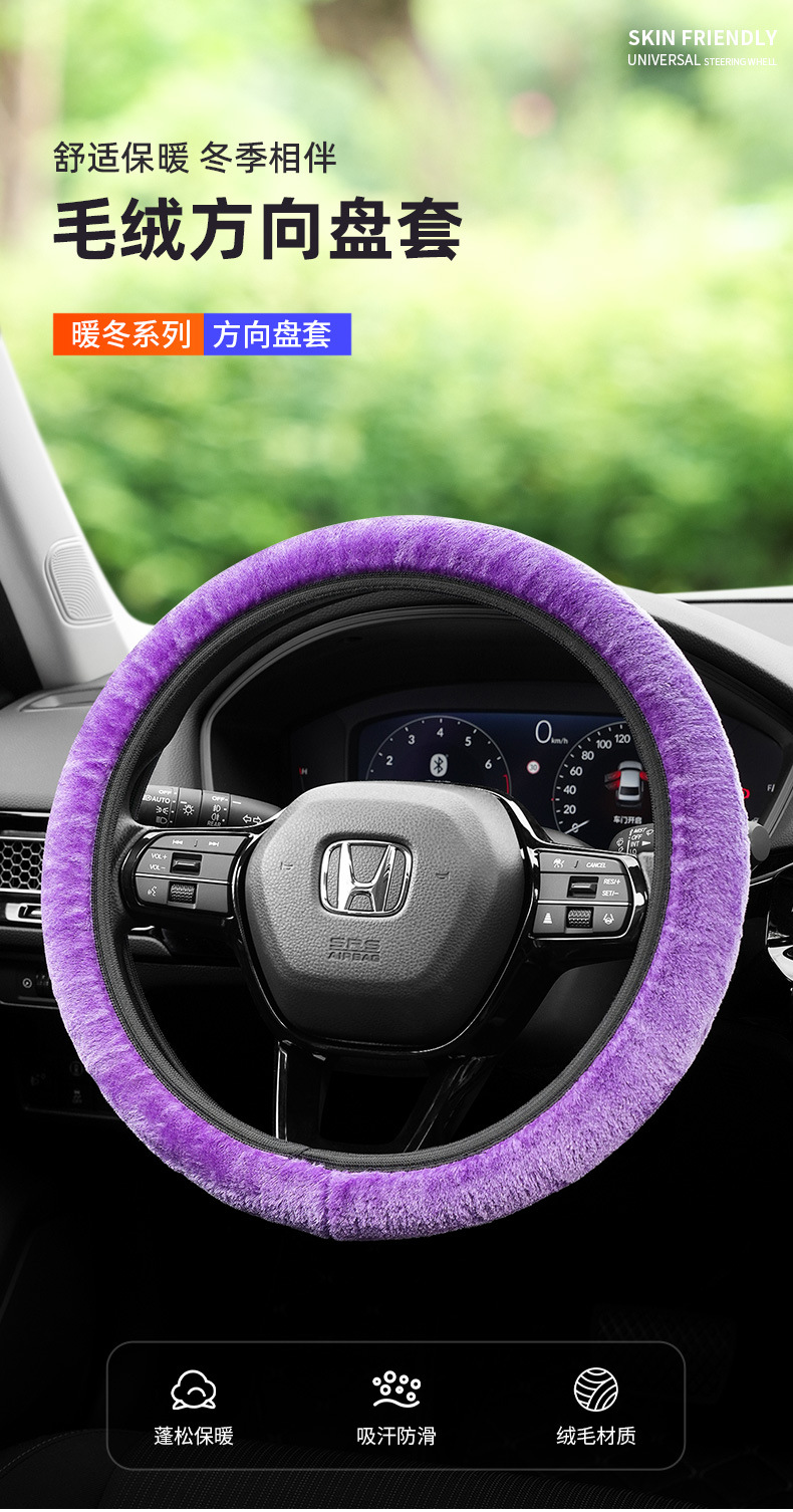 2025 새로운 스티어링 휠 커버 겨울 짧은 플러시 따뜻한 자동차 용품 범용 미끄럼 방지 통기성스토어 가기