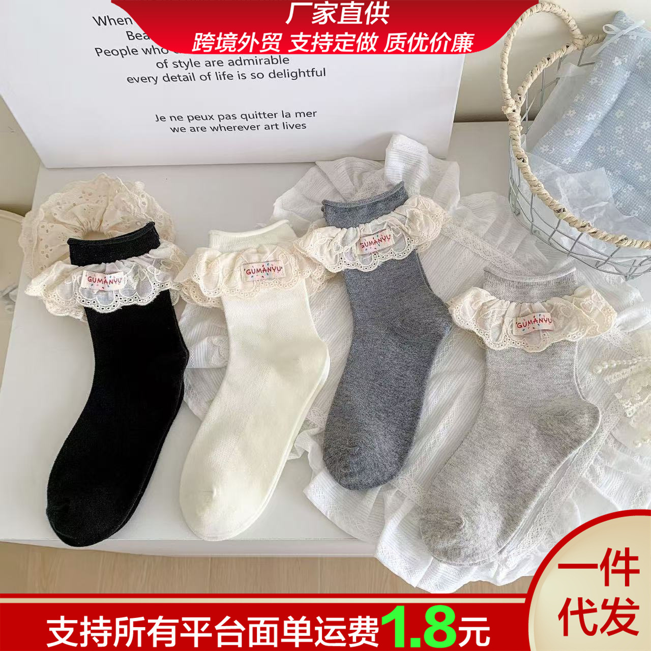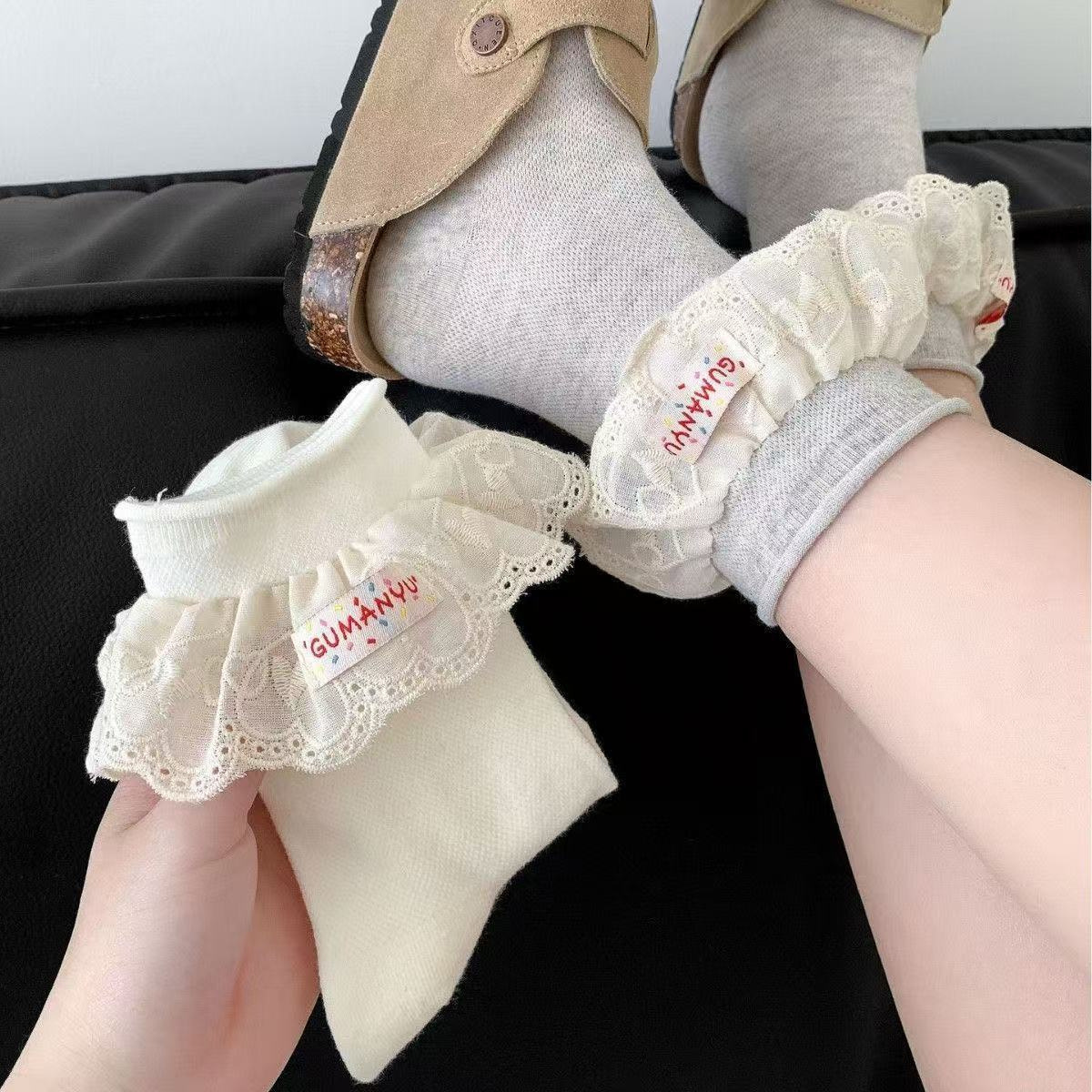 봄 여름 한국 발레 스타일 여성 양말 천 라벨 양말 소녀 레이스 자수 통기성 메쉬 양말 여성용