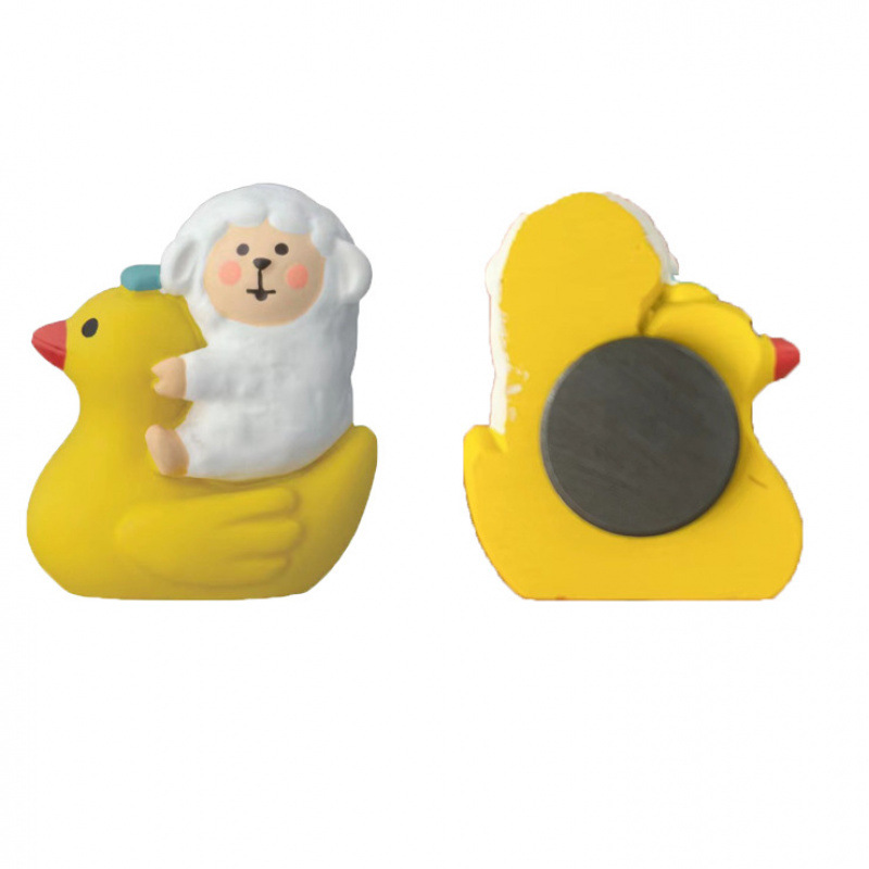• 작은 노란 오리와 양 냉장고 자석을 타고