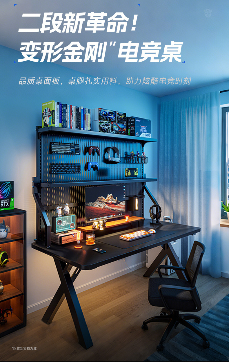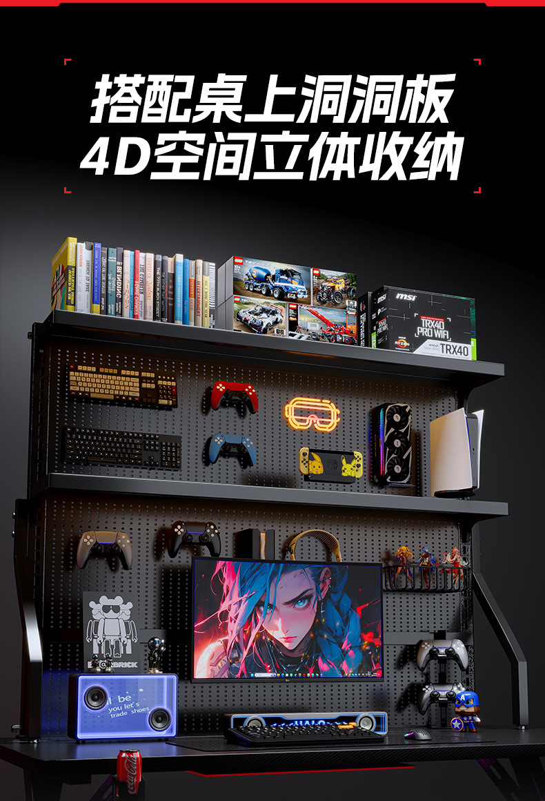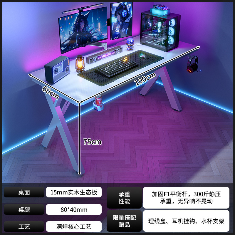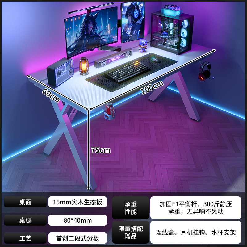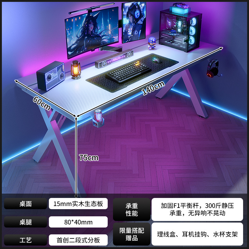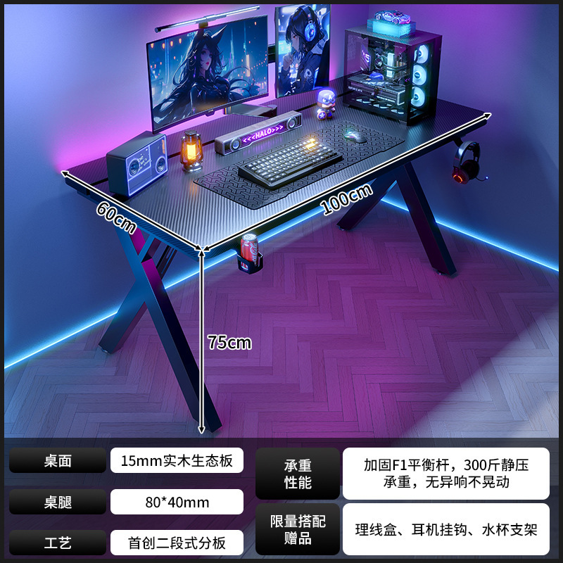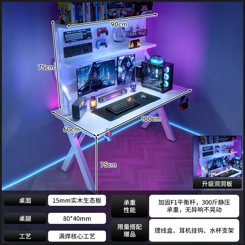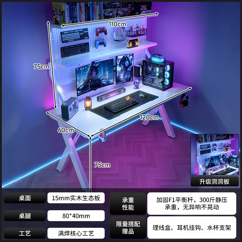 새로운 단단한 나무 컴퓨터 책상 침실 홈 탄소 섬유 게임 테이블 구멍 보드 스토리지 랙 라이브 방송 테이블 작업대