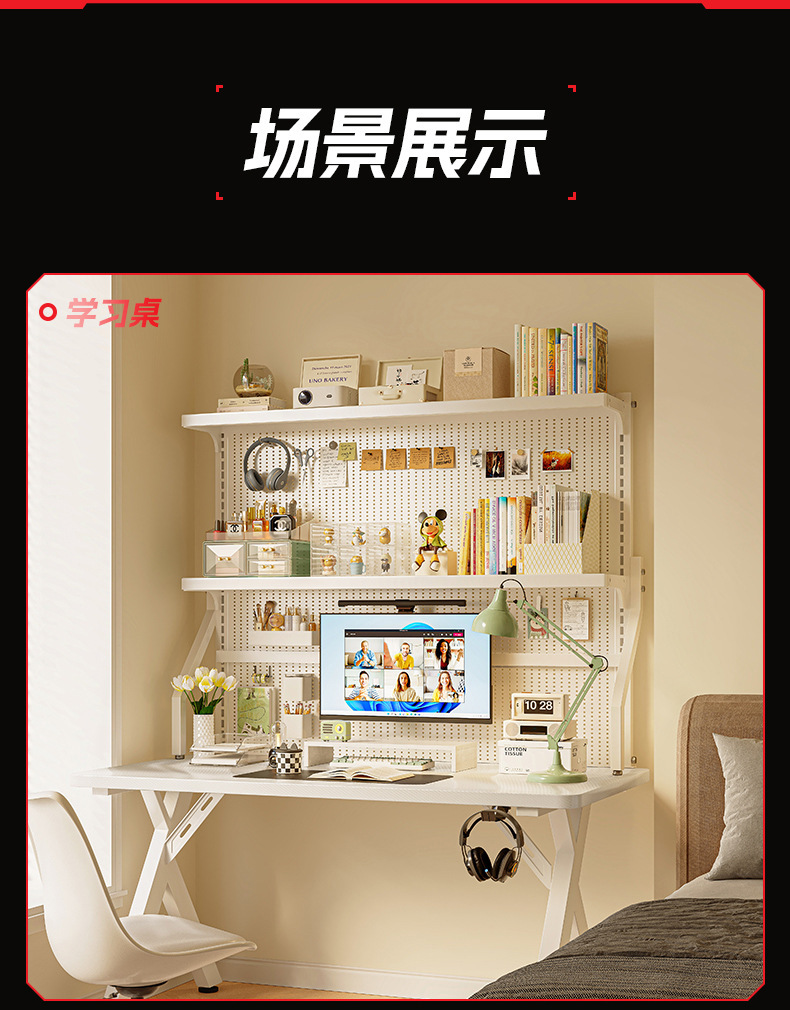 새로운 단단한 나무 컴퓨터 책상 침실 홈 탄소 섬유 게임 테이블 구멍 보드 스토리지 랙 라이브 방송 테이블 작업대스토어 가기