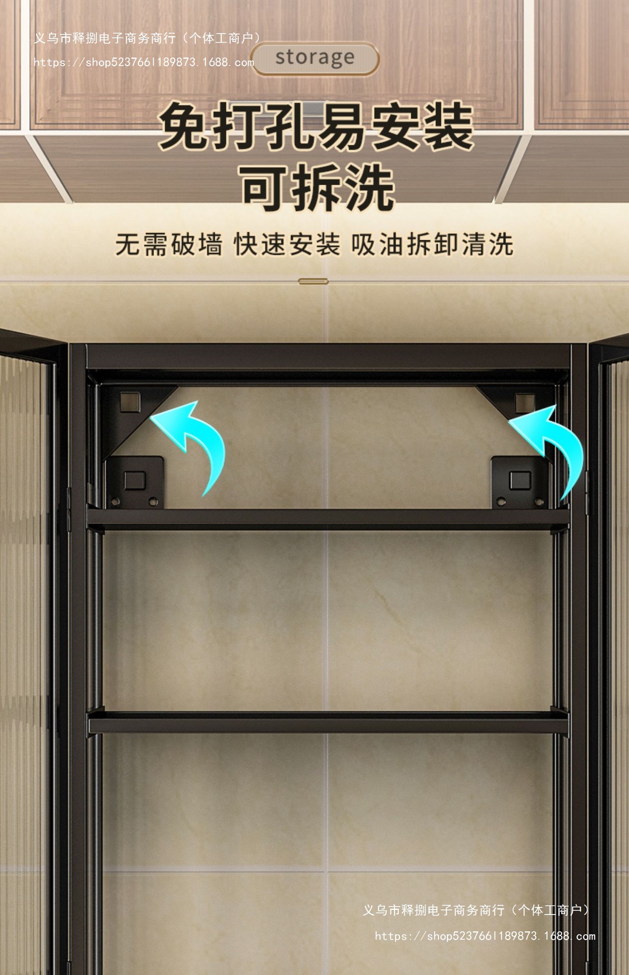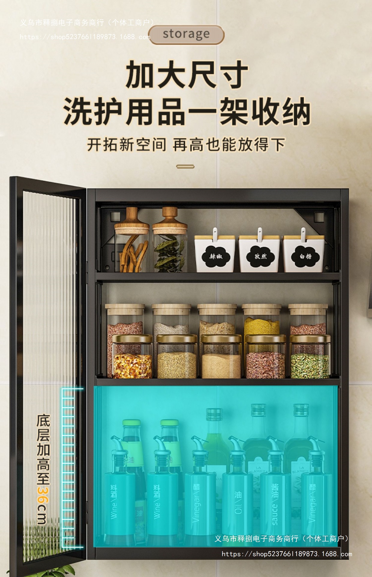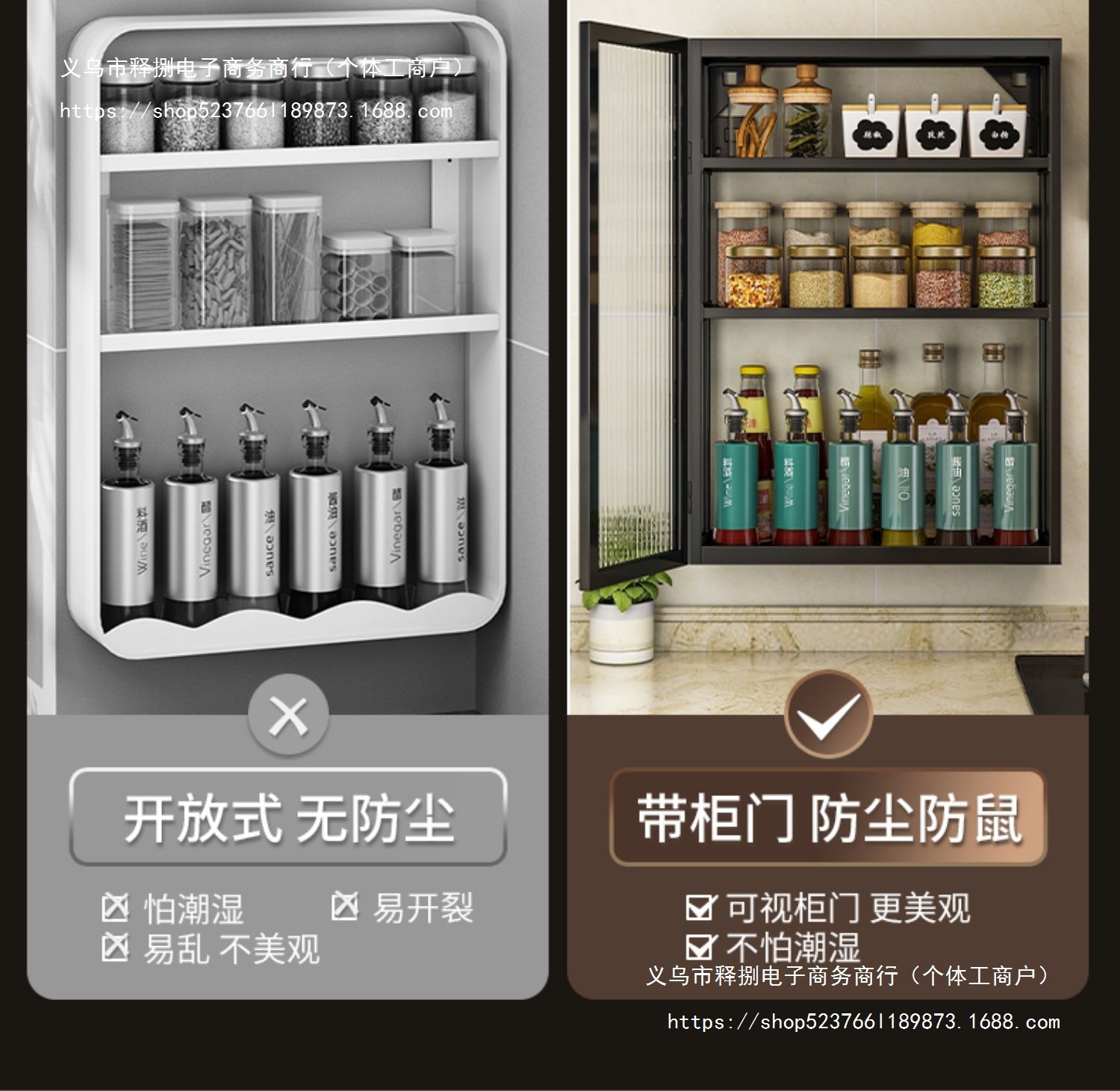 주방 벽 수납 캐비닛, 펀치 없는 벽걸이형, 방진 조미료 및 조미료 수납 선반, 도어가 있는 벽 수납 캐비닛
