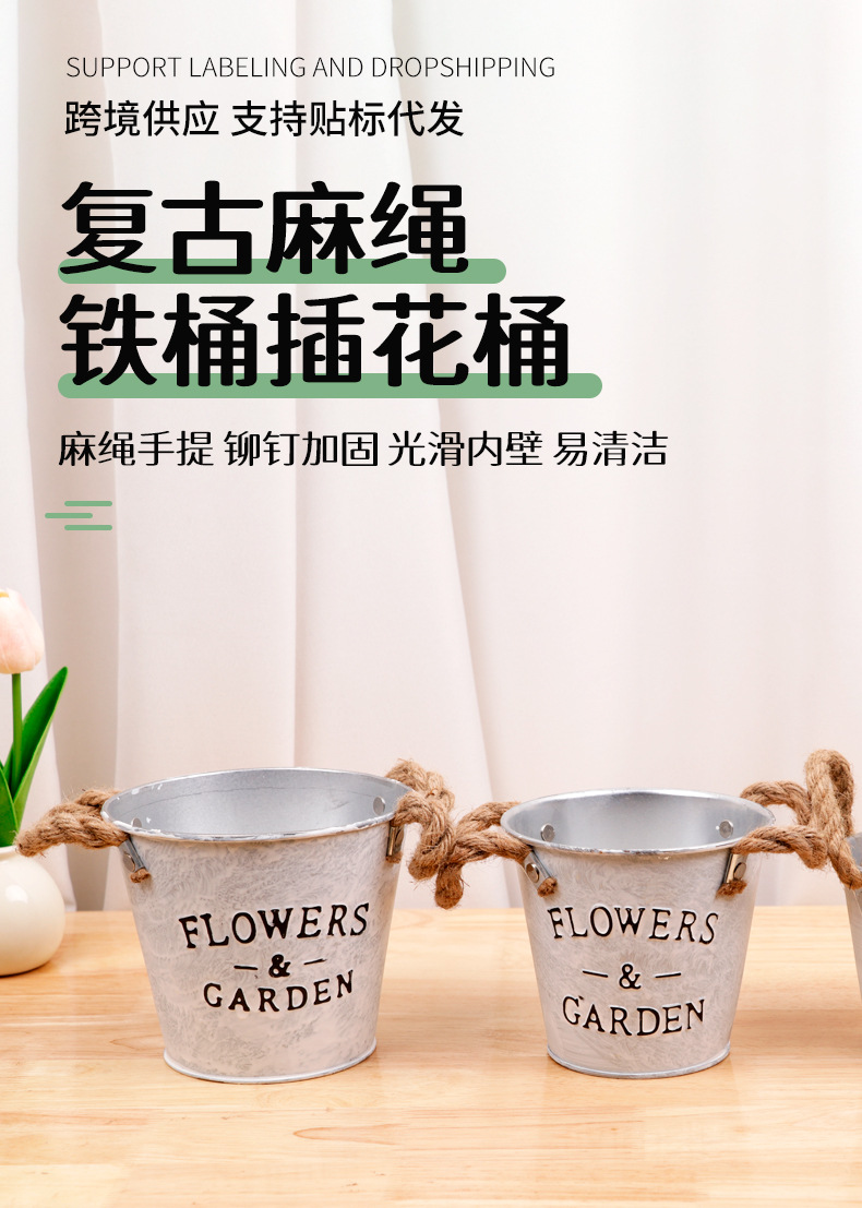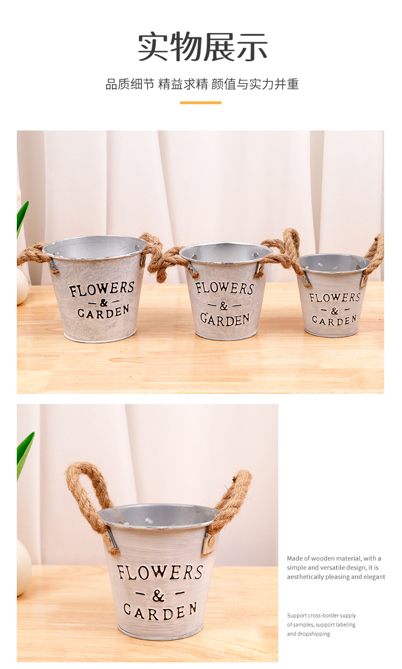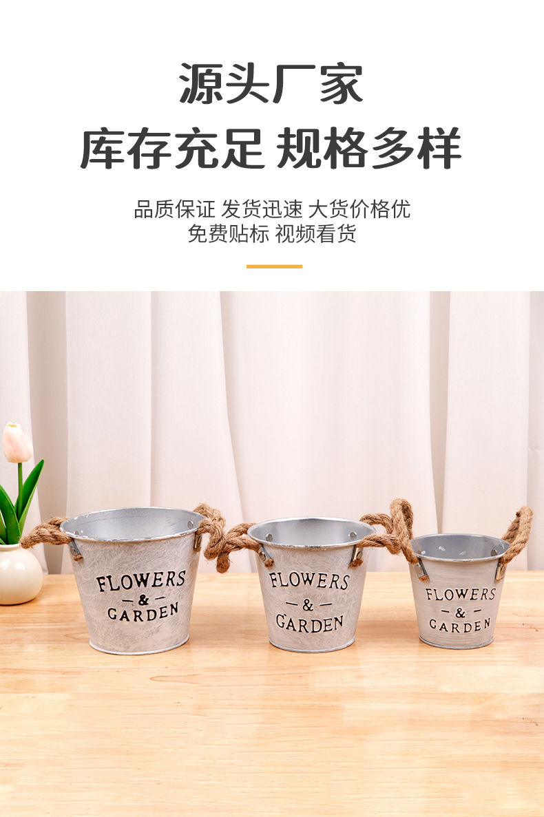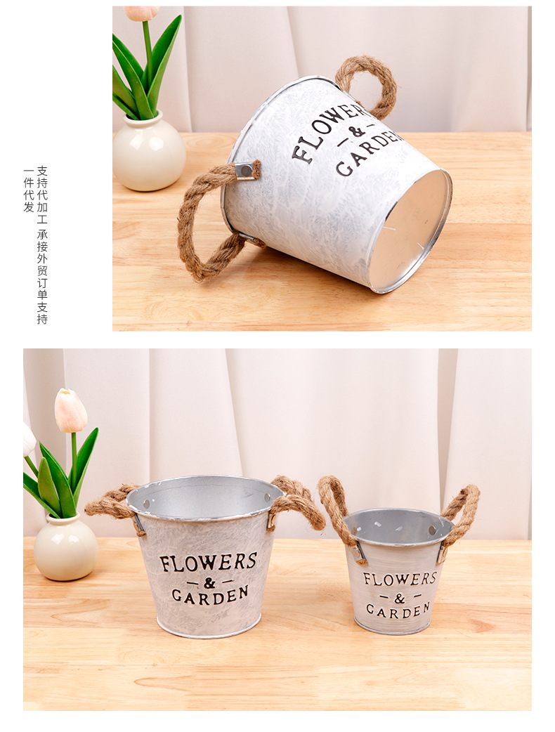 크로스보더 마대 철제 양철 화분 다육식물용 철제 화분 발코니 탁상용 화분 꽃꽂이용 화분 꽃꽂이 용품 녹색 식물