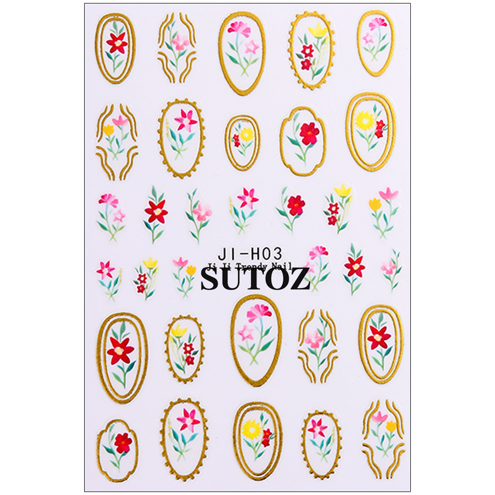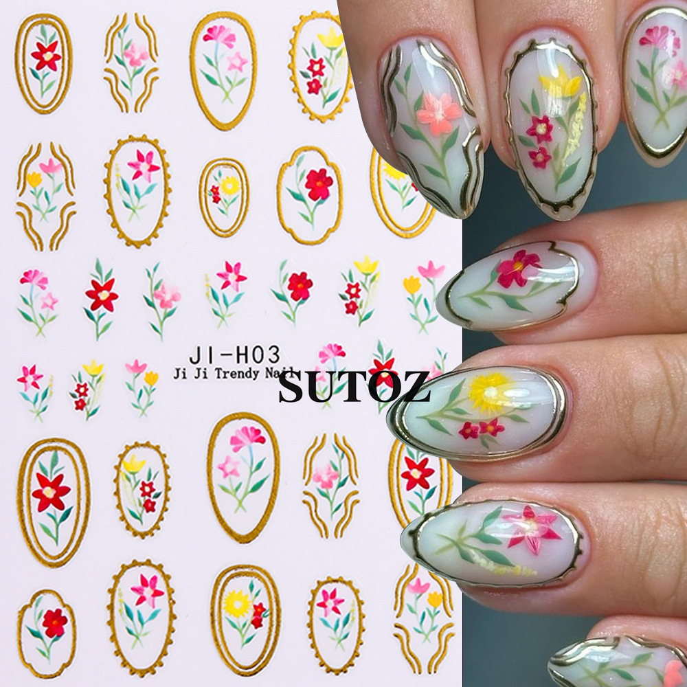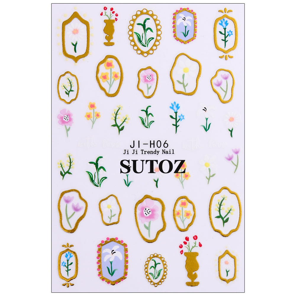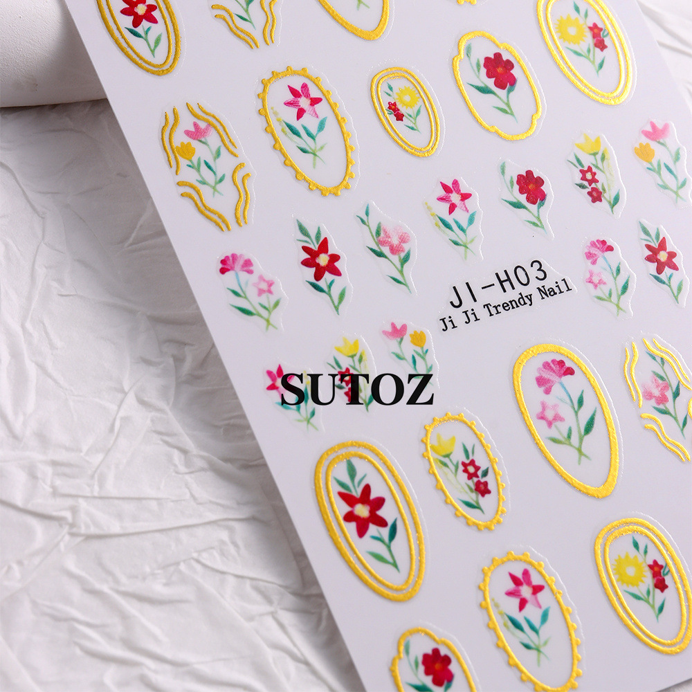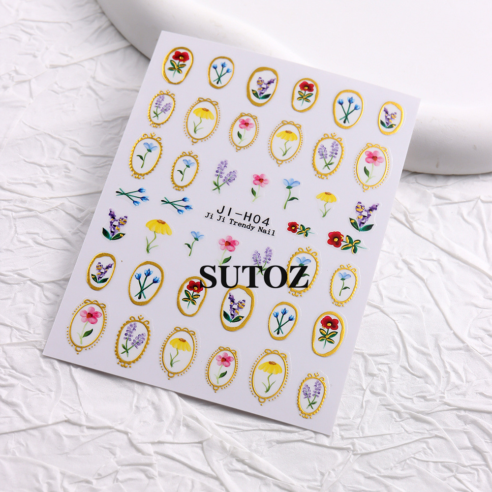 국경 간 새로운 네일 아트 스티커 핫 스탬핑 복고풍 사진 프레임 봄과 여름 꽃 꿀벌 네일 접착 스티커 네일