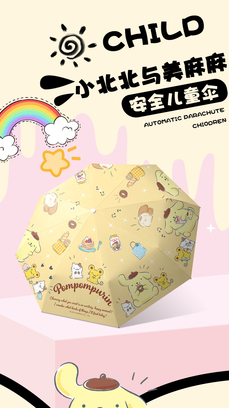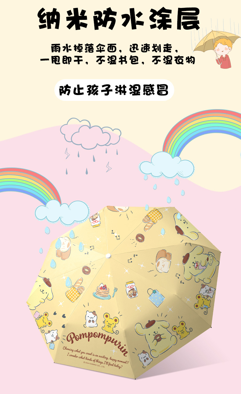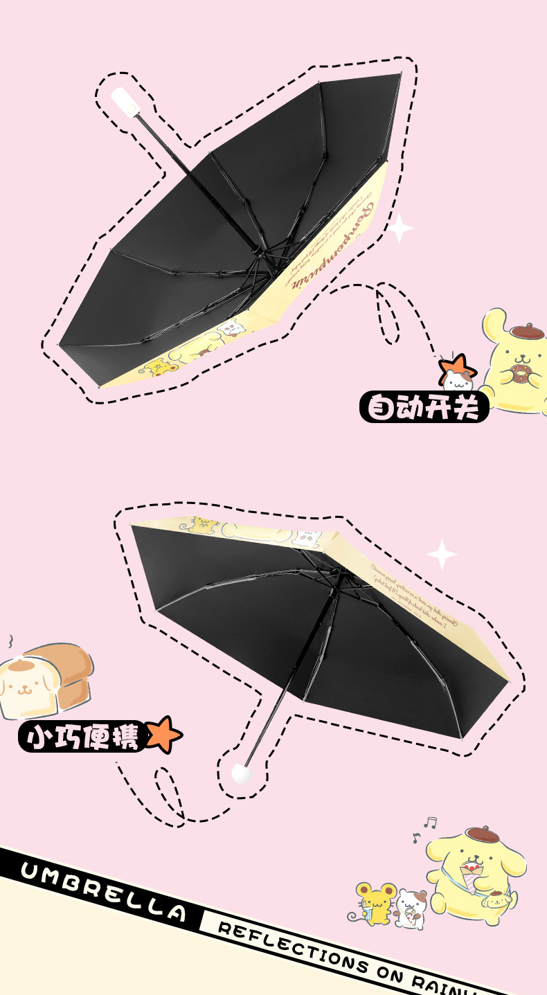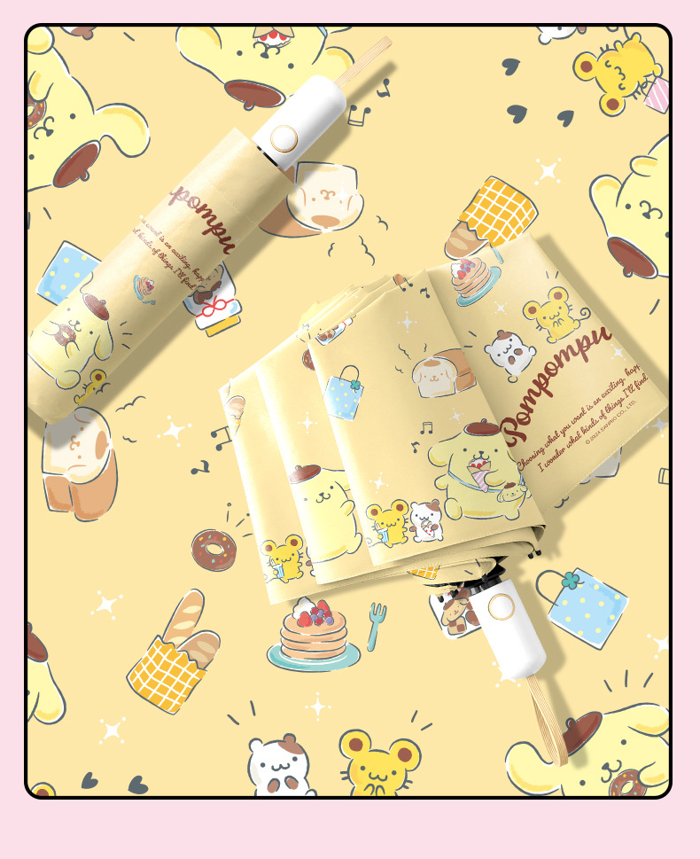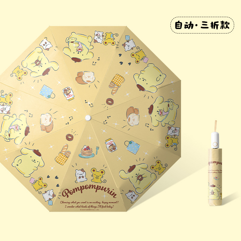 정품 Sanrio 만화 노란색 Pompompurin 우산 어린이 태양 보호 파라솔 접이식 자동 70% off 8 뼈 우산스토어 가기