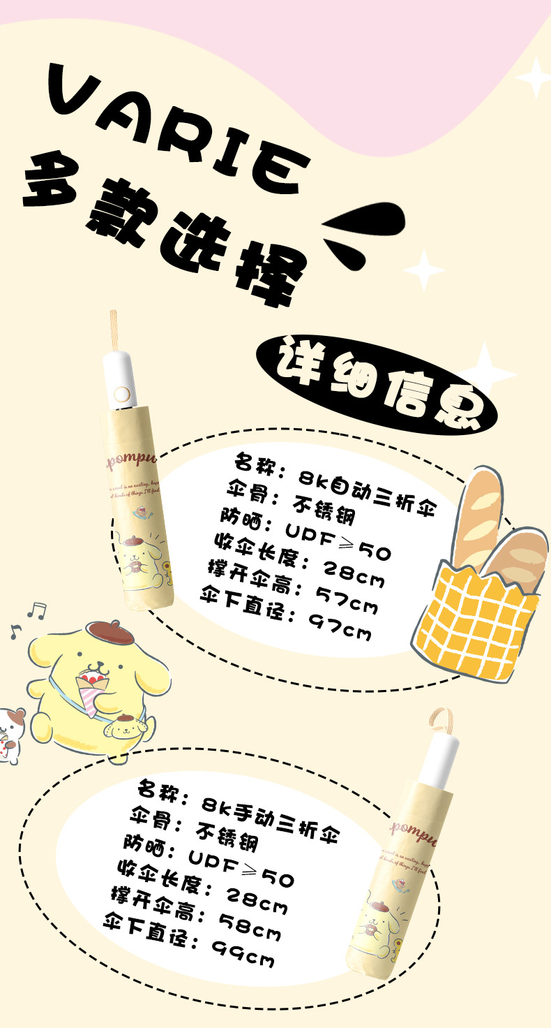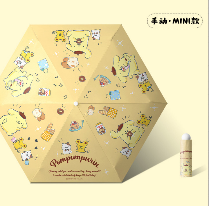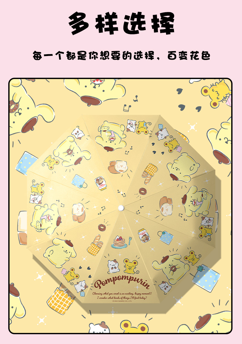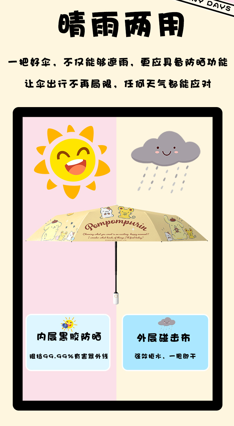 정품 Sanrio 만화 노란색 Pompompurin 우산 어린이 태양 보호 파라솔 접이식 자동 70% off 8 뼈 우산스토어 가기