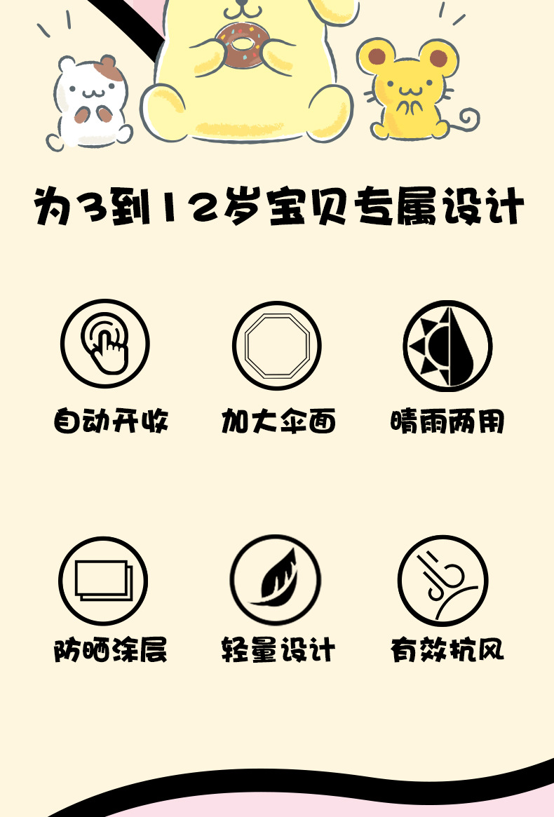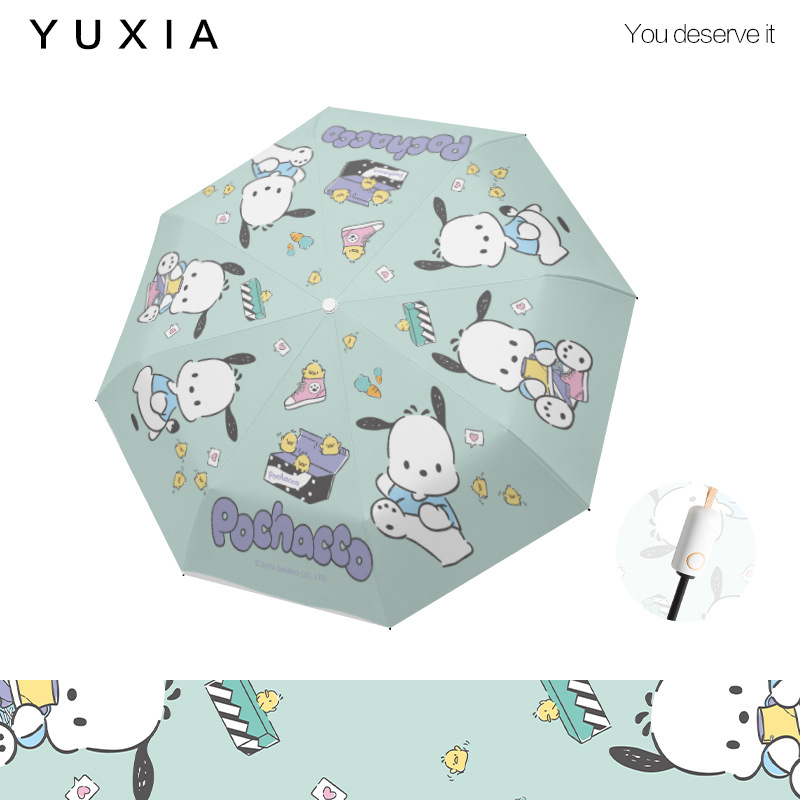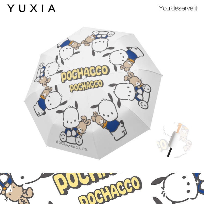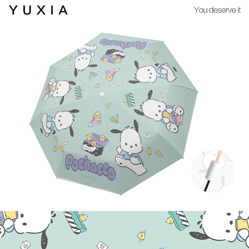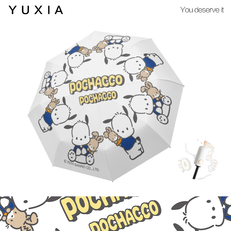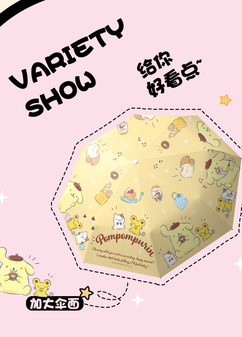 정품 Sanrio 만화 노란색 Pompompurin 우산 어린이 태양 보호 파라솔 접이식 자동 70% off 8 뼈 우산스토어 가기