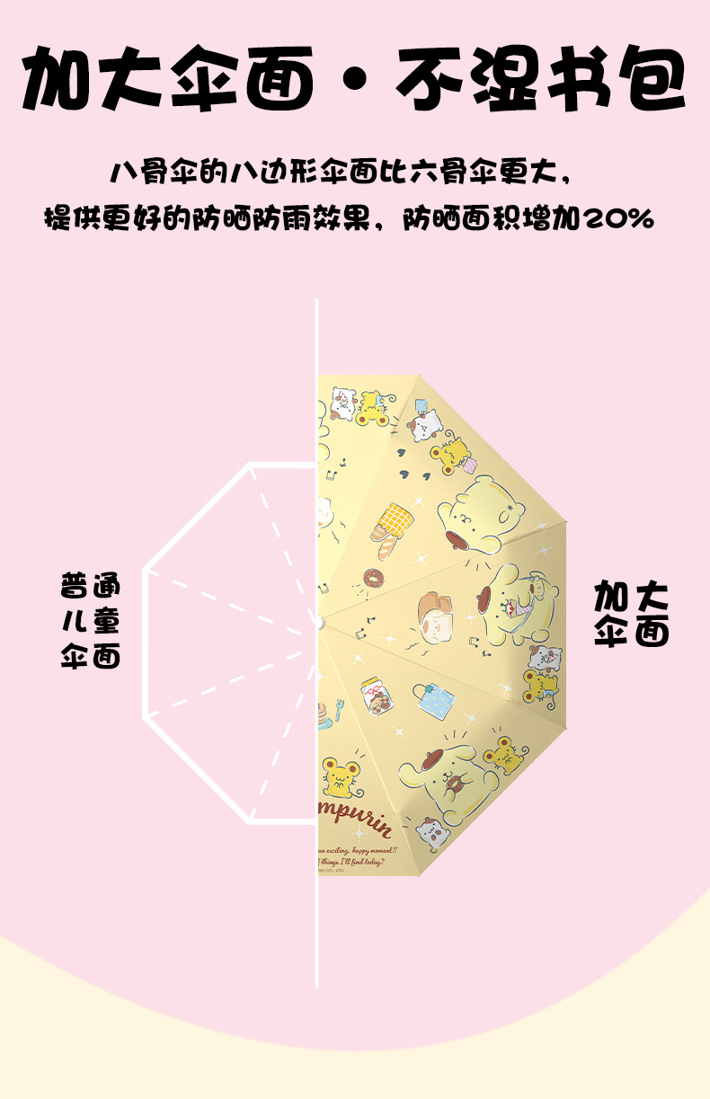 정품 Sanrio 만화 노란색 Pompompurin 우산 어린이 태양 보호 파라솔 접이식 자동 70% off 8 뼈 우산