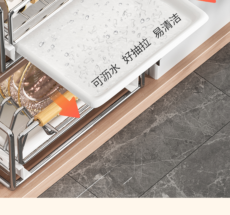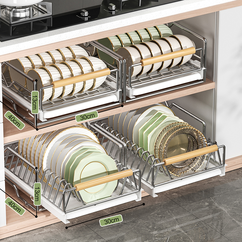 스테인레스 스틸 식기 보관함 주방 캐비닛 내장 선반 서랍형 바구니 풀아웃 그릇 및 접시 배수구 식기 선반