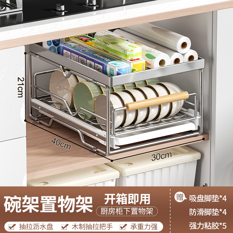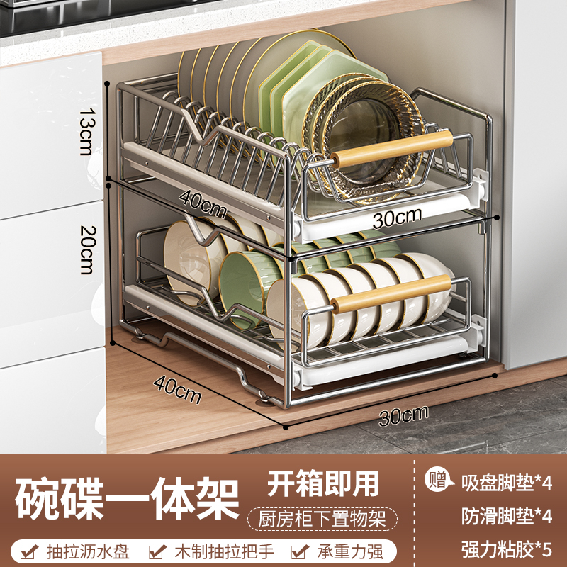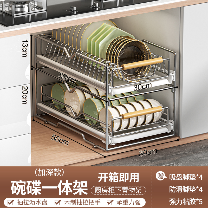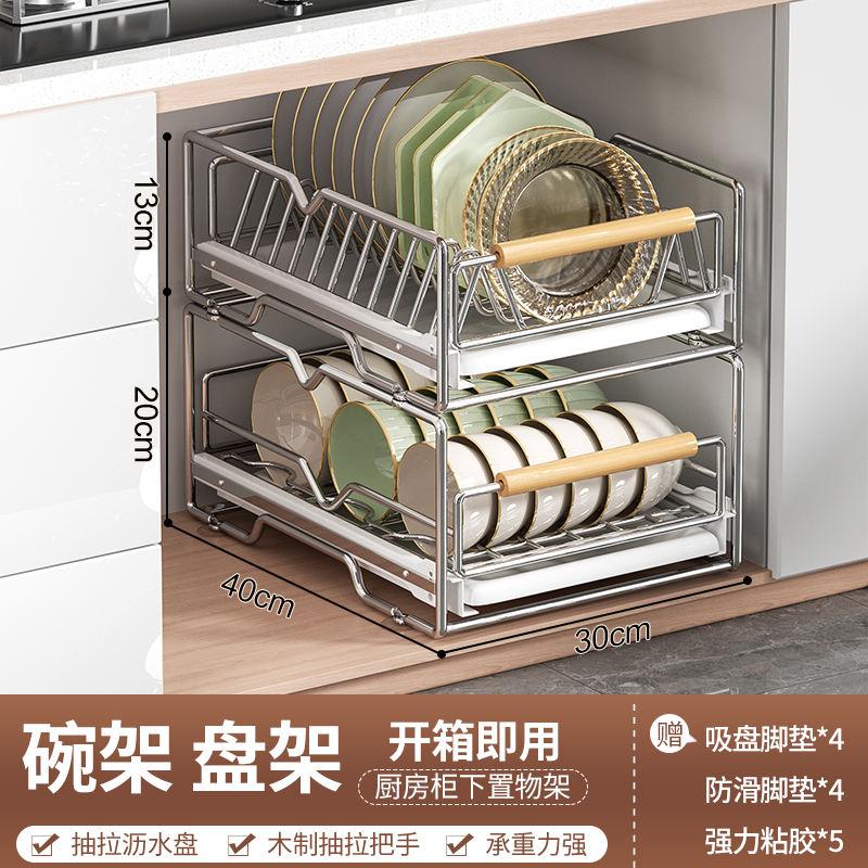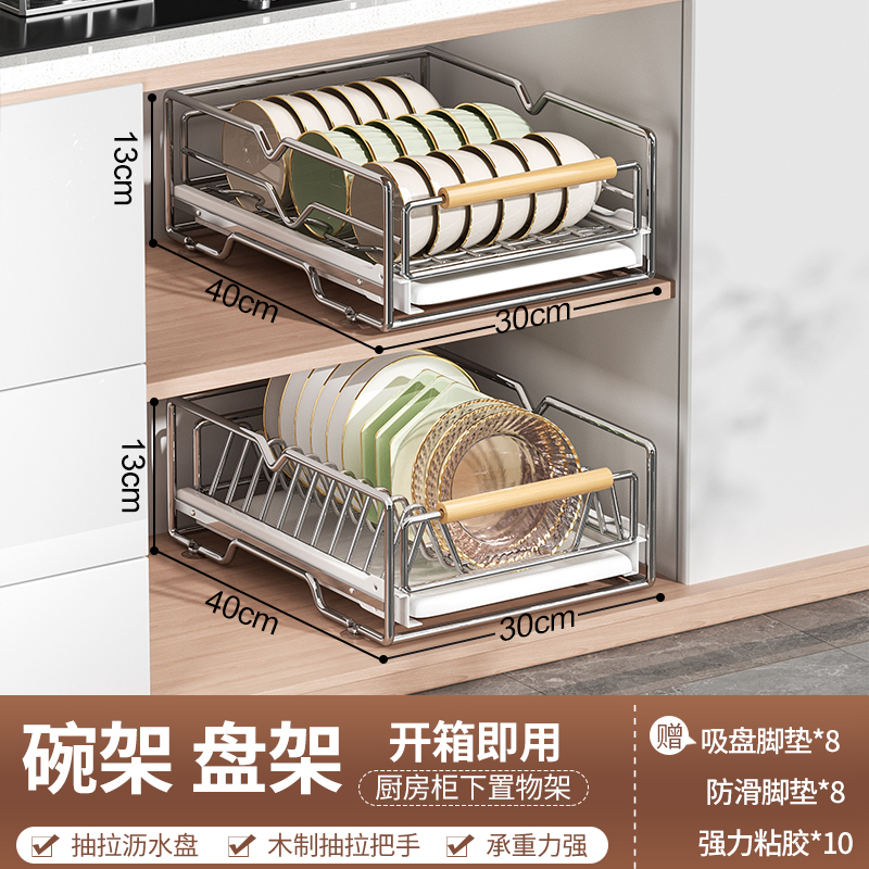 스테인레스 스틸 식기 보관함 주방 캐비닛 내장 선반 서랍형 바구니 풀아웃 그릇 및 접시 배수구 식기 선반스토어 가기