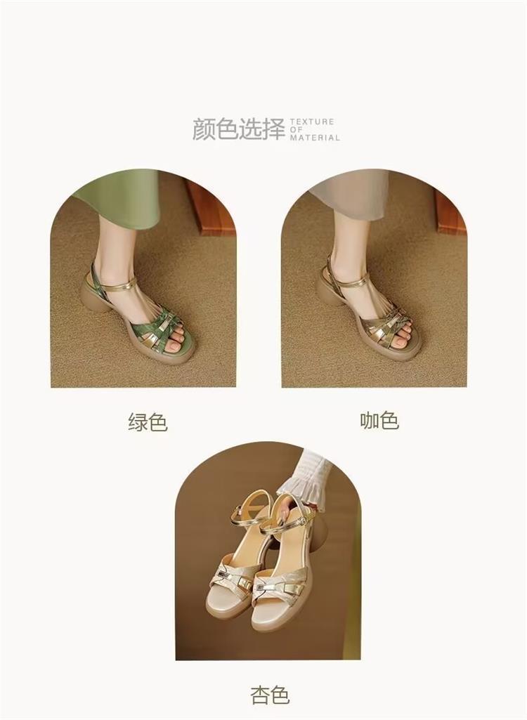 여성을위한 레트로 부드러운 가죽 두꺼운 밑창 하이힐 오픈 발가락 샌들 2025 여름 새로운 두꺼운 굽 짠 색상 일체형 로마 신발