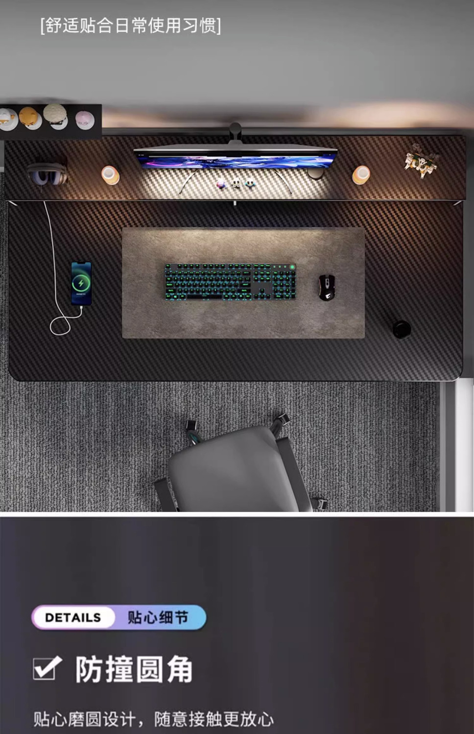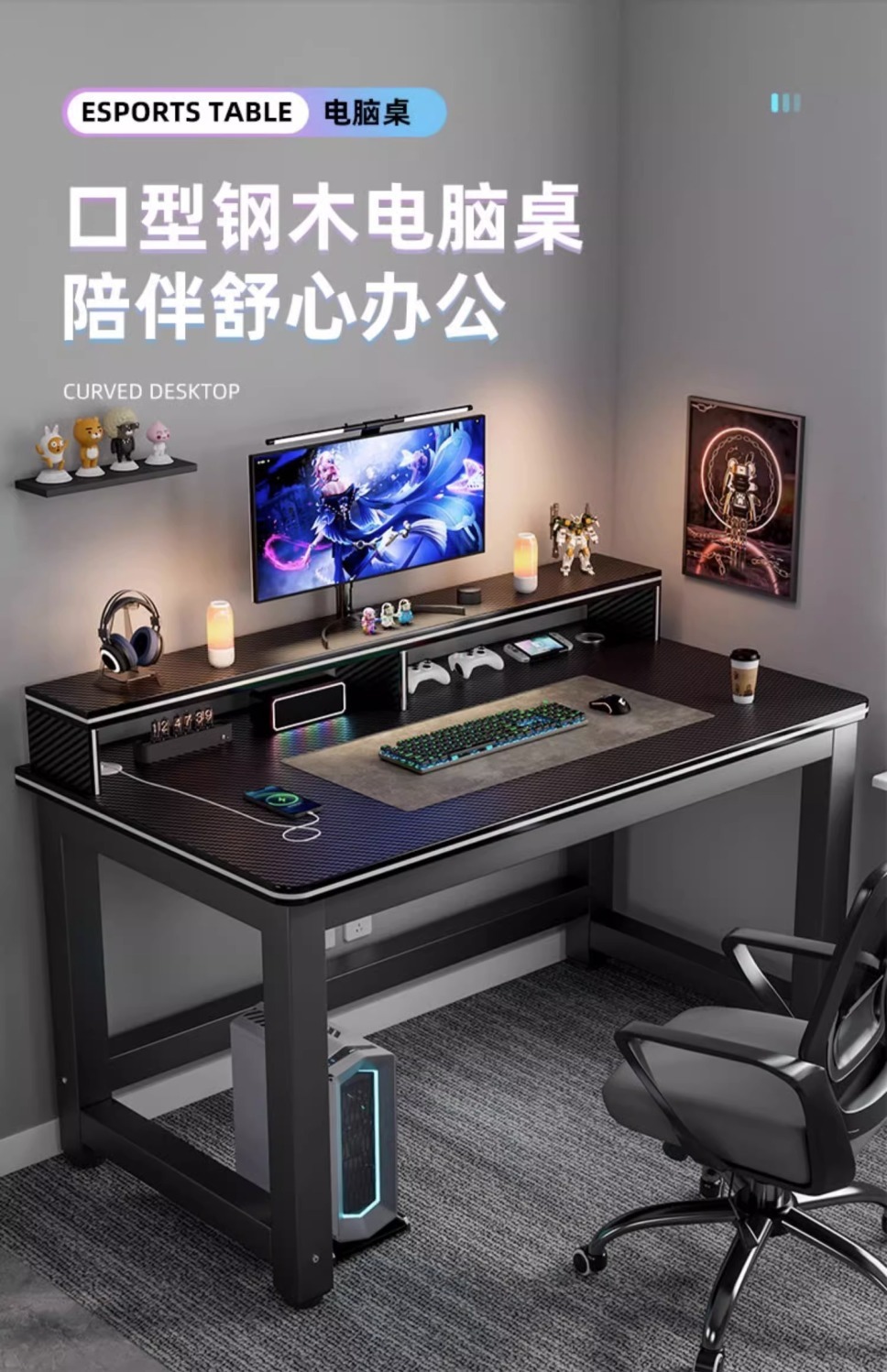 컴퓨터 책상 데스크탑 홈 학습 테이블 e-스포츠 테이블과 의자 세트 싱글 데스크 간단한 사무실 탄소 섬유 게임