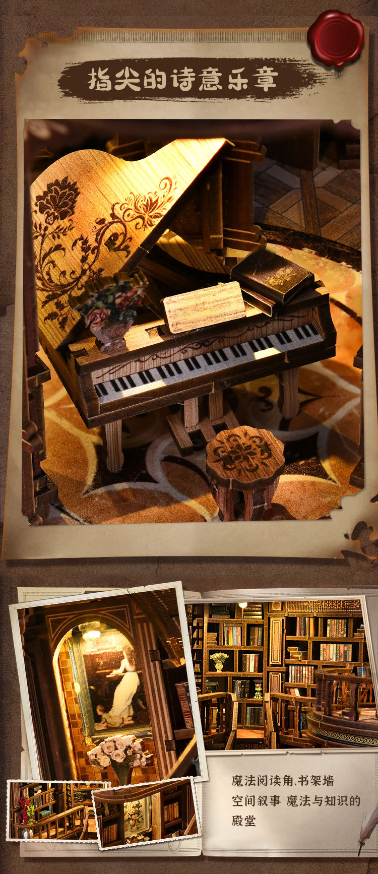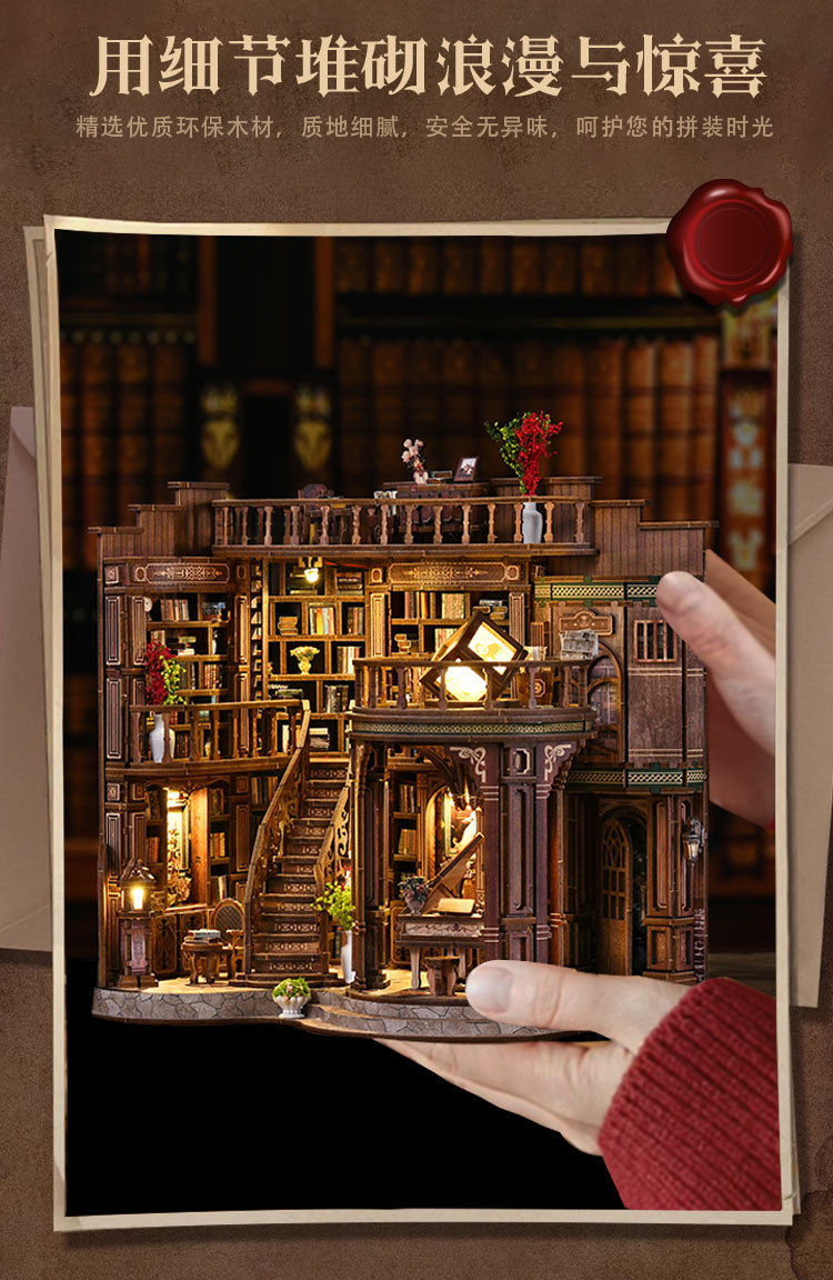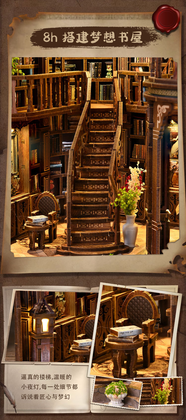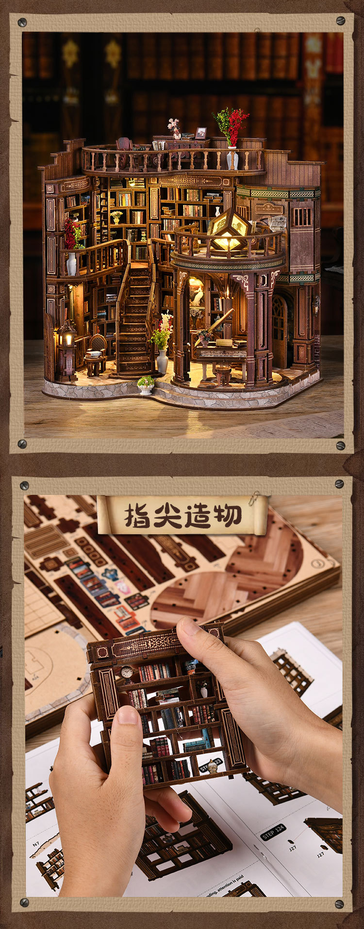Qimeng Bookstore DIY 캐빈 복고풍 유럽 건축 모델 손으로 조립한 미니어처 하우스 크리에이티브 장난감 선물