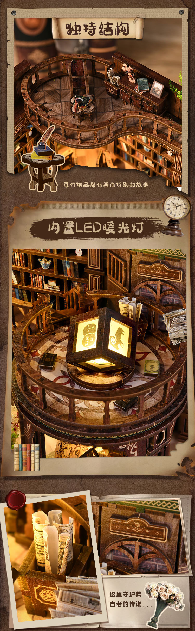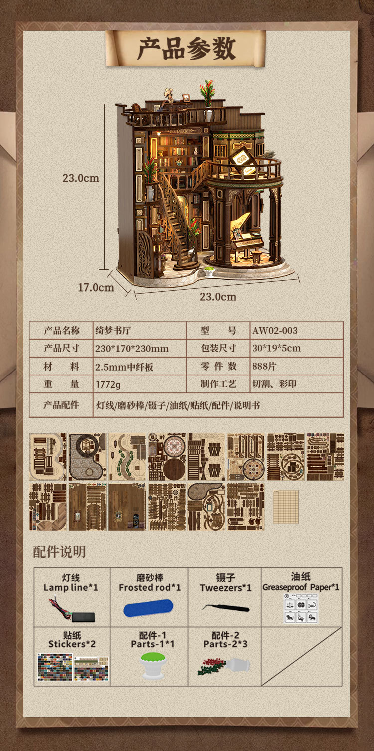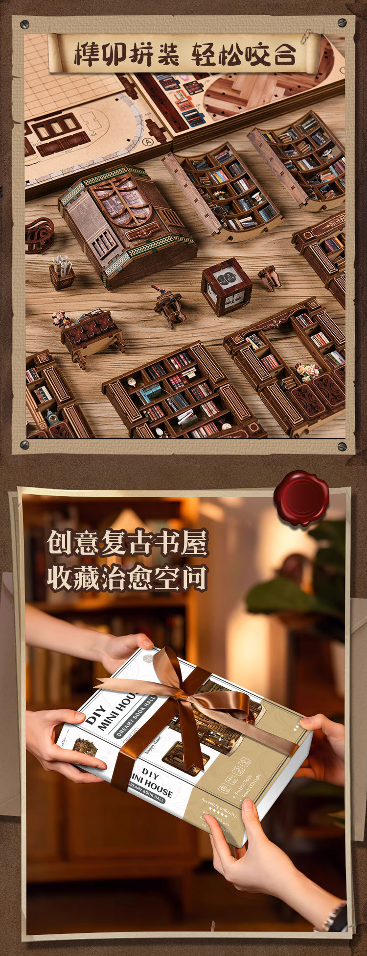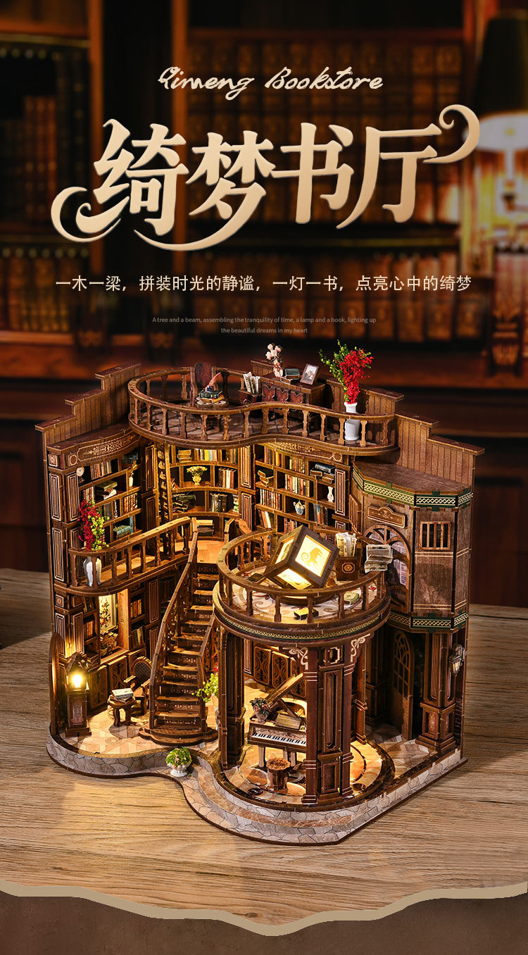 Qimeng Bookstore DIY 캐빈 복고풍 유럽 건축 모델 손으로 조립한 미니어처 하우스 크리에이티브 장난감 선물스토어 가기