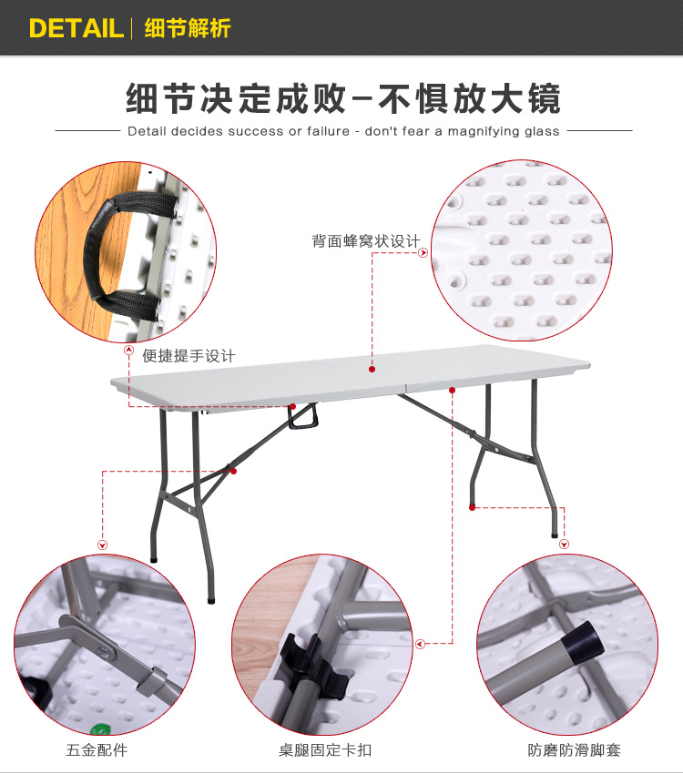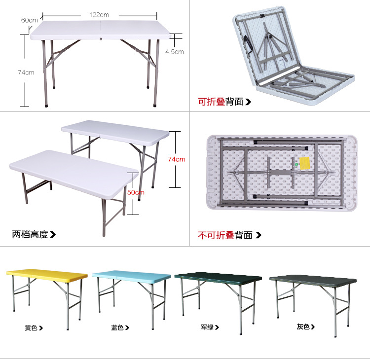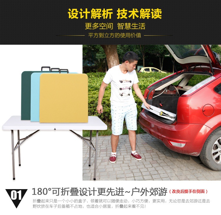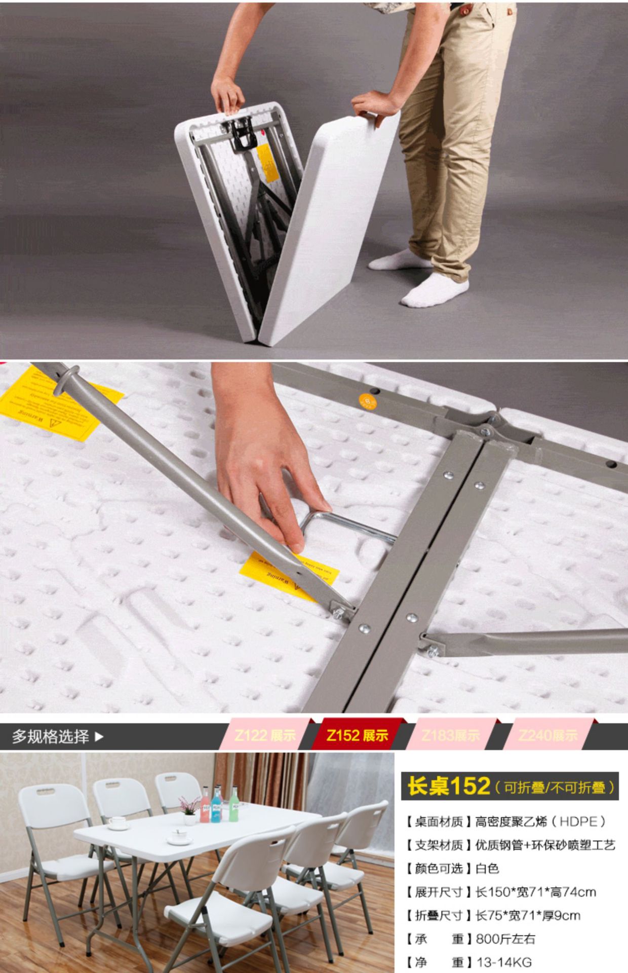 접이식 테이블 야외 긴 휴대용 식탁과 의자 설치가 필요 없는 스톨 교육 회의 학습 책상 Tω
