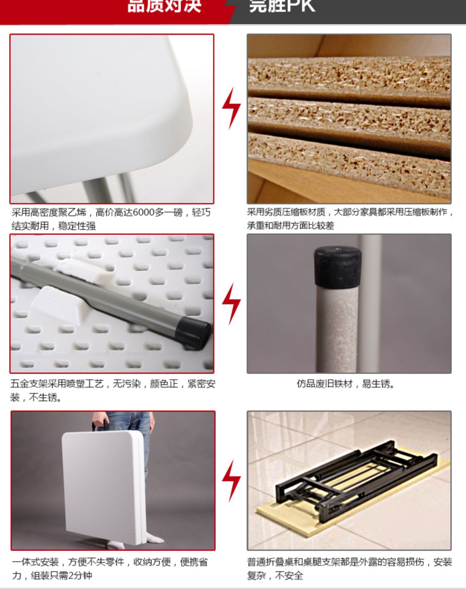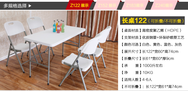 접이식 테이블 야외 긴 휴대용 식탁과 의자 설치가 필요 없는 스톨 교육 회의 학습 책상 Tω스토어 가기