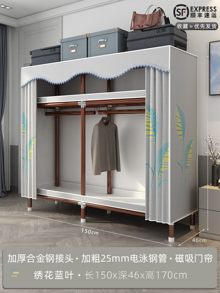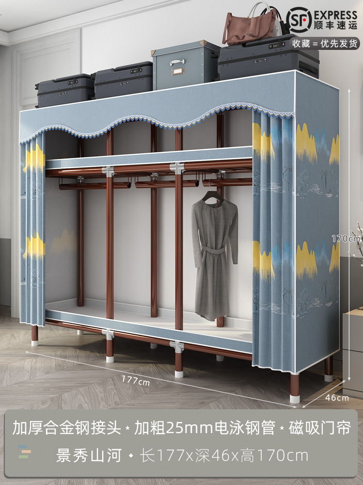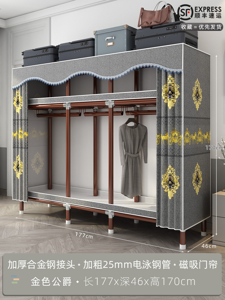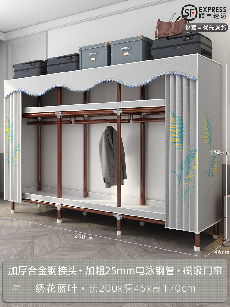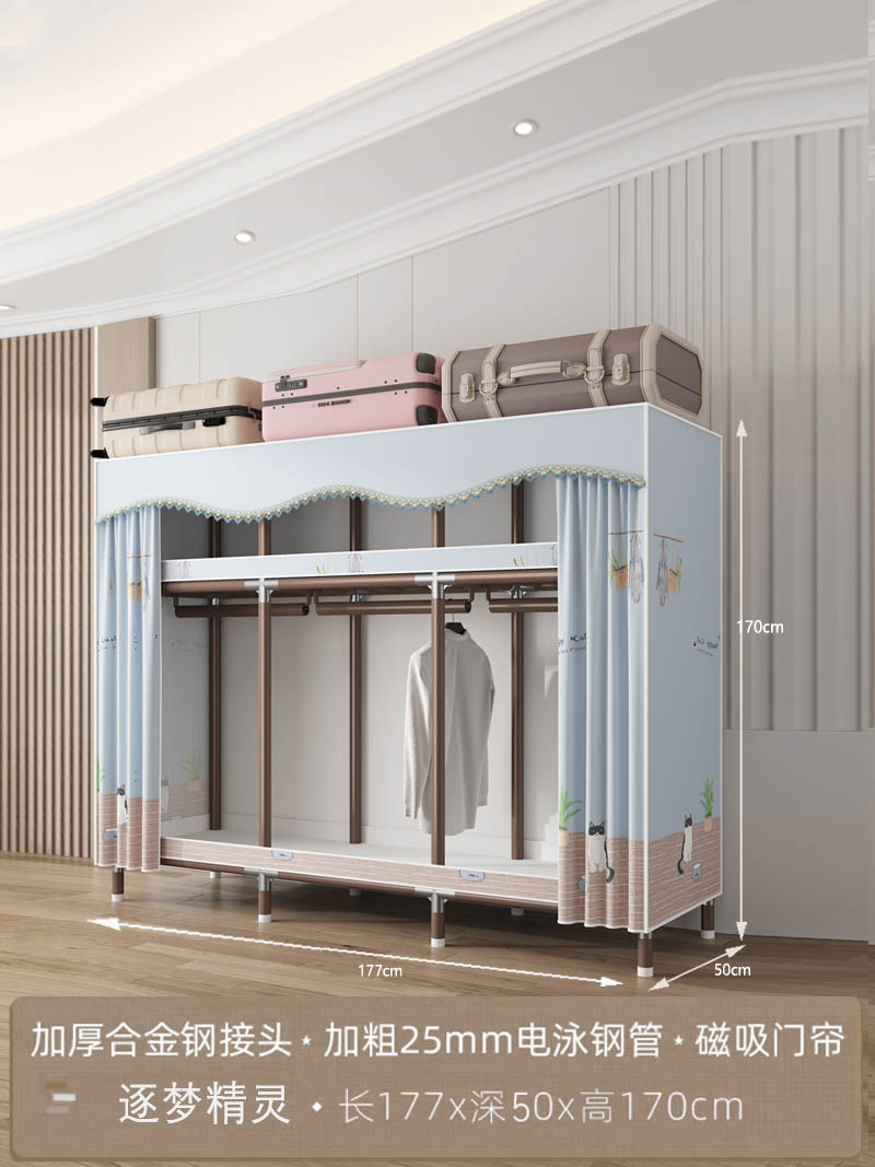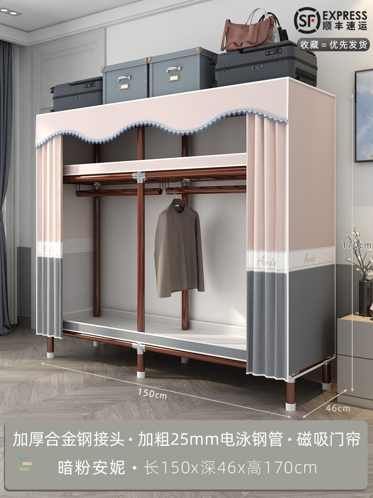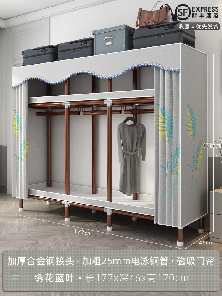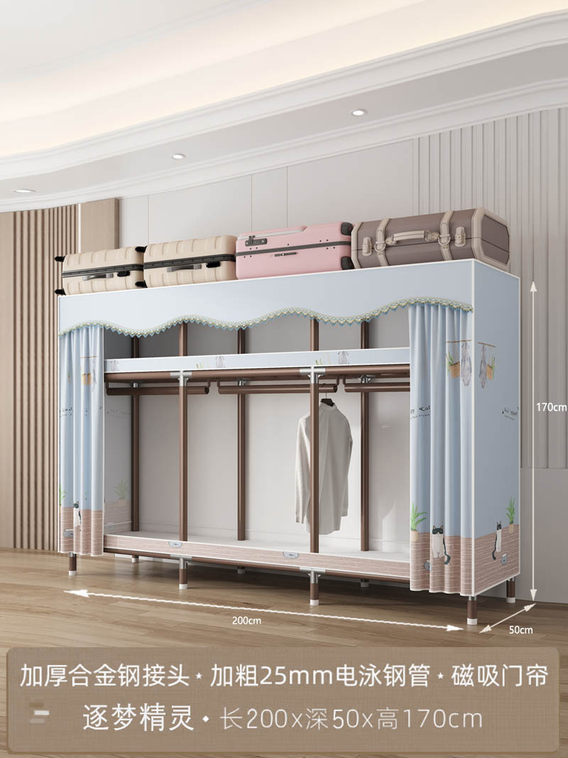 옷장 간단한 가정용 침실 두꺼운 천 옷장 전체 강철 프레임 강력하고 내구성이 뛰어난 두꺼운 25mm 강철 파이프 임대 Tω스토어 가기