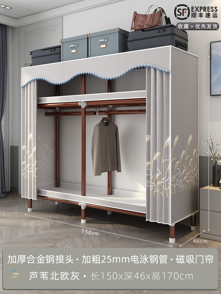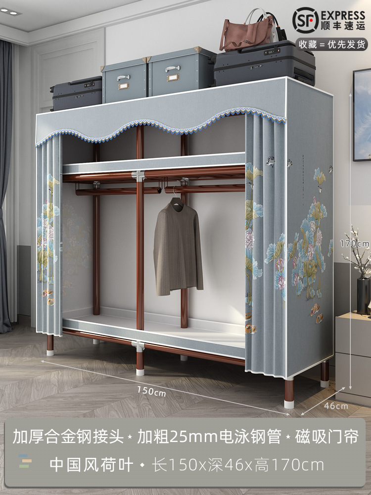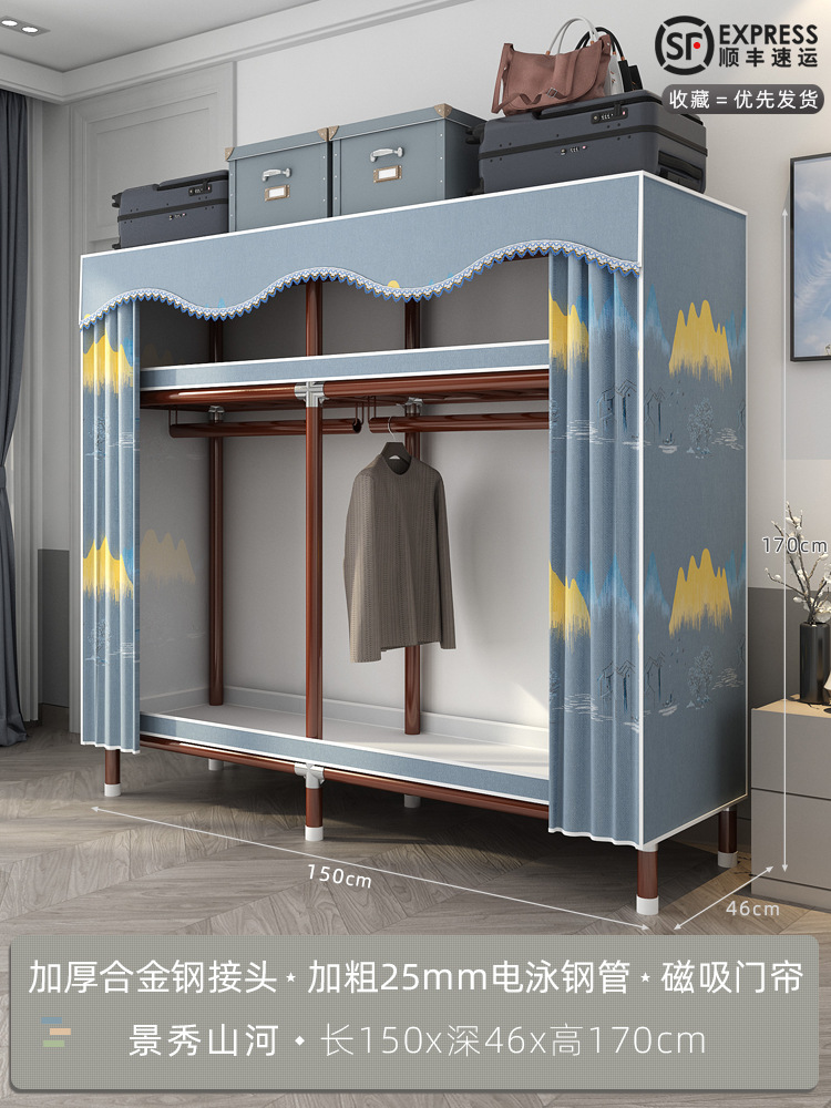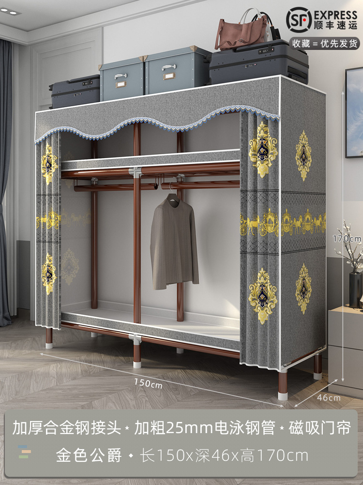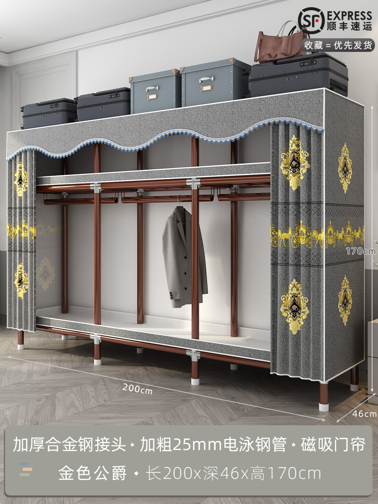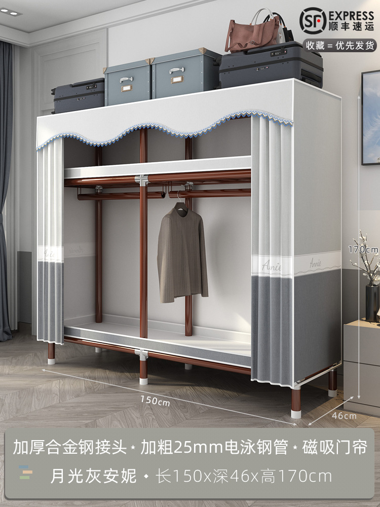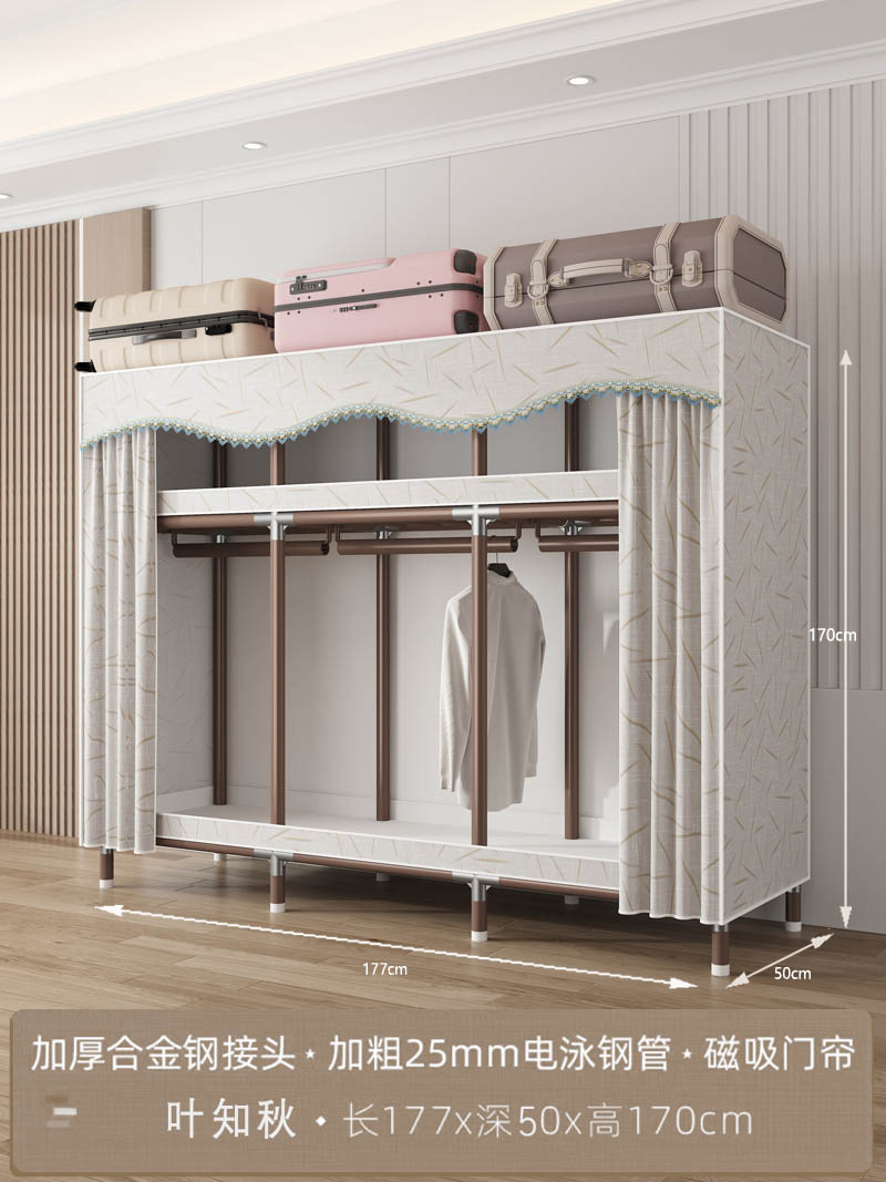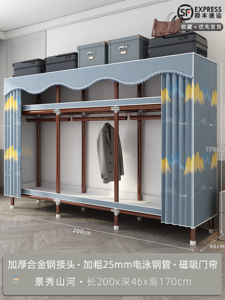 옷장 간단한 가정용 침실 두꺼운 천 옷장 전체 강철 프레임 강력하고 내구성이 뛰어난 두꺼운 25mm 강철 파이프 임대 Tω스토어 가기