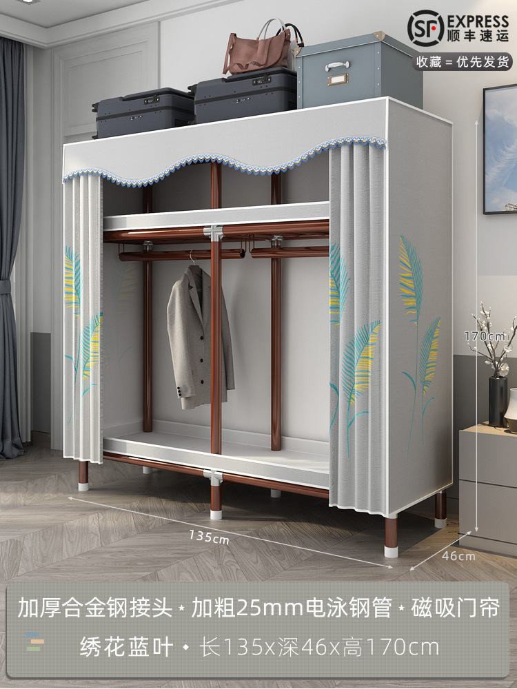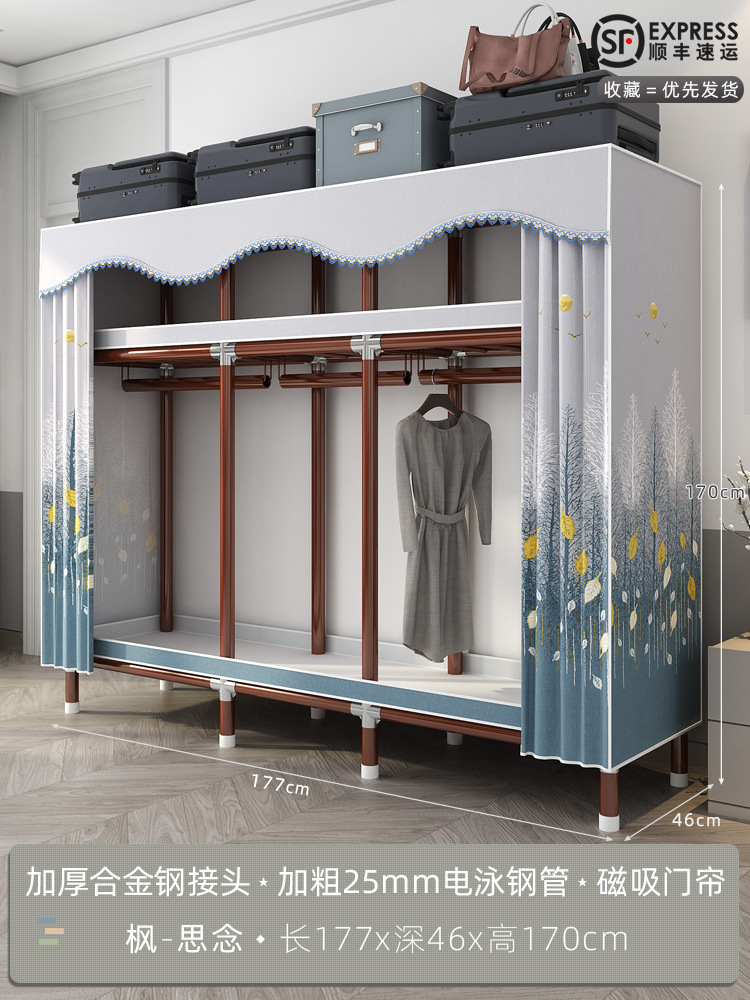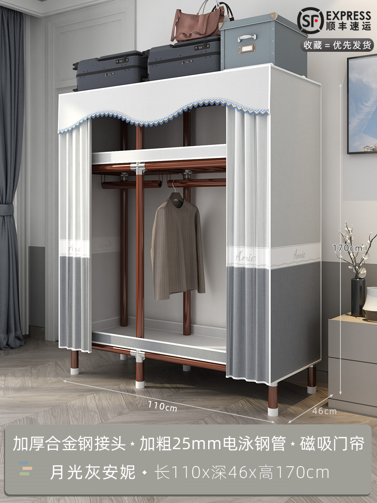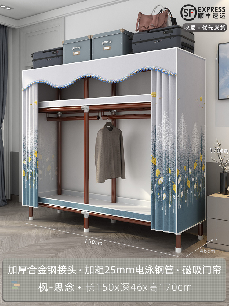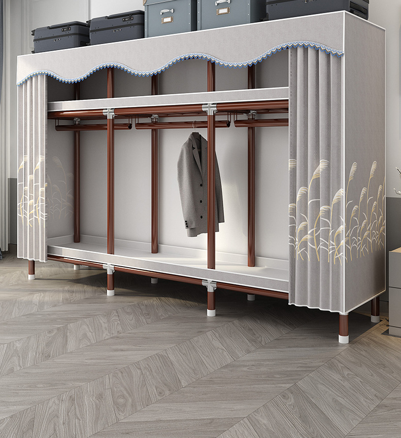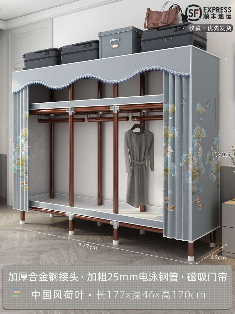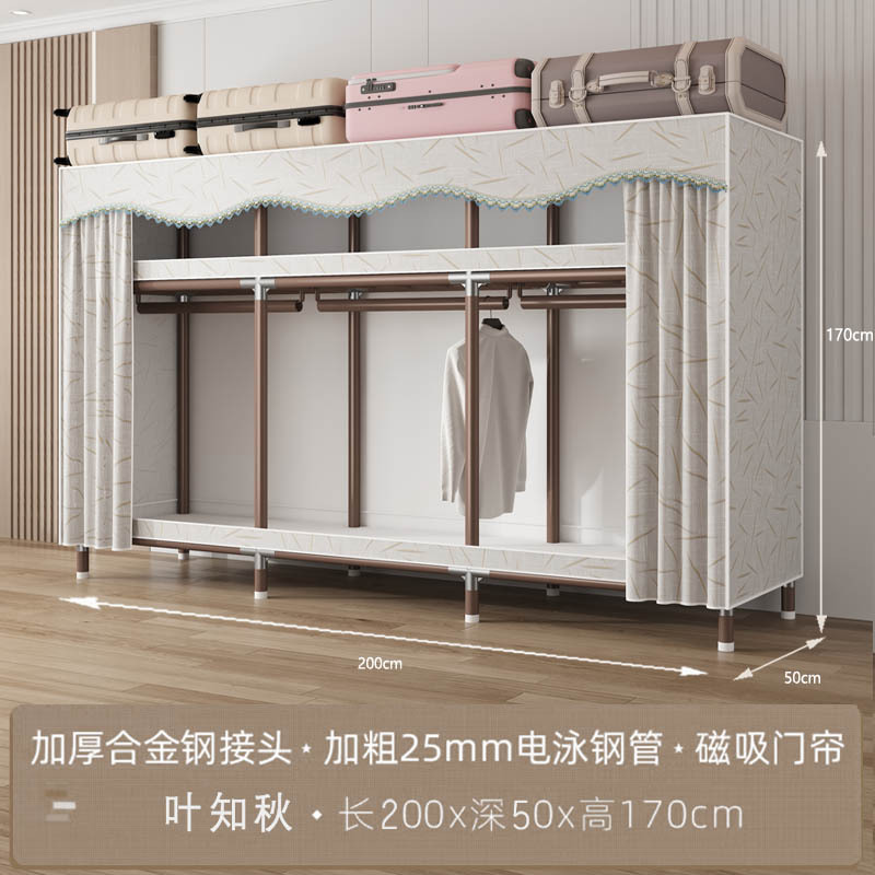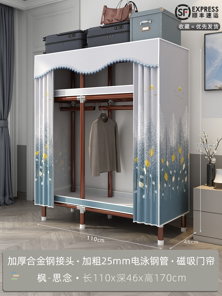 옷장 간단한 가정용 침실 두꺼운 천 옷장 전체 강철 프레임 강력하고 내구성이 뛰어난 두꺼운 25mm 강철 파이프 임대 Tω스토어 가기