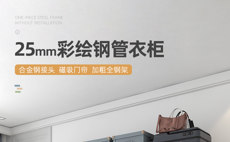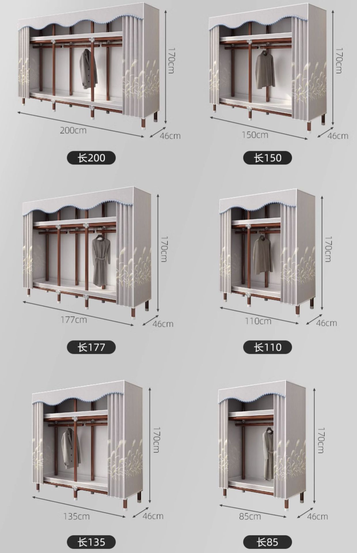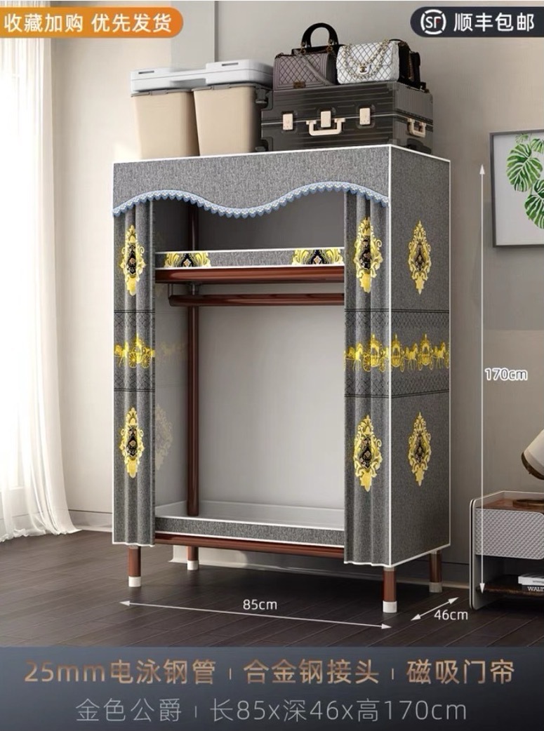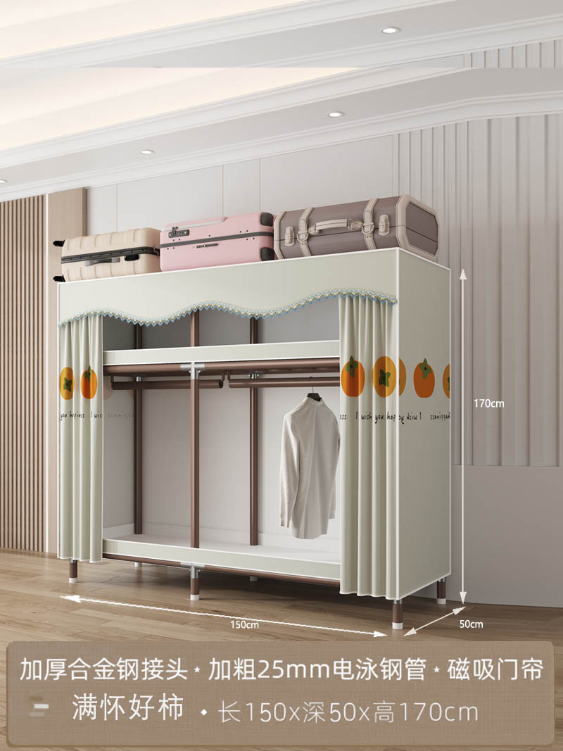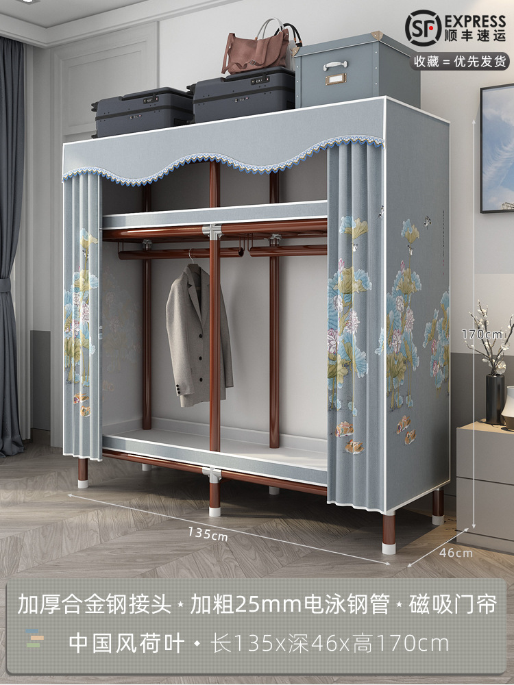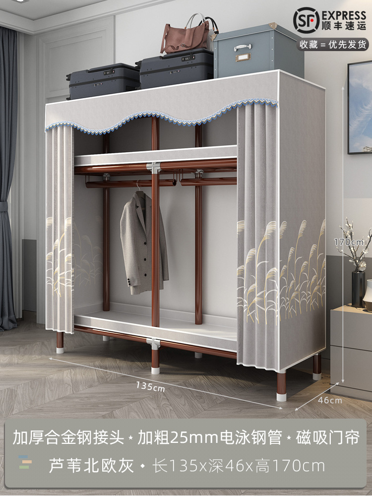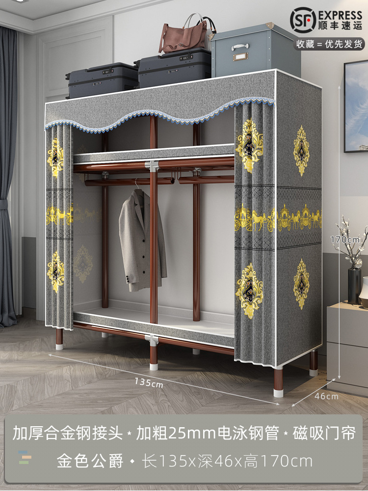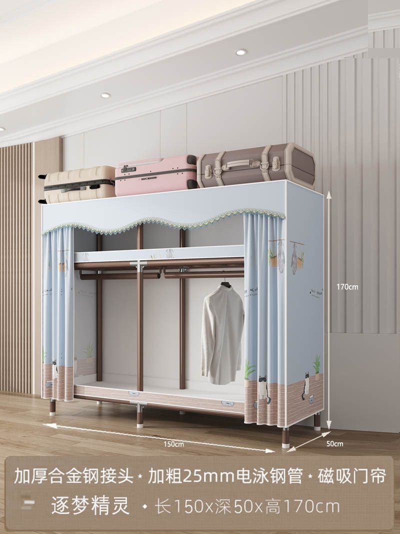 옷장 간단한 가정용 침실 두꺼운 천 옷장 전체 강철 프레임 강력하고 내구성이 뛰어난 두꺼운 25mm 강철 파이프 임대 Tω스토어 가기