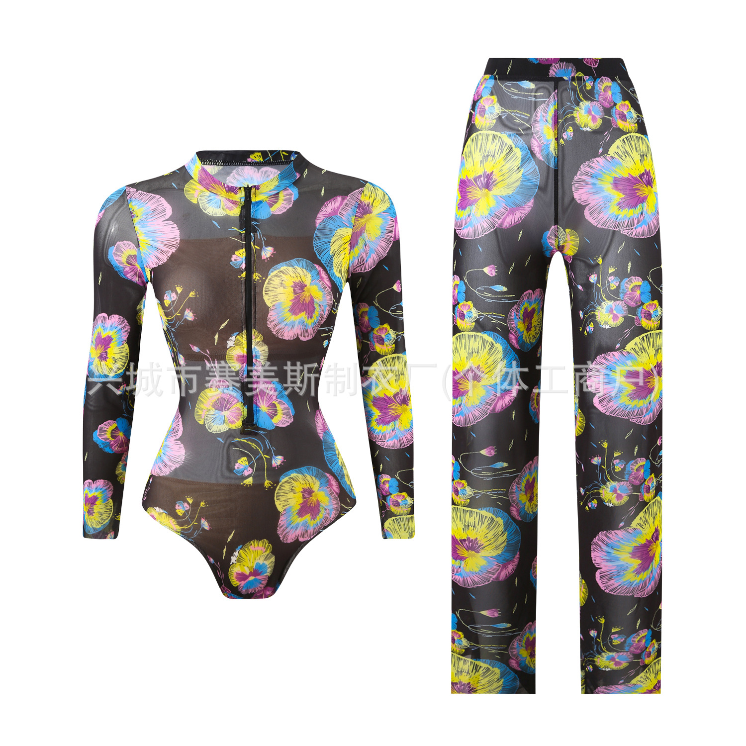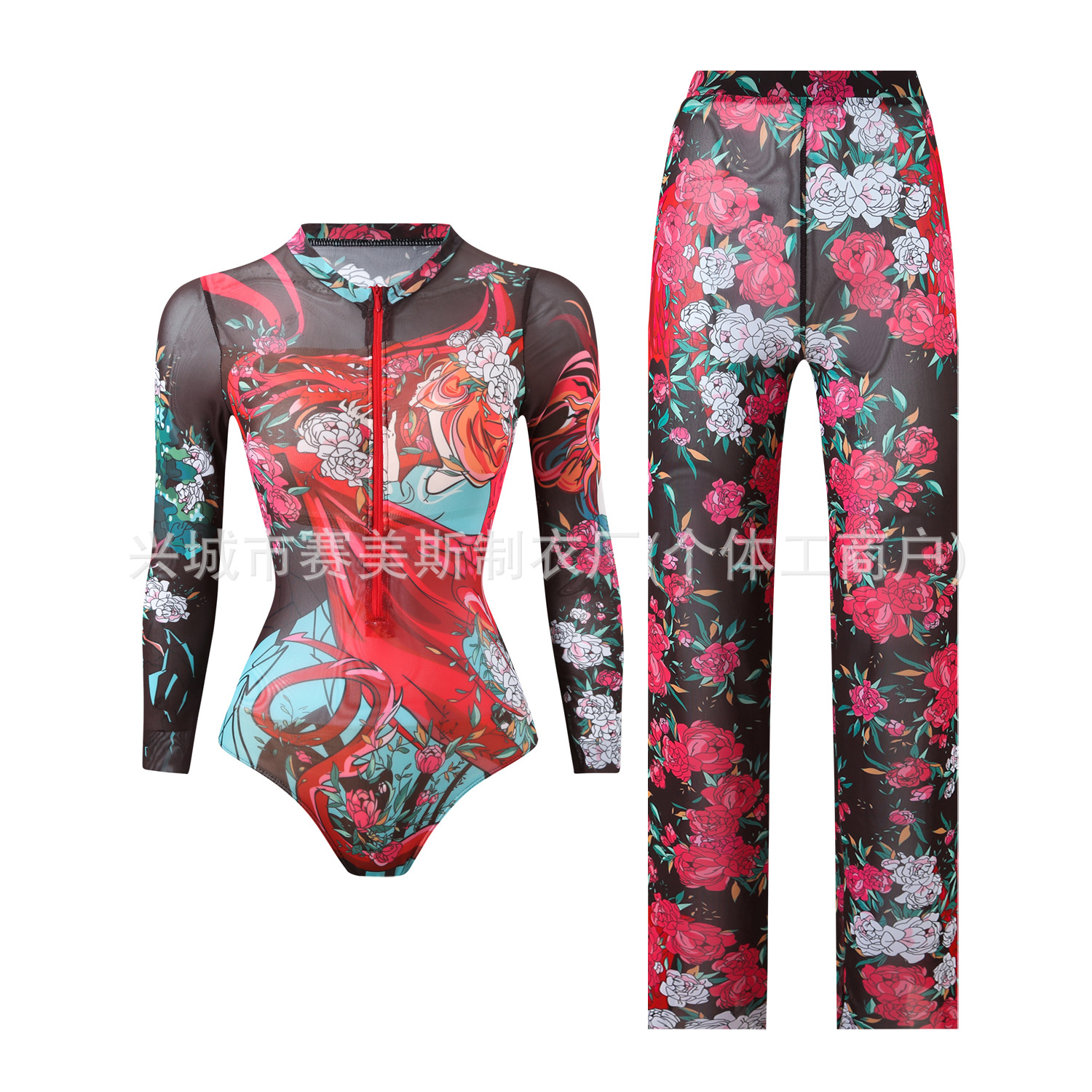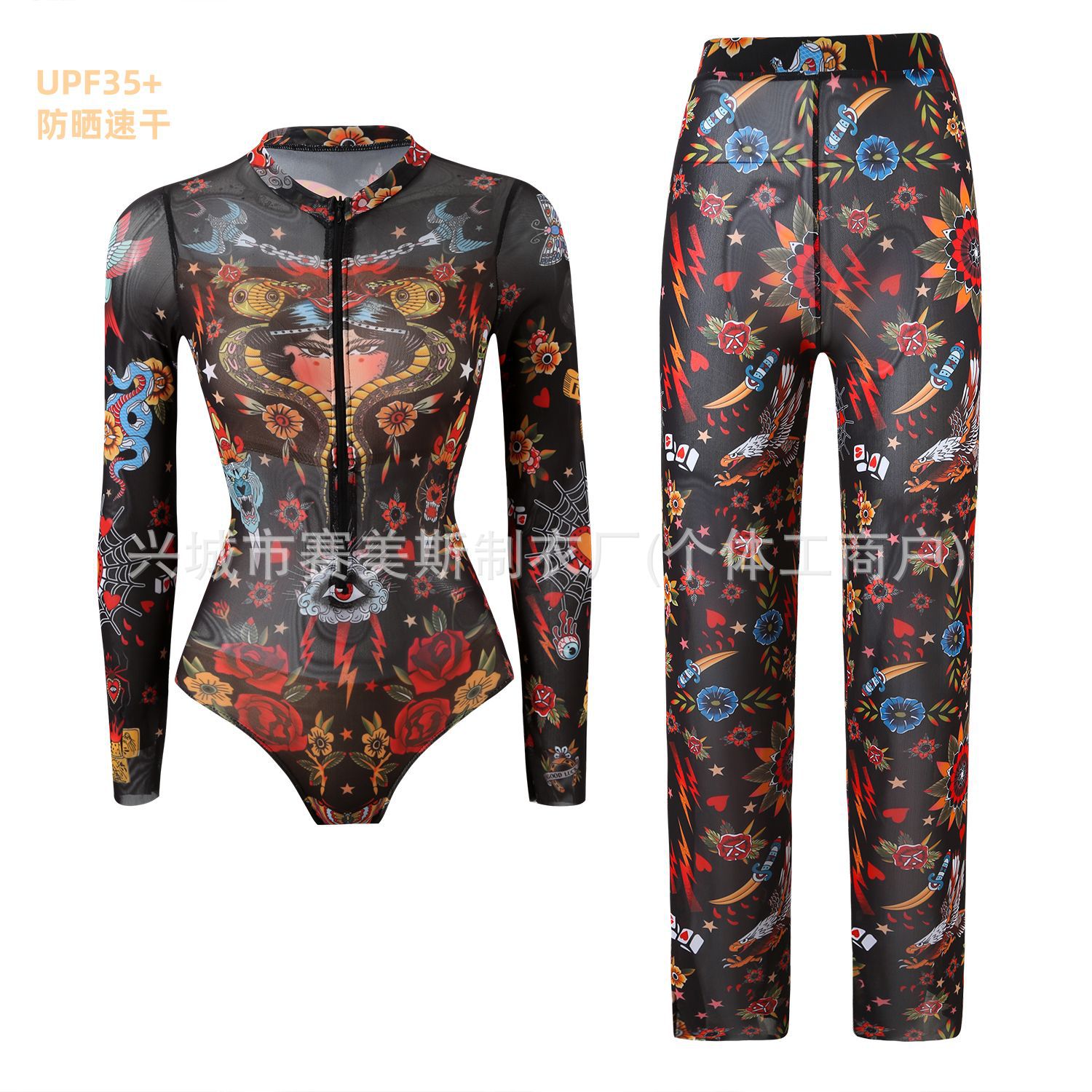 Купальник 원피스 긴팔 자외선 차단 메쉬 수영복 투피스 세트 바지 러시아 수영복 여성