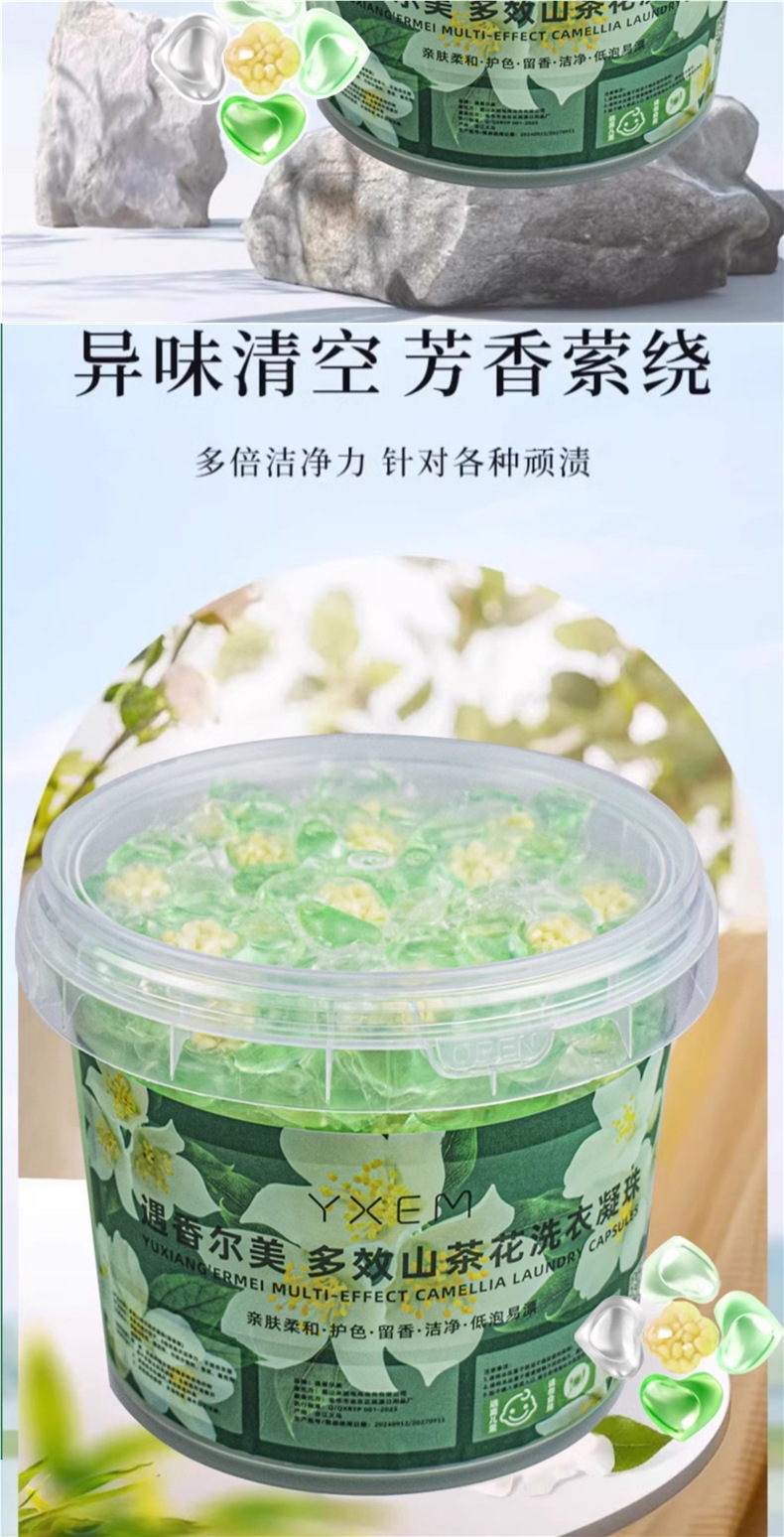 카멜리아 세탁 비즈 버킷 5-in-1 오래 지속되는 향기 부드러운 세탁 볼 오염 제거 농축 세탁 세제