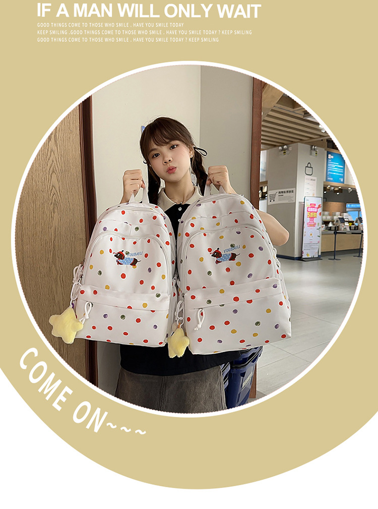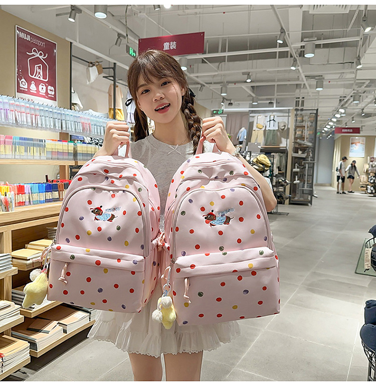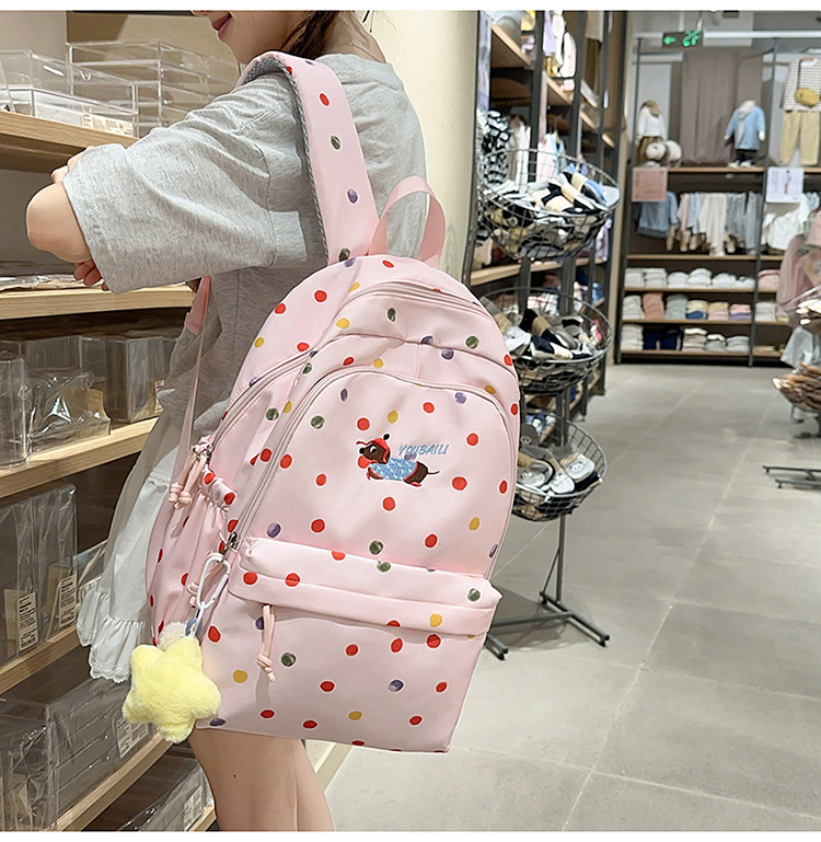 일본의 새로운 스타일의 멋지고 신선하고 달콤하고 귀여운 강아지 폴카 도트 배낭 중학생을 위한 경량 배낭스토어 가기