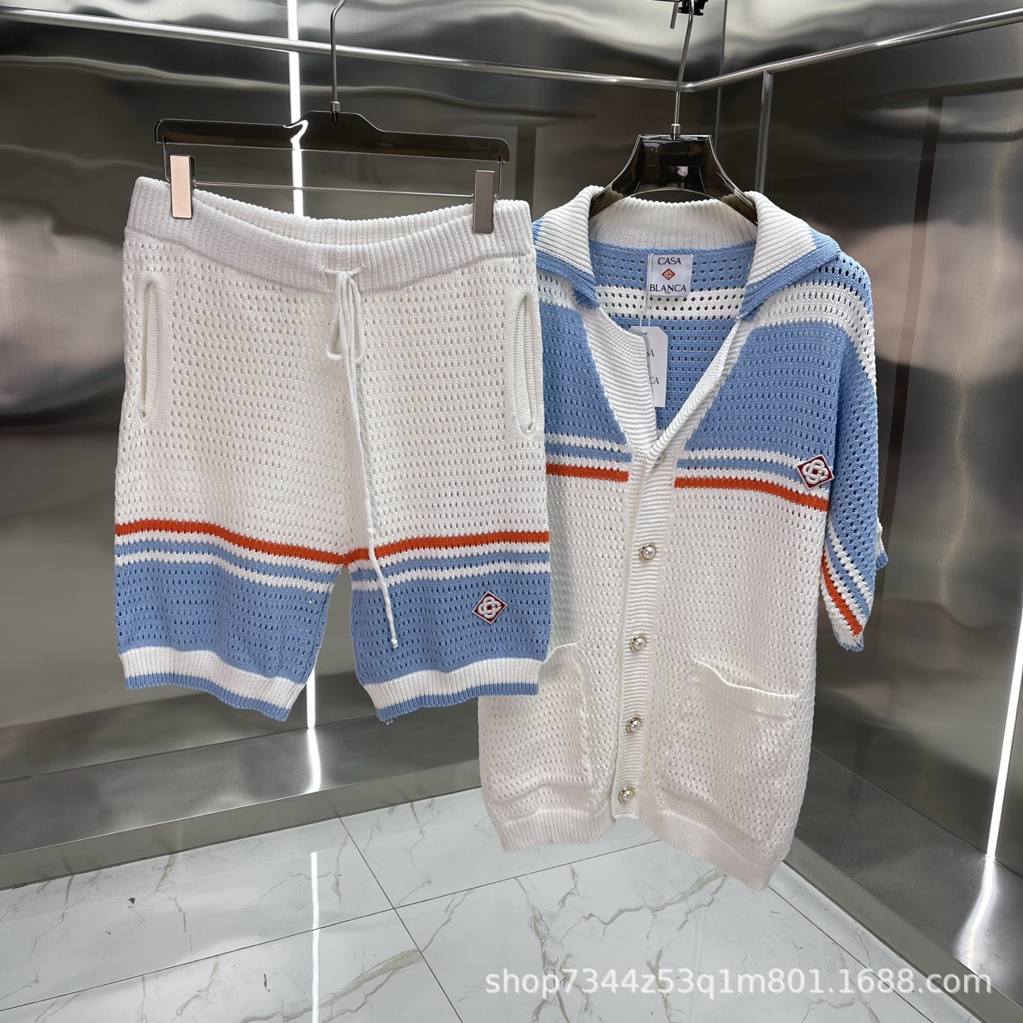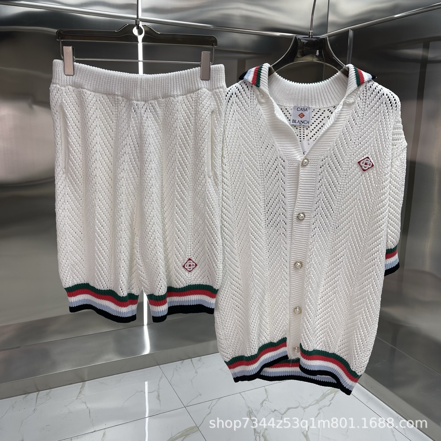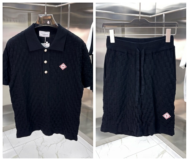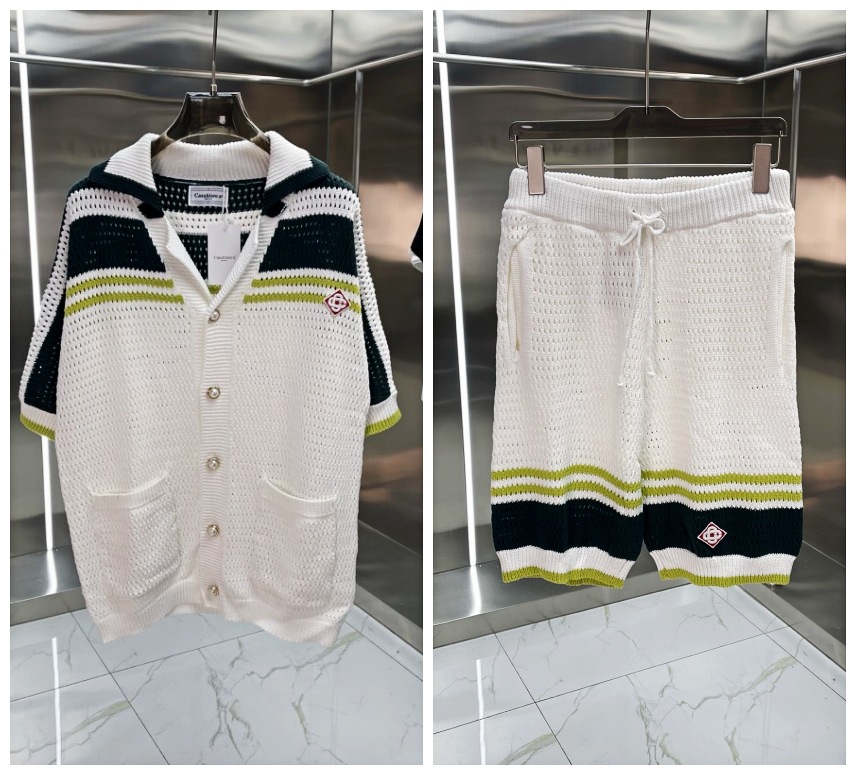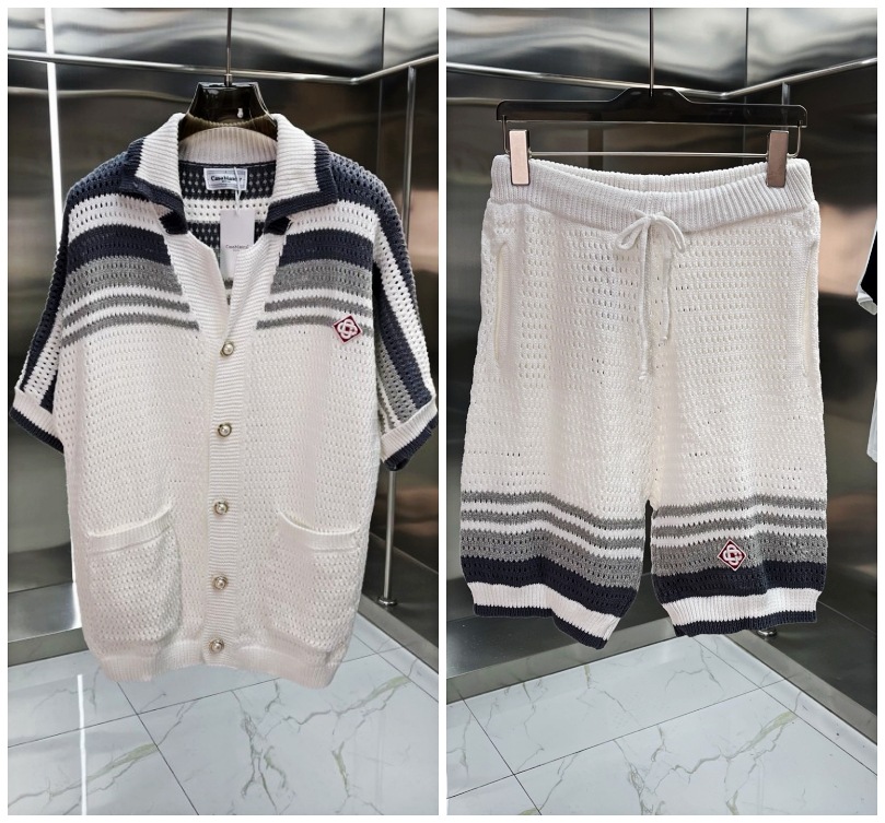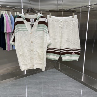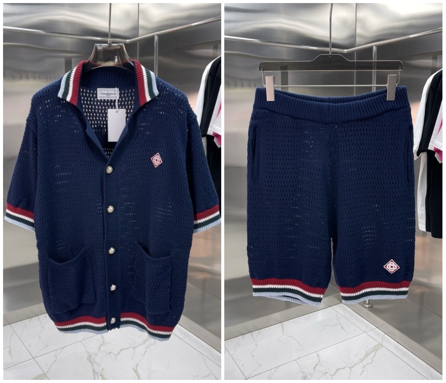 유럽과 미국의 대외 무역 카사 카사블랑카 스웨터 반팔 자카드 가디건 폴로 셔츠 커플 반바지 세트스토어 가기