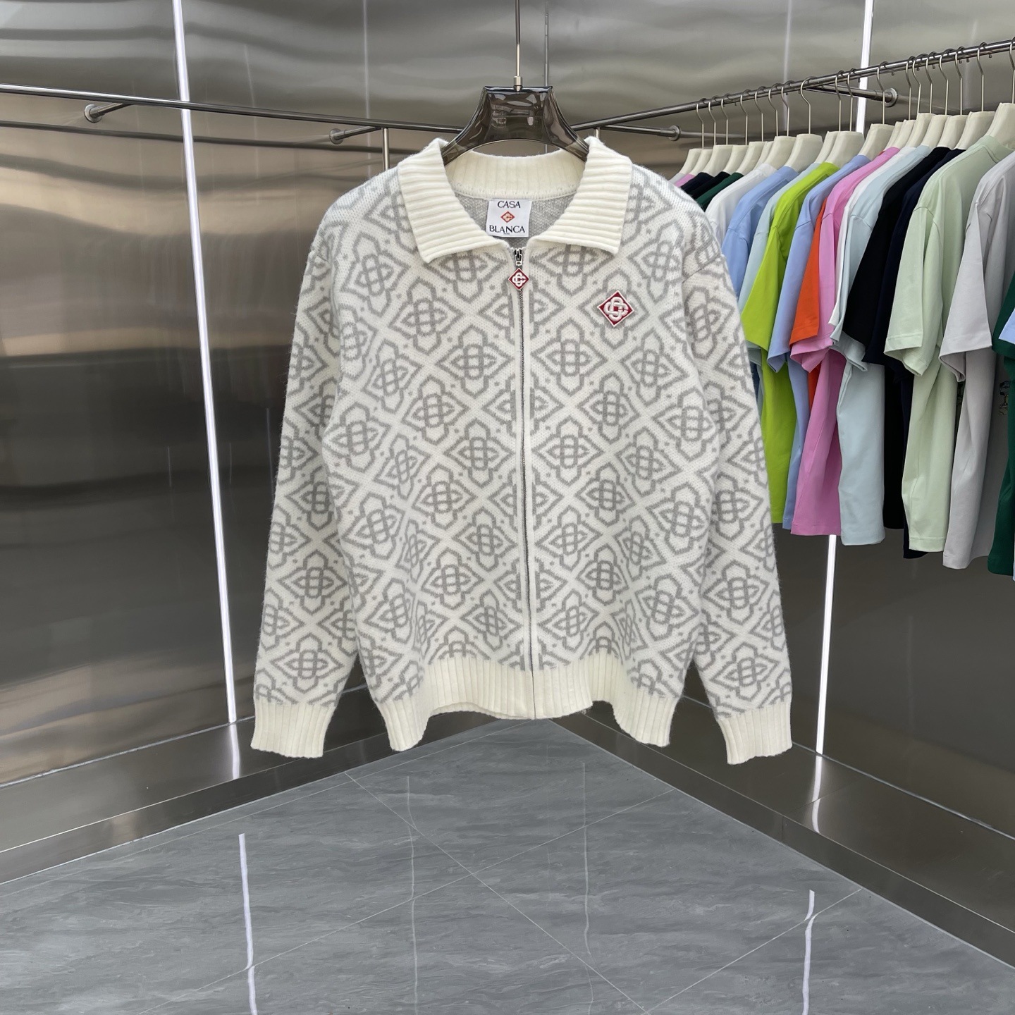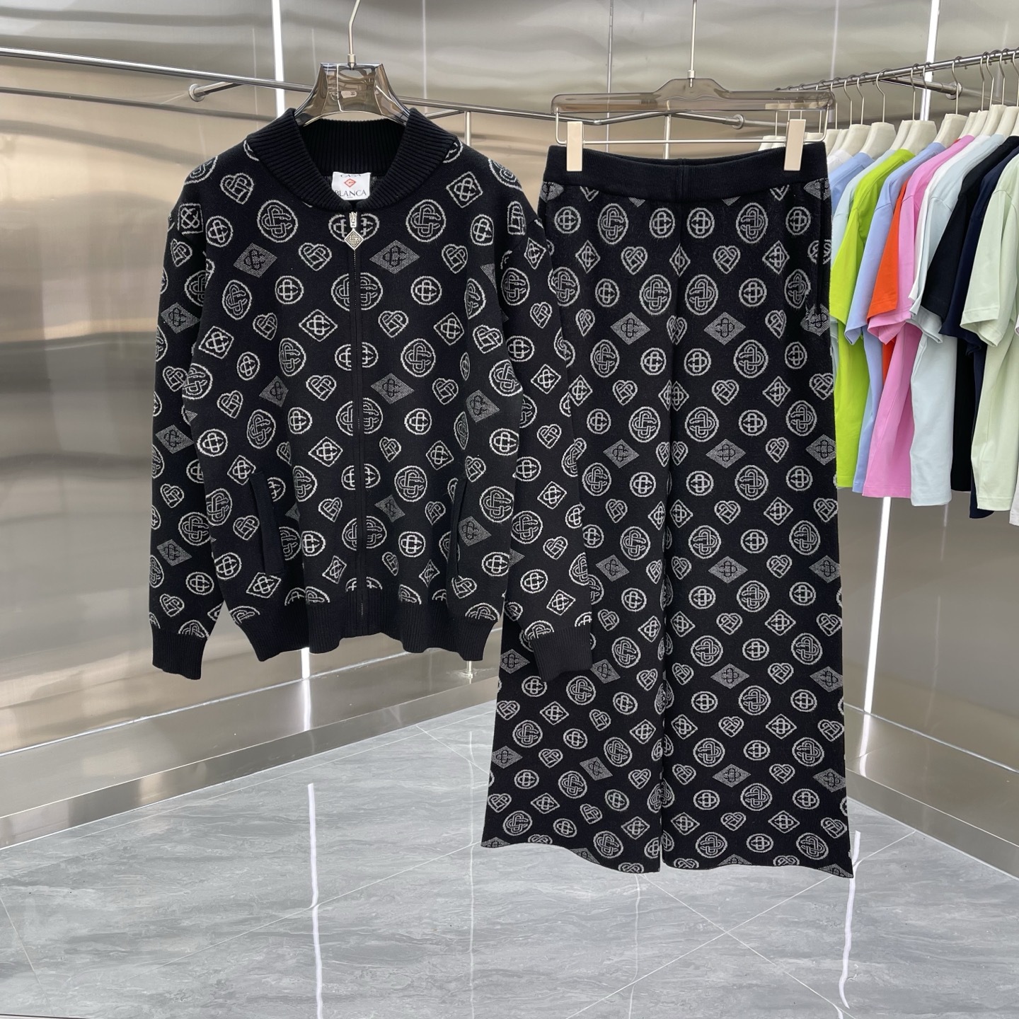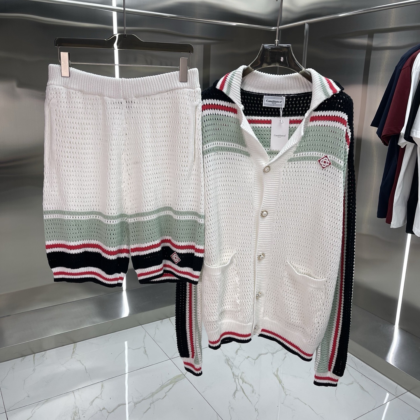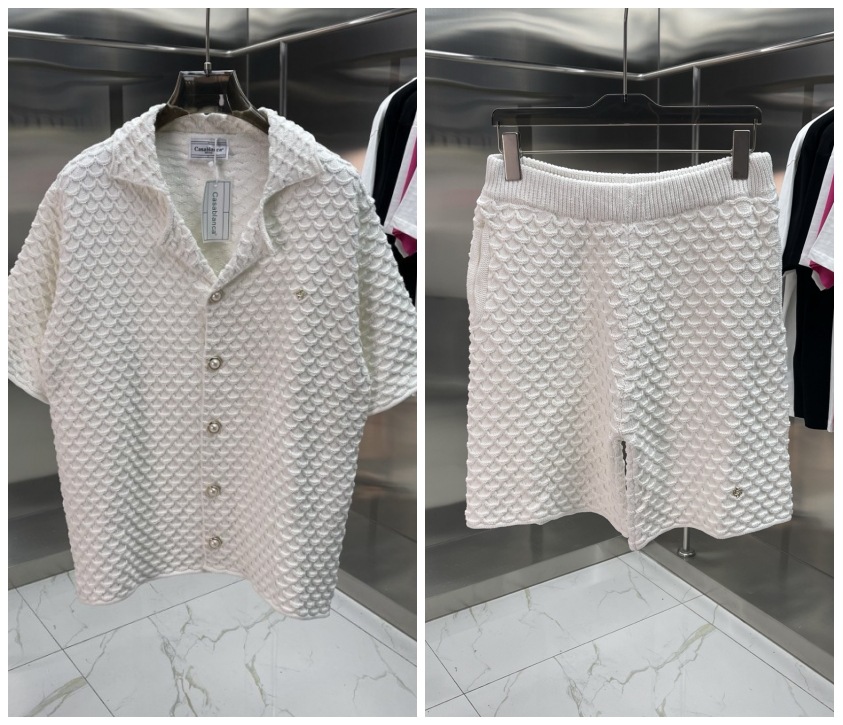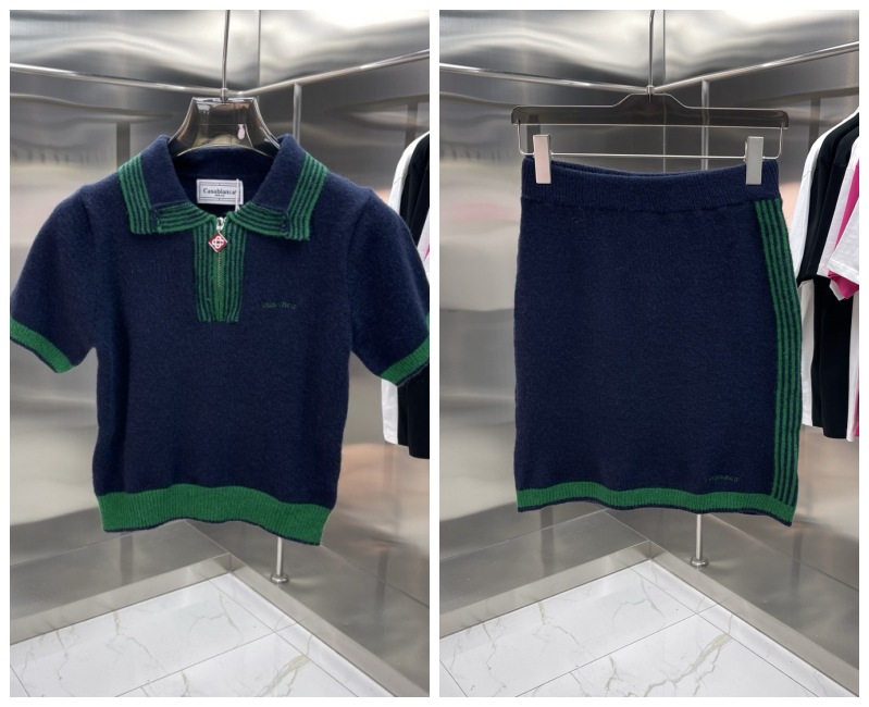 유럽과 미국의 대외 무역 카사 카사블랑카 스웨터 반팔 자카드 가디건 폴로 셔츠 커플 반바지 세트스토어 가기