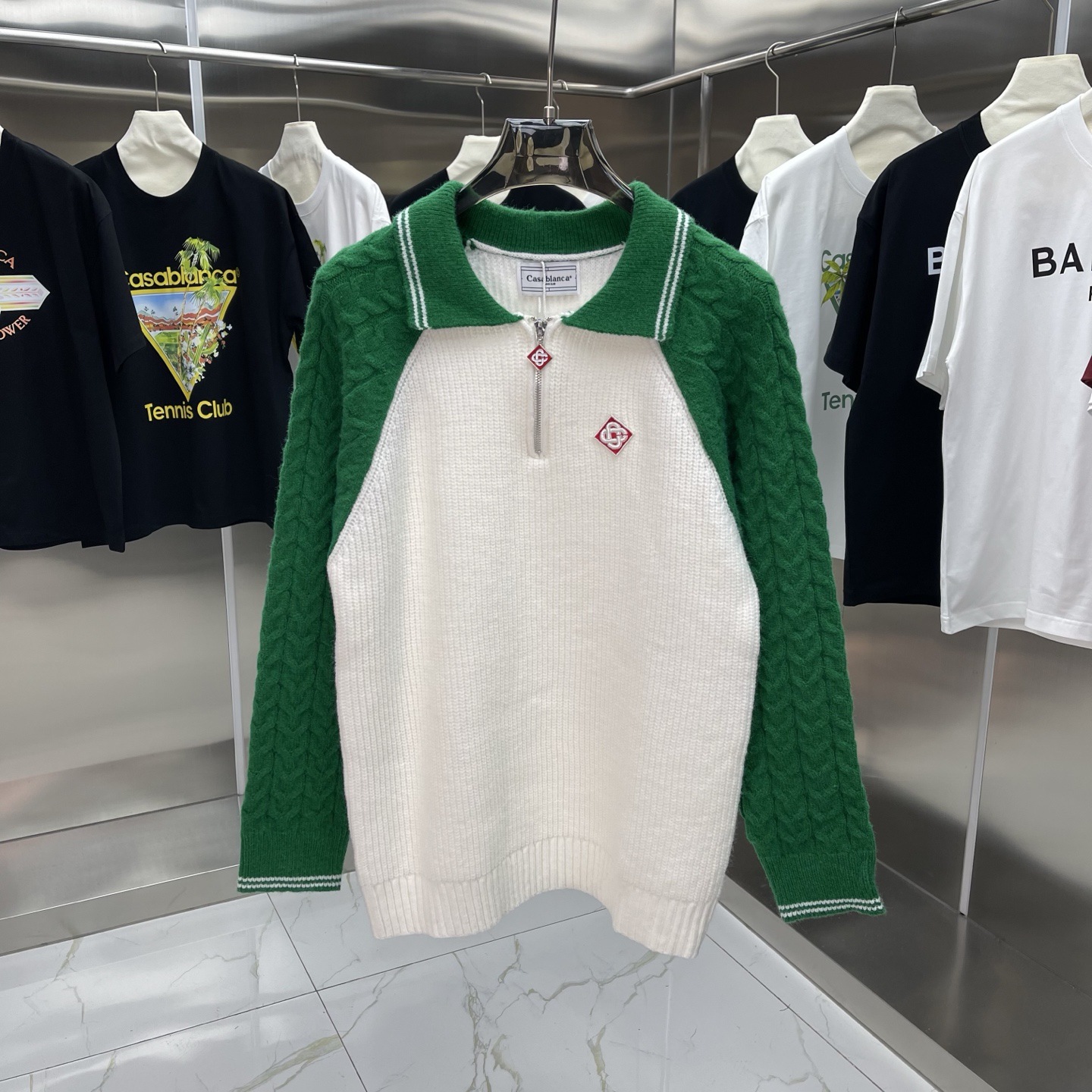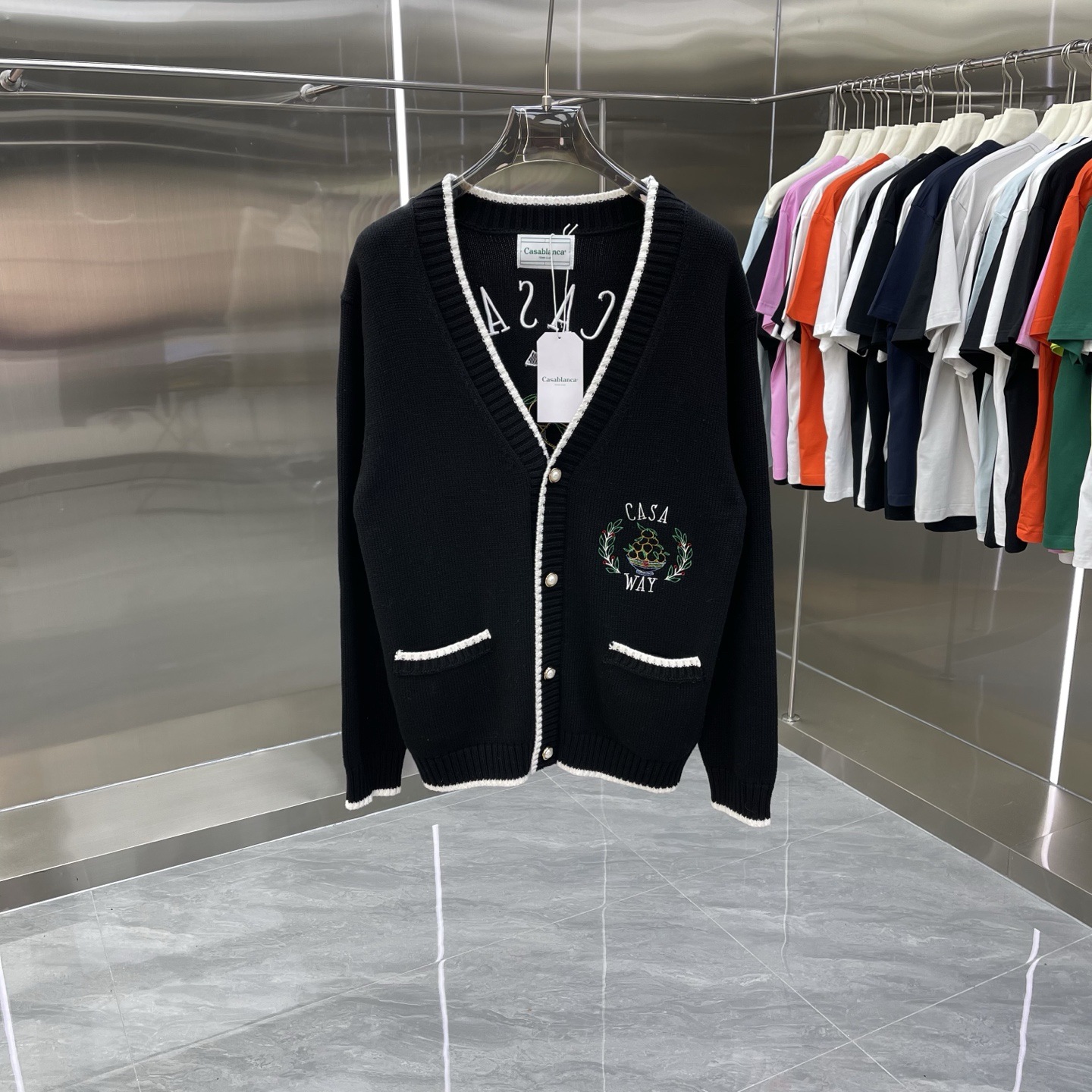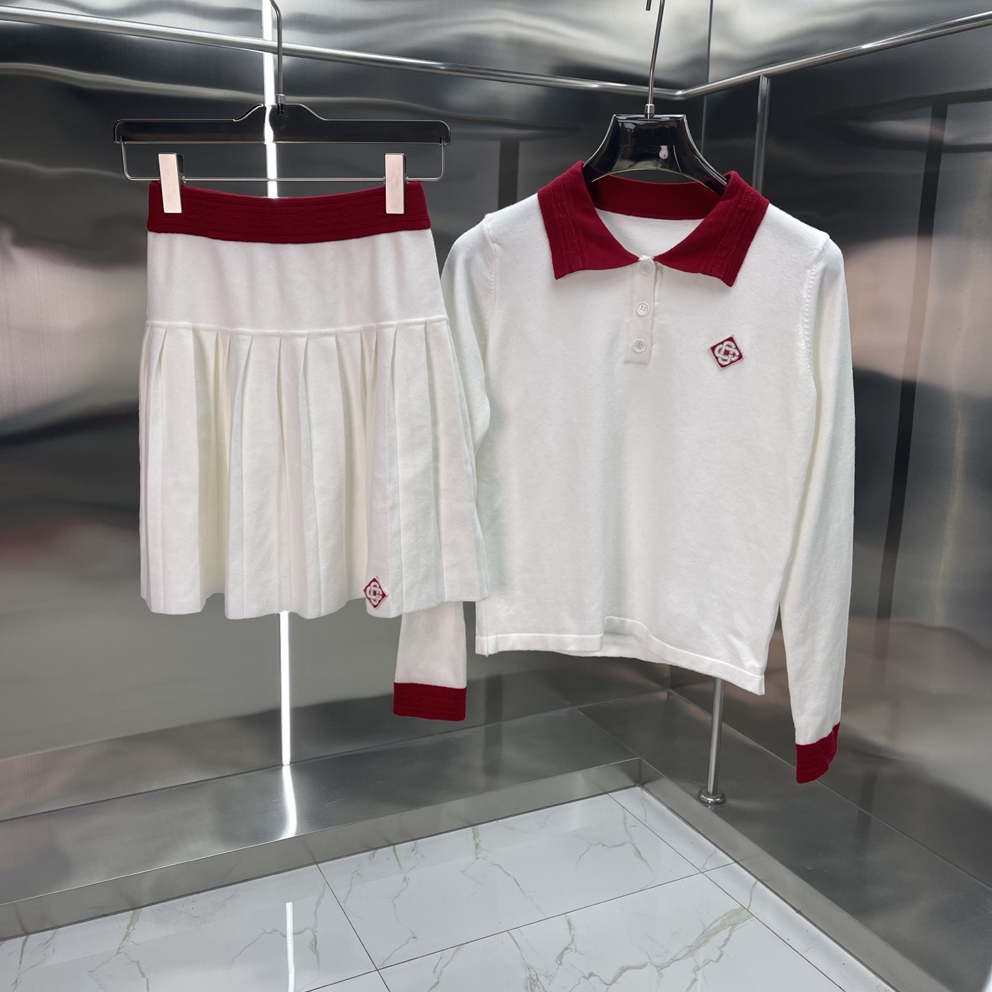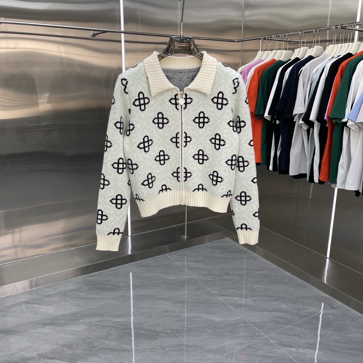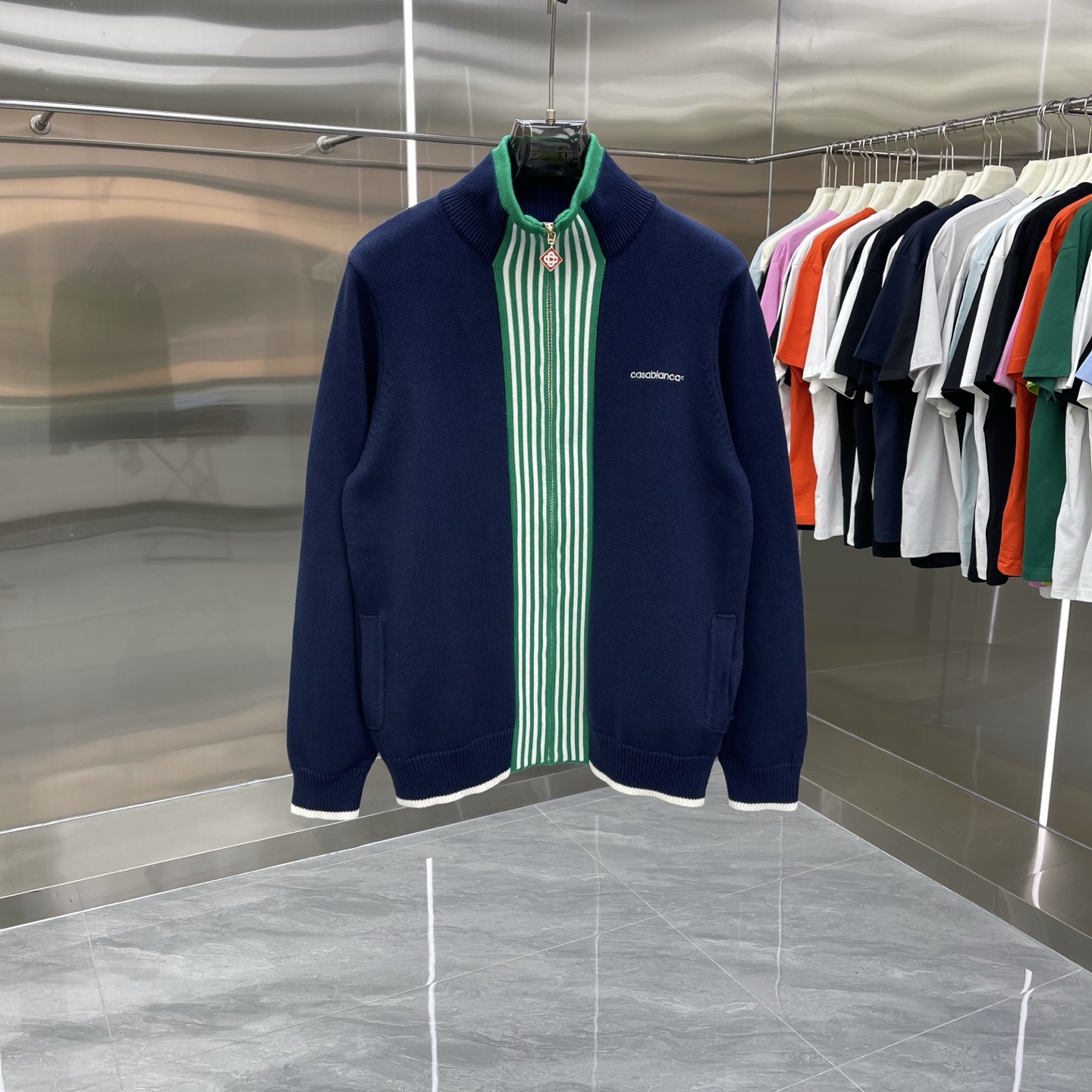유럽과 미국의 대외 무역 카사 카사블랑카 스웨터 반팔 자카드 가디건 폴로 셔츠 커플 반바지 세트스토어 가기