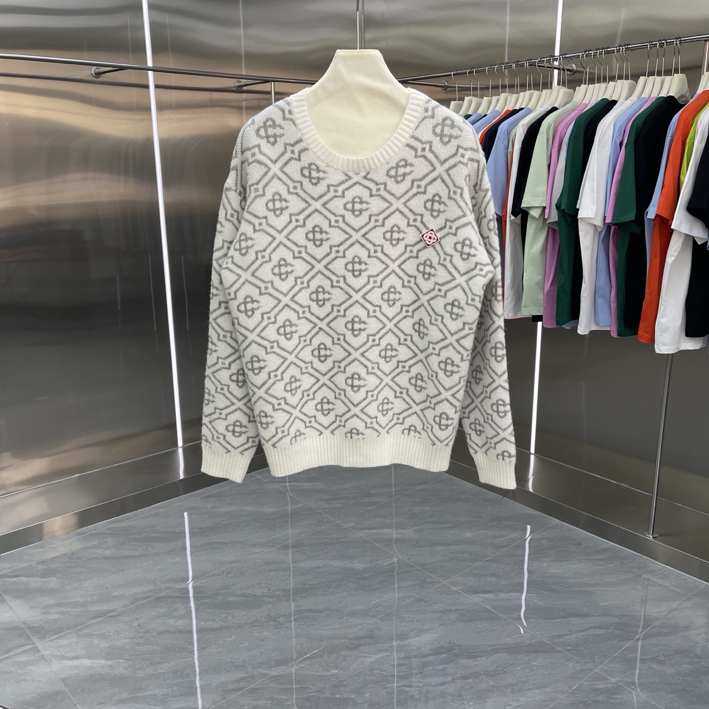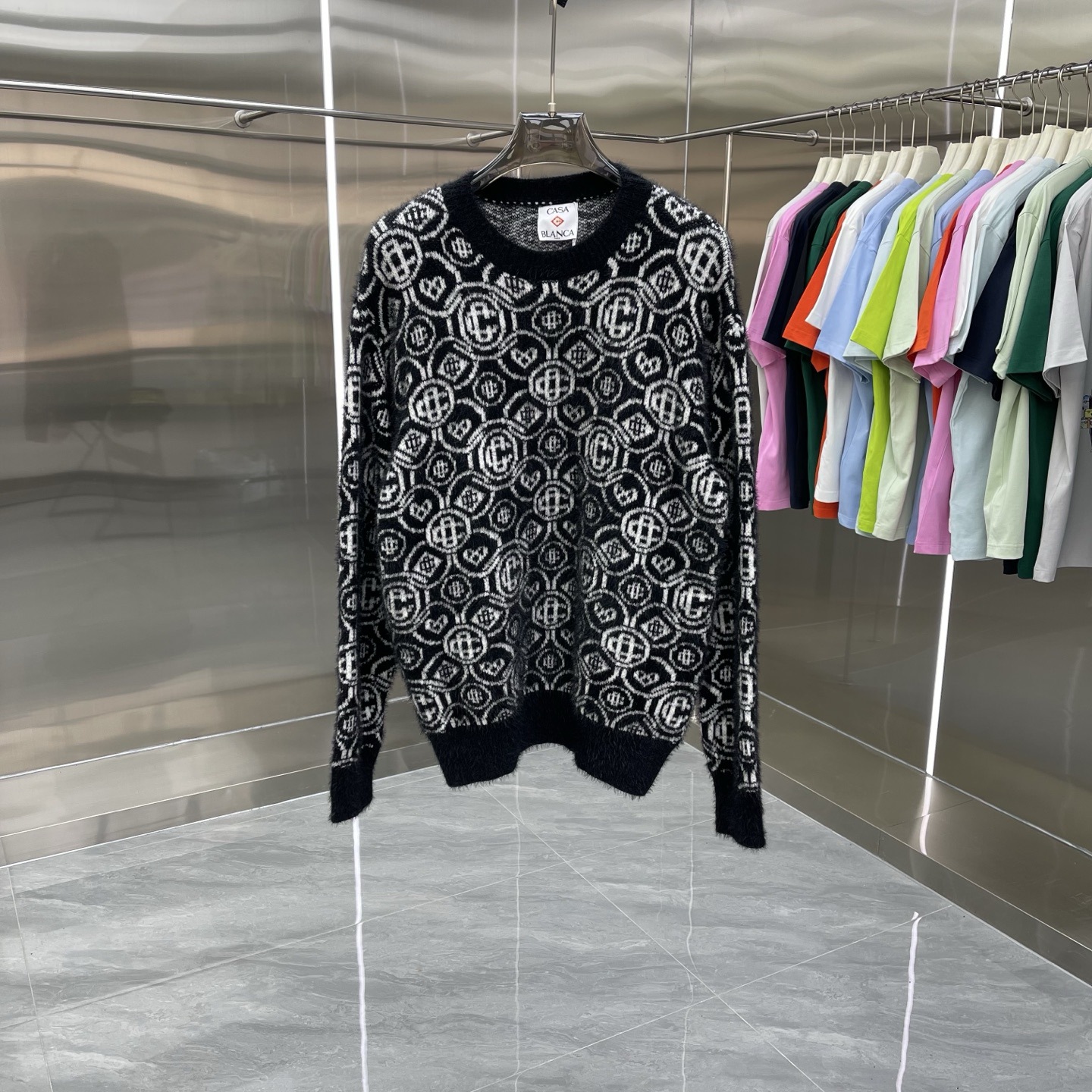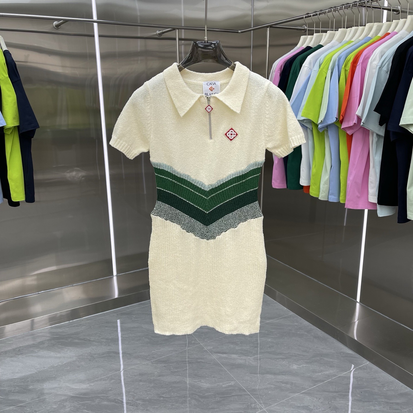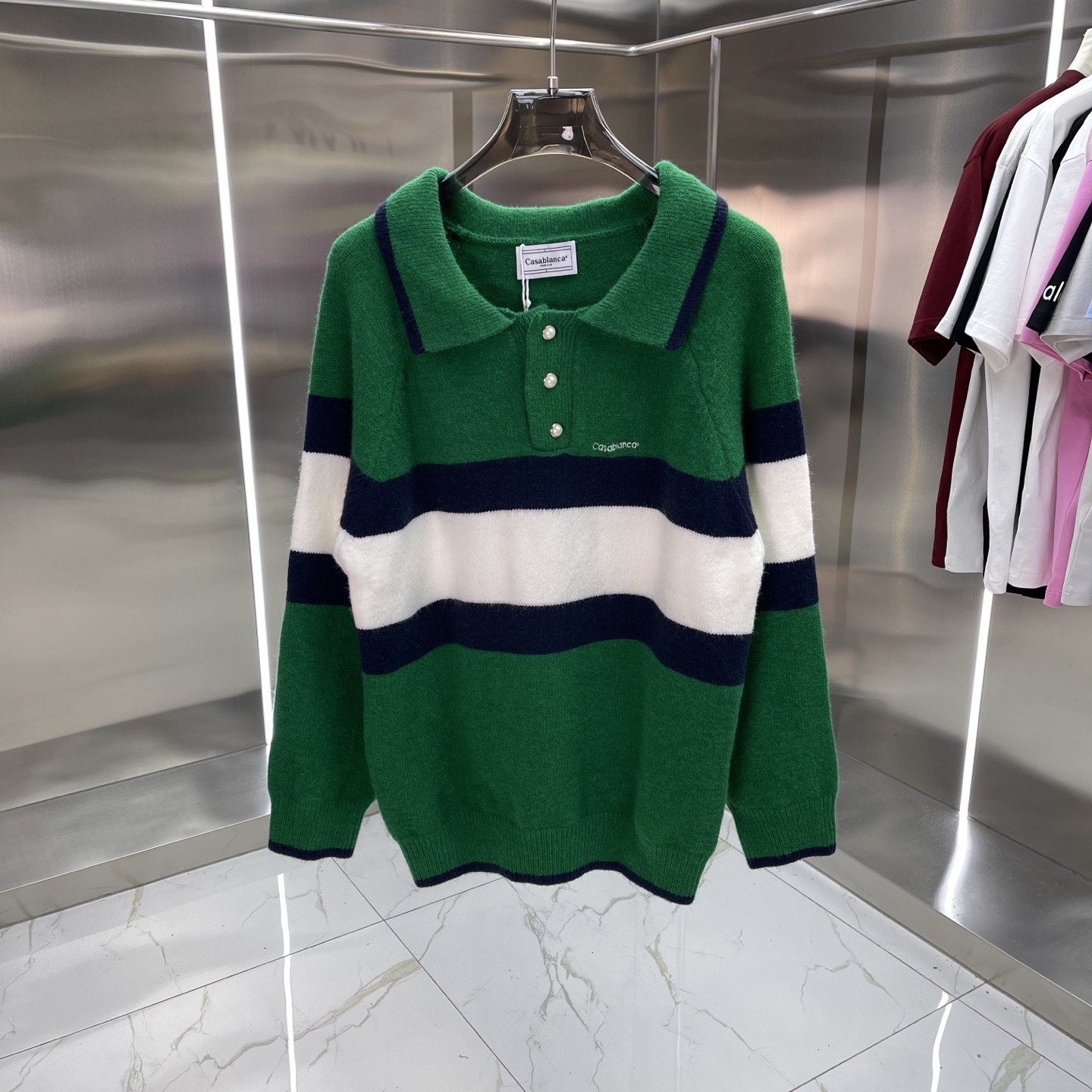 유럽과 미국의 대외 무역 카사 카사블랑카 스웨터 반팔 자카드 가디건 폴로 셔츠 커플 반바지 세트스토어 가기