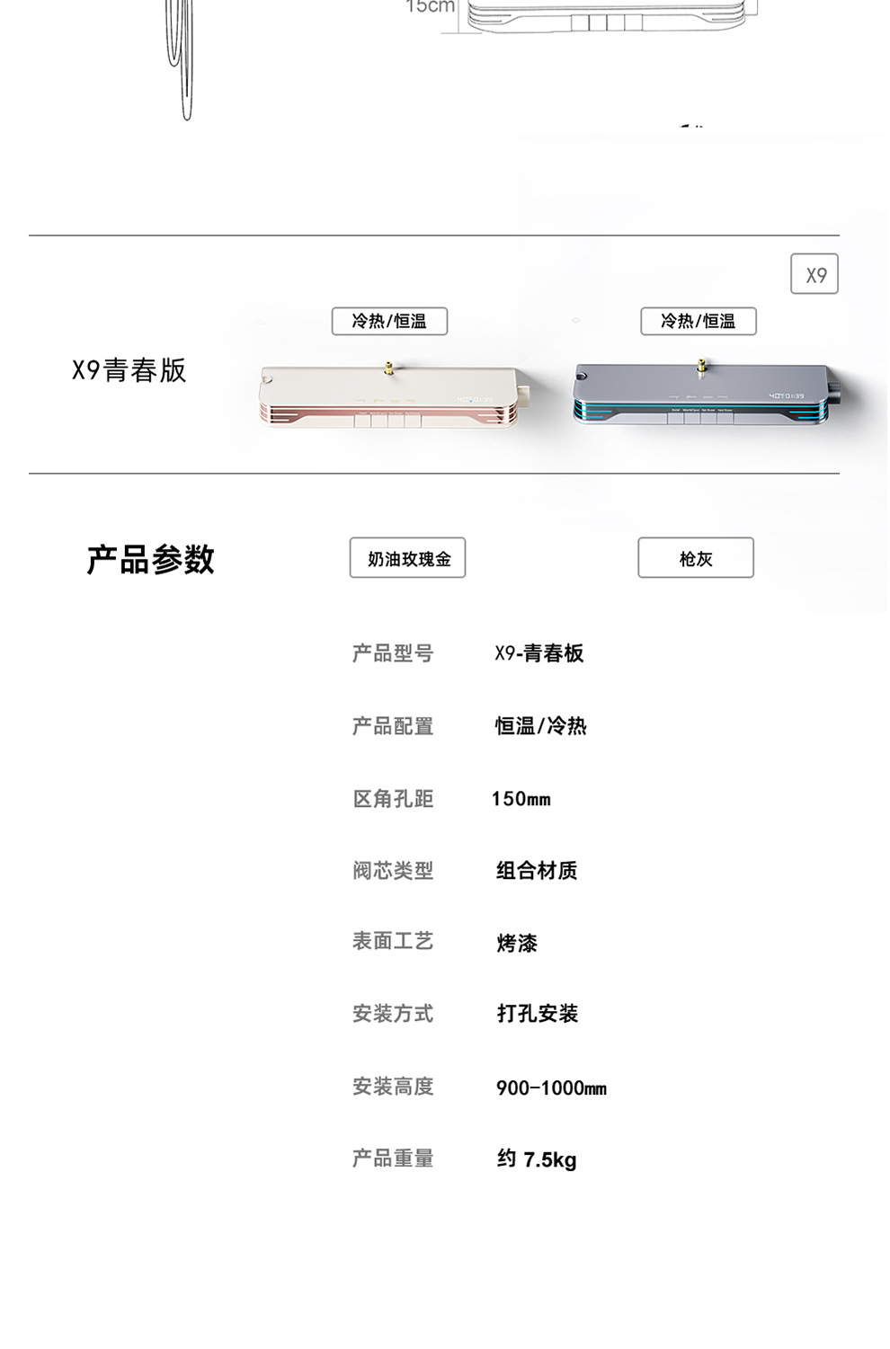 • 밀크 화이트 로즈 골드(핫 및 콜드 버전) X9 표준 버전 샤워 세트