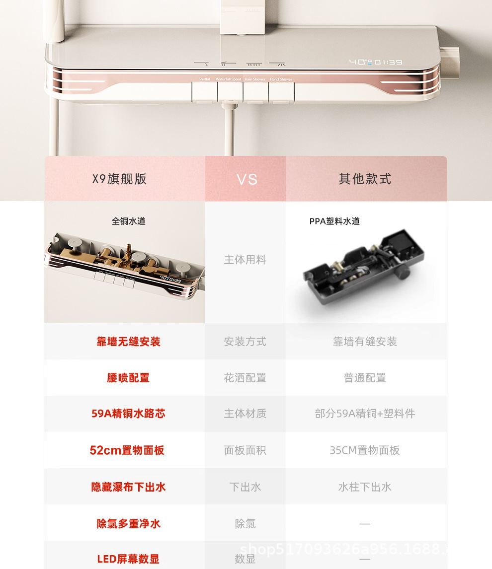 • 밀크 화이트 로즈 골드(핫 및 콜드 버전) X9 플래그십 버전 백워시 전기능 샤워 헤드