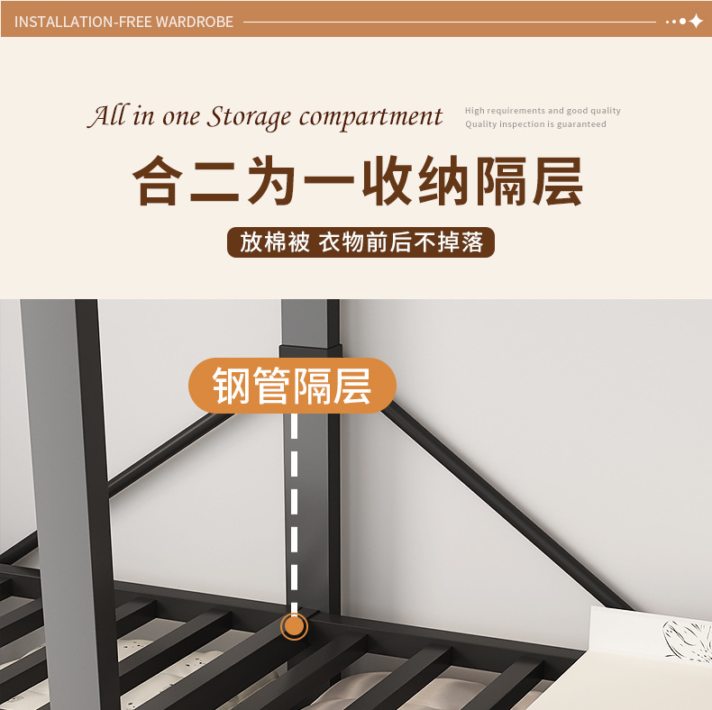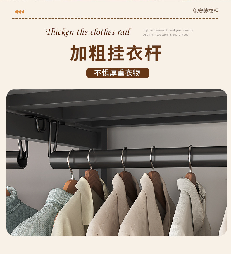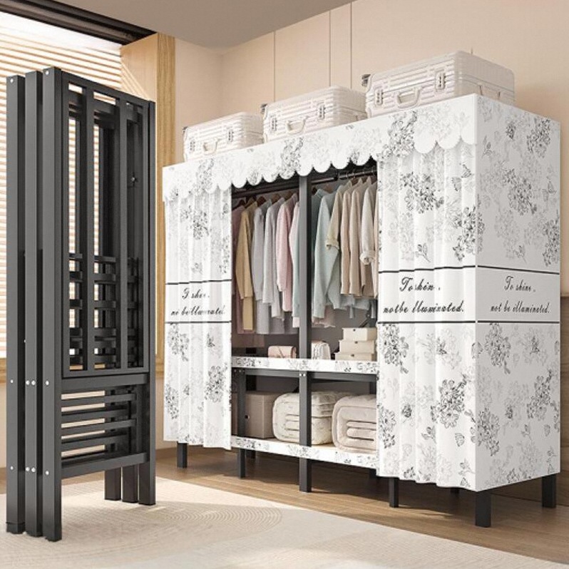 설치가 필요 없는 접이식 옷장, 가정용 침실, 간단한 천 옷장, 튼튼하고 내구성이 뛰어난 임대용 옷장 보관함 Tω