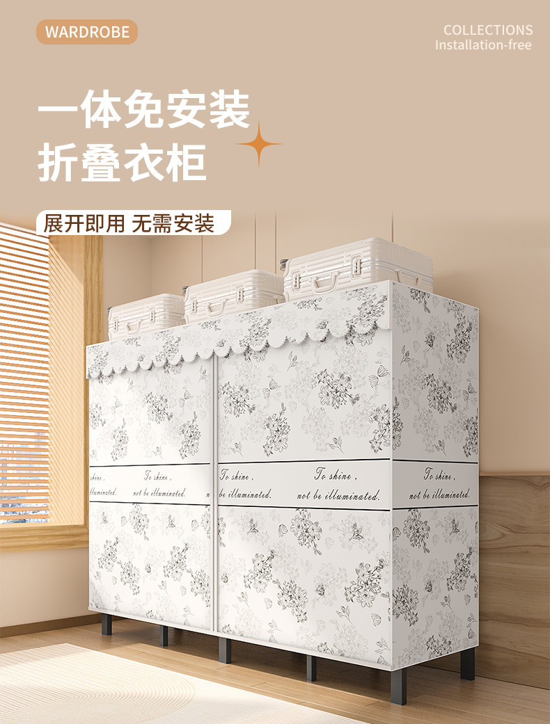 설치가 필요 없는 접이식 옷장, 가정용 침실, 간단한 천 옷장, 튼튼하고 내구성이 뛰어난 임대용 옷장 보관함 Tω스토어 가기