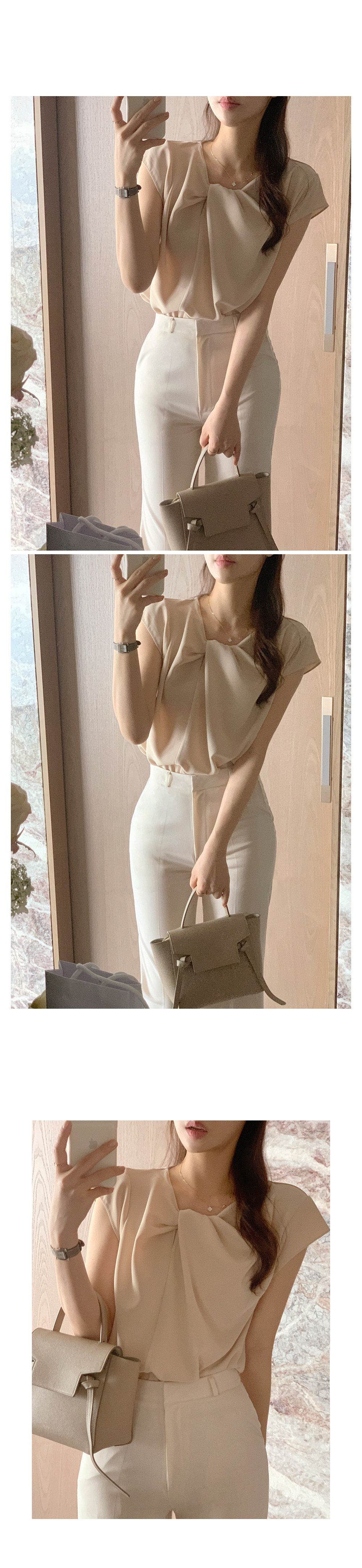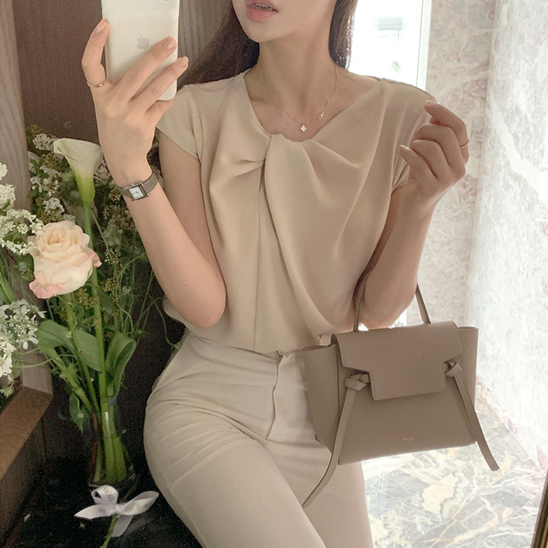 한국 틈새 디자인 입체 주름 트위스트 쉬폰 셔츠 여성 여름 신작 프렌치 스타일 셔츠 탑스토어 가기
