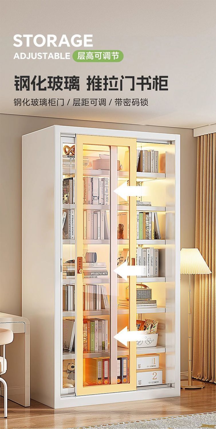 Meihang 가정용 책장 어린이 책장 바닥에서 천장까지의 선반 유리 디스플레이 캐비닛 슬라이딩 도어 보관 캐비닛 보관 캐비닛스토어 가기
