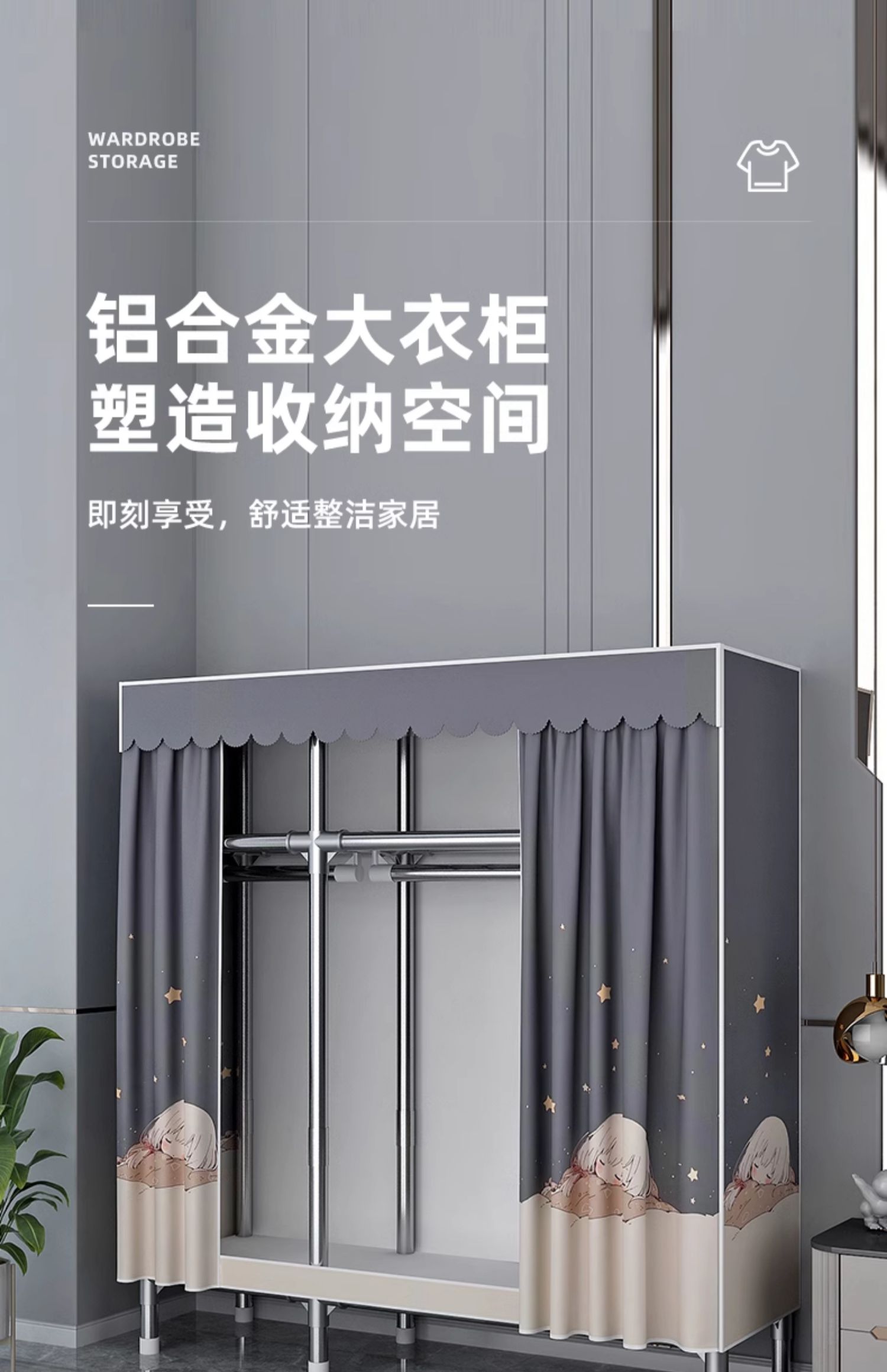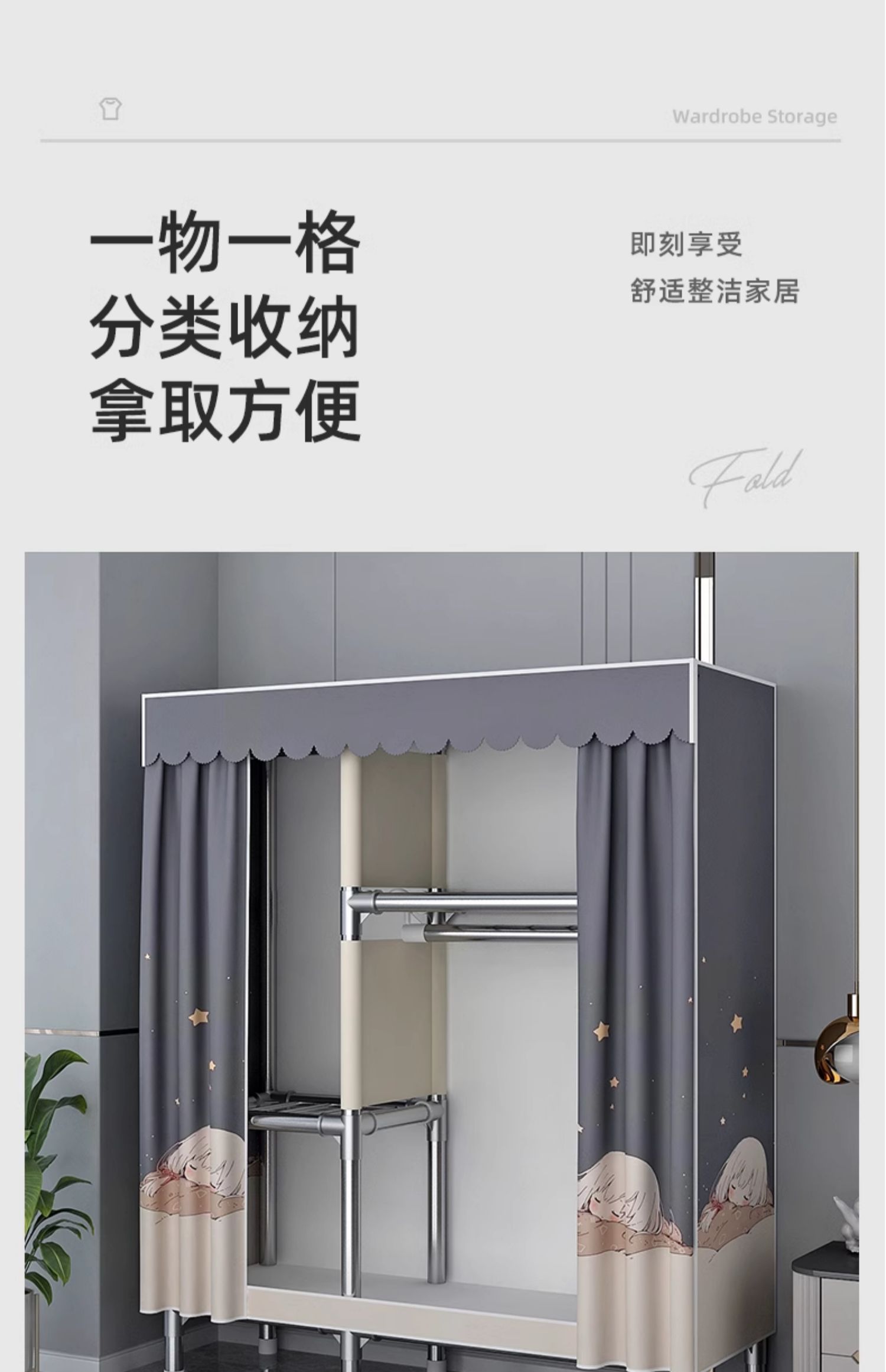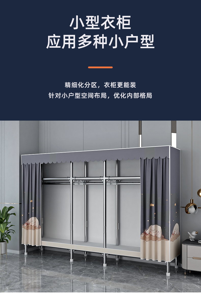 가정용 침실 임대실을 위한 간단한 조립식 천 옷장, 전체 강철 프레임, 두껍고 강하며 내구성이 뛰어나고 작은 아파트를 위한 경제적스토어 가기