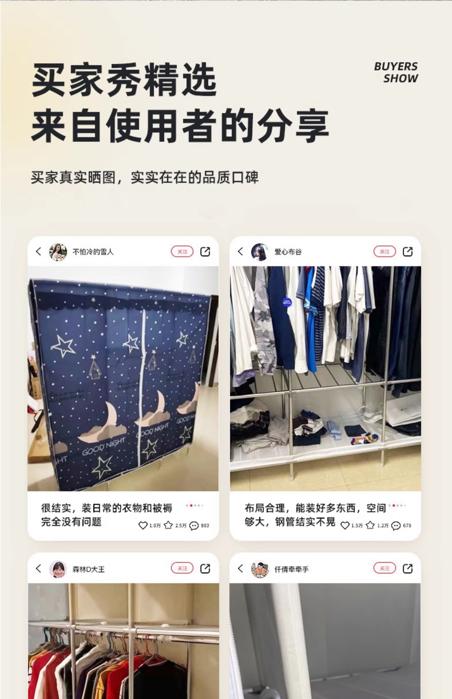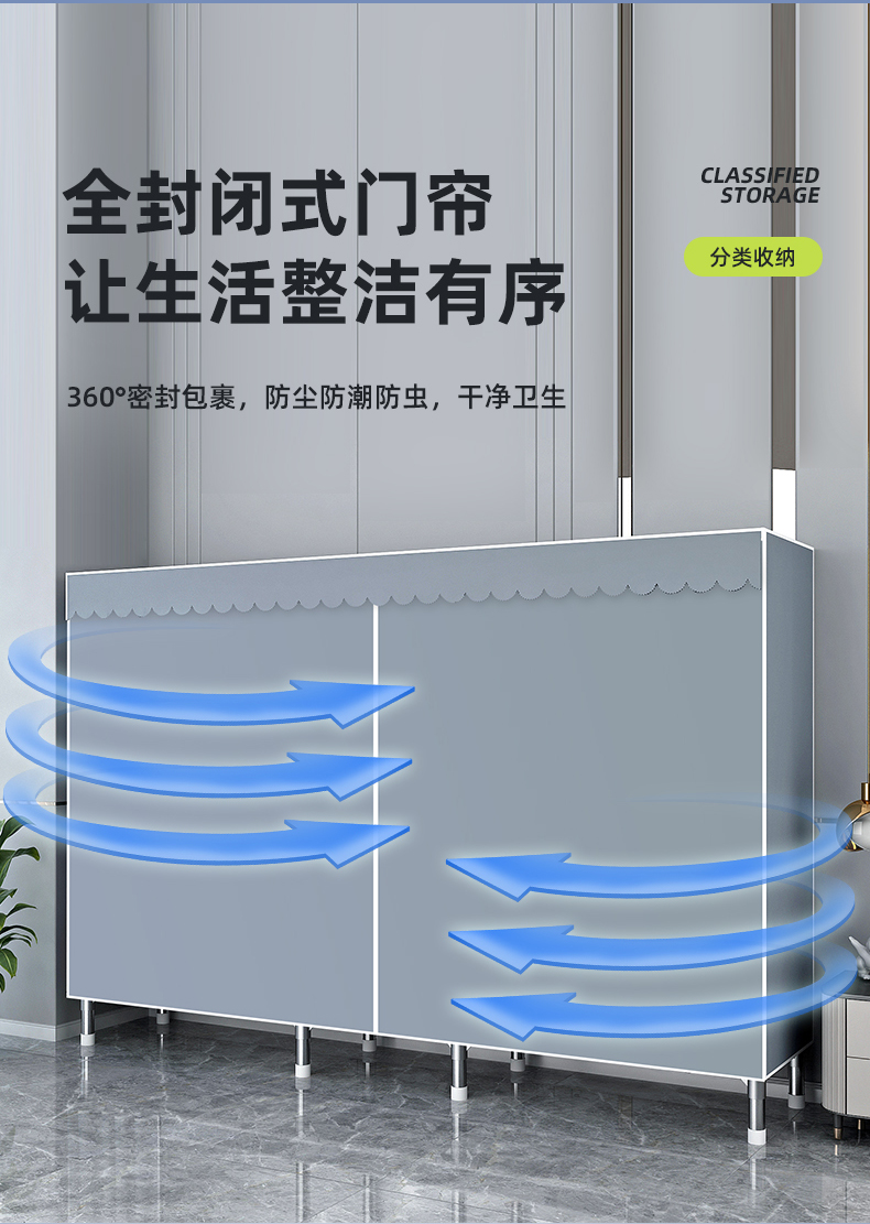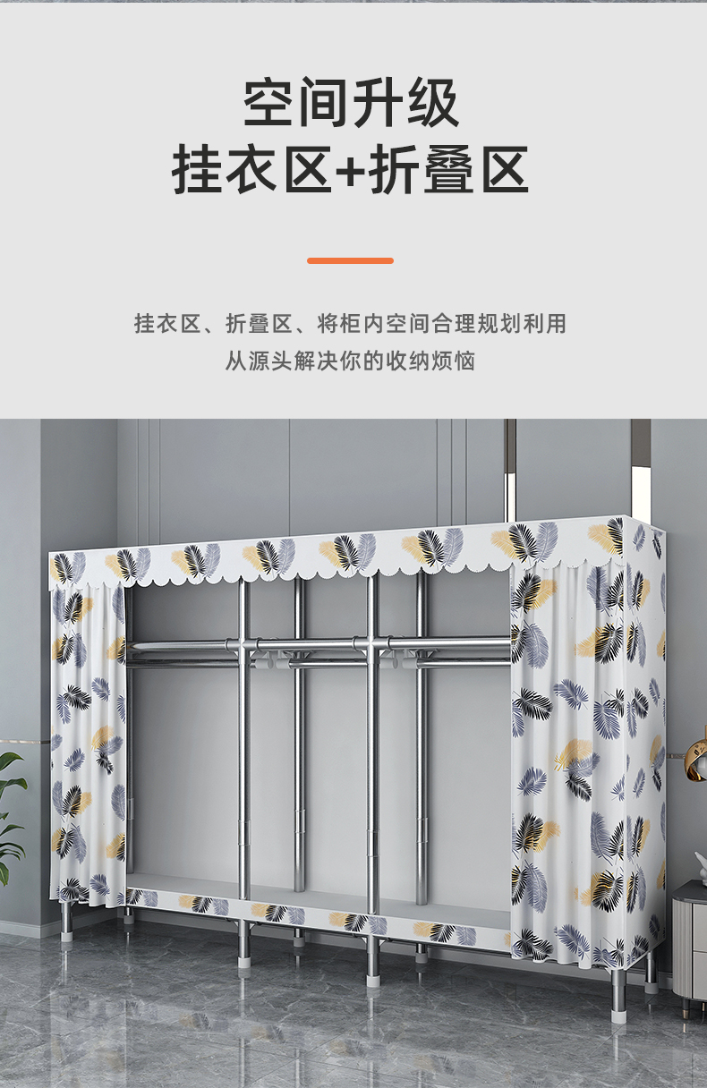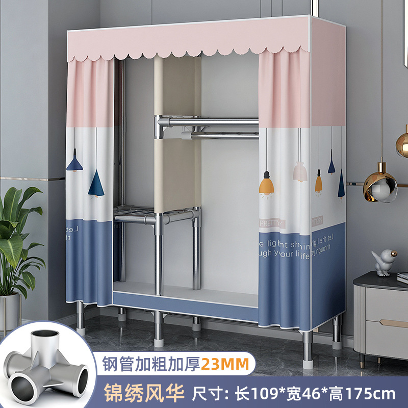 가정용 침실 임대실을 위한 간단한 조립식 천 옷장, 전체 강철 프레임, 두껍고 강하며 내구성이 뛰어나고 작은 아파트를 위한 경제적스토어 가기