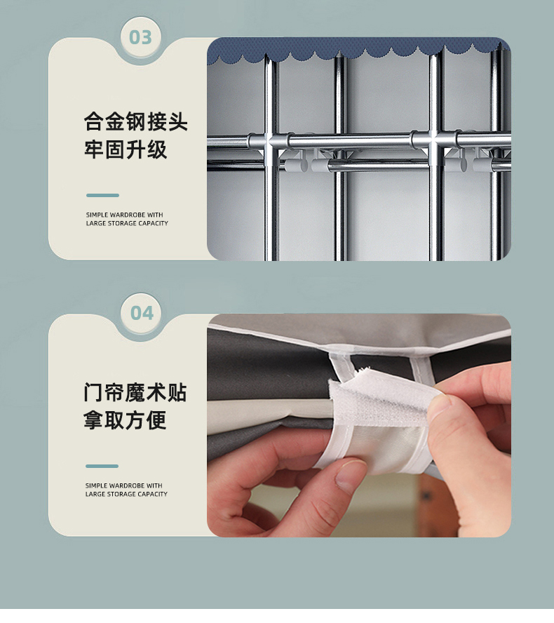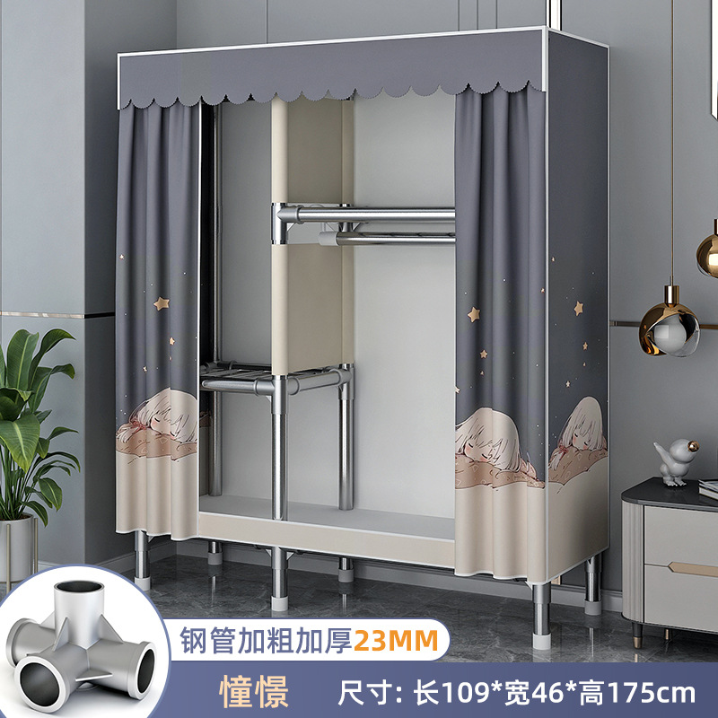 가정용 침실 임대실을 위한 간단한 조립식 천 옷장, 전체 강철 프레임, 두껍고 강하며 내구성이 뛰어나고 작은 아파트를 위한 경제적