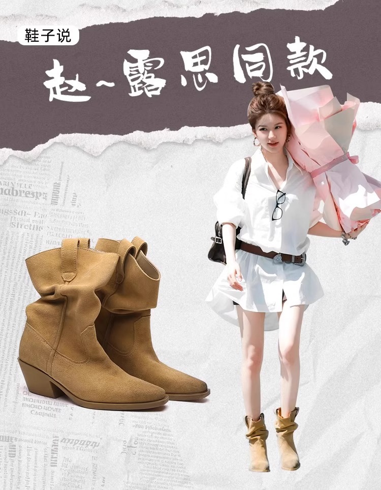 소가죽 버전 ~ 여성용 두꺼운 굽 천연가죽 마틴부츠, 레트로 웨스턴 데님 스택부츠, 여성용 스퀘어토 첼시부츠스토어 가기