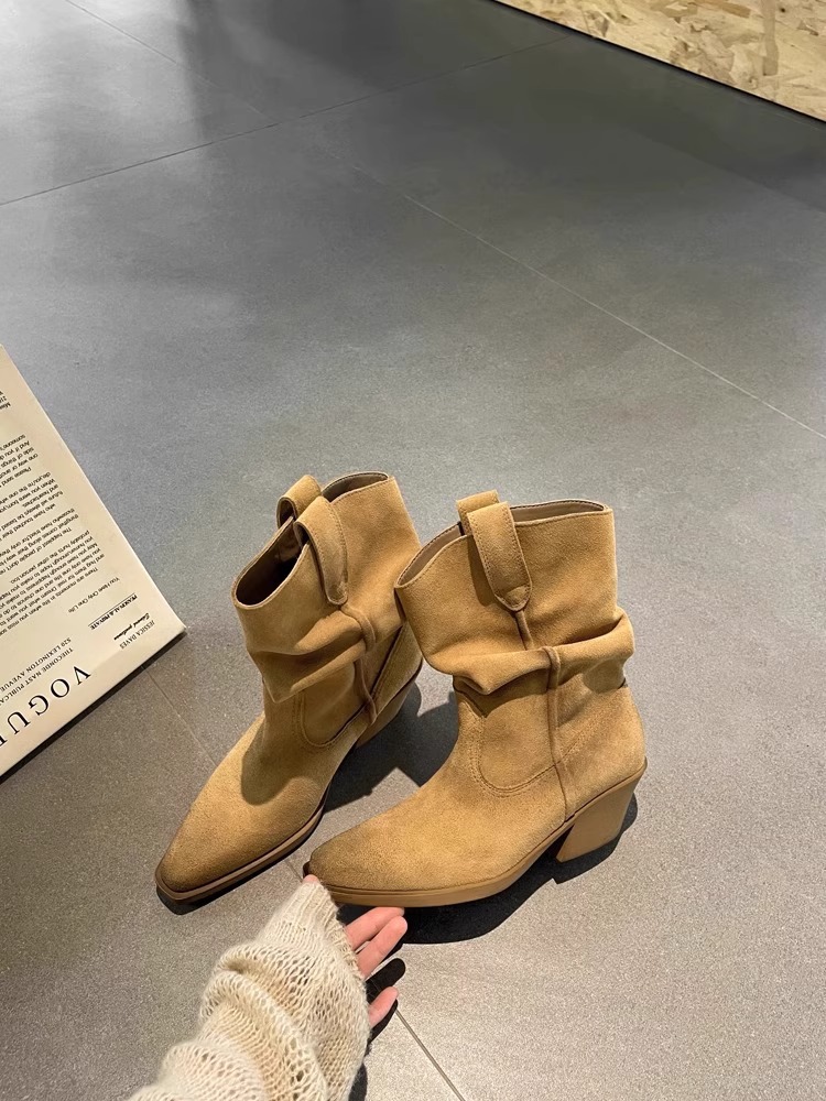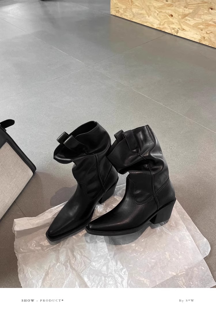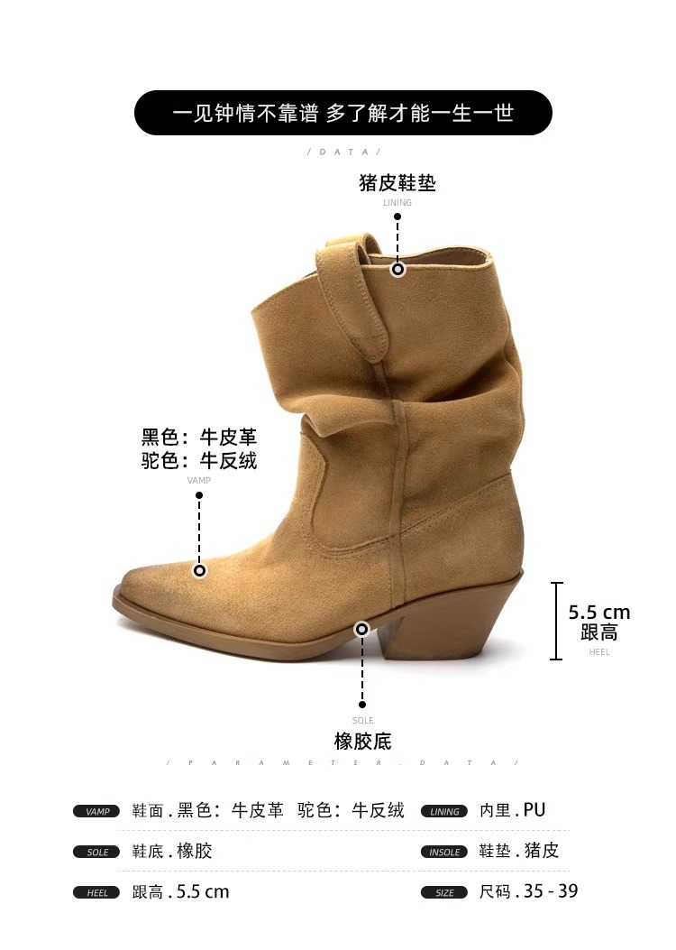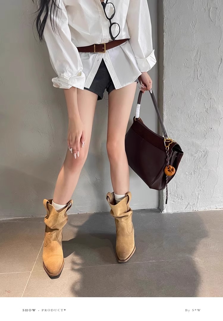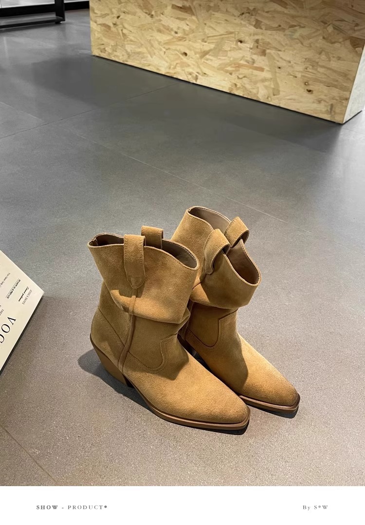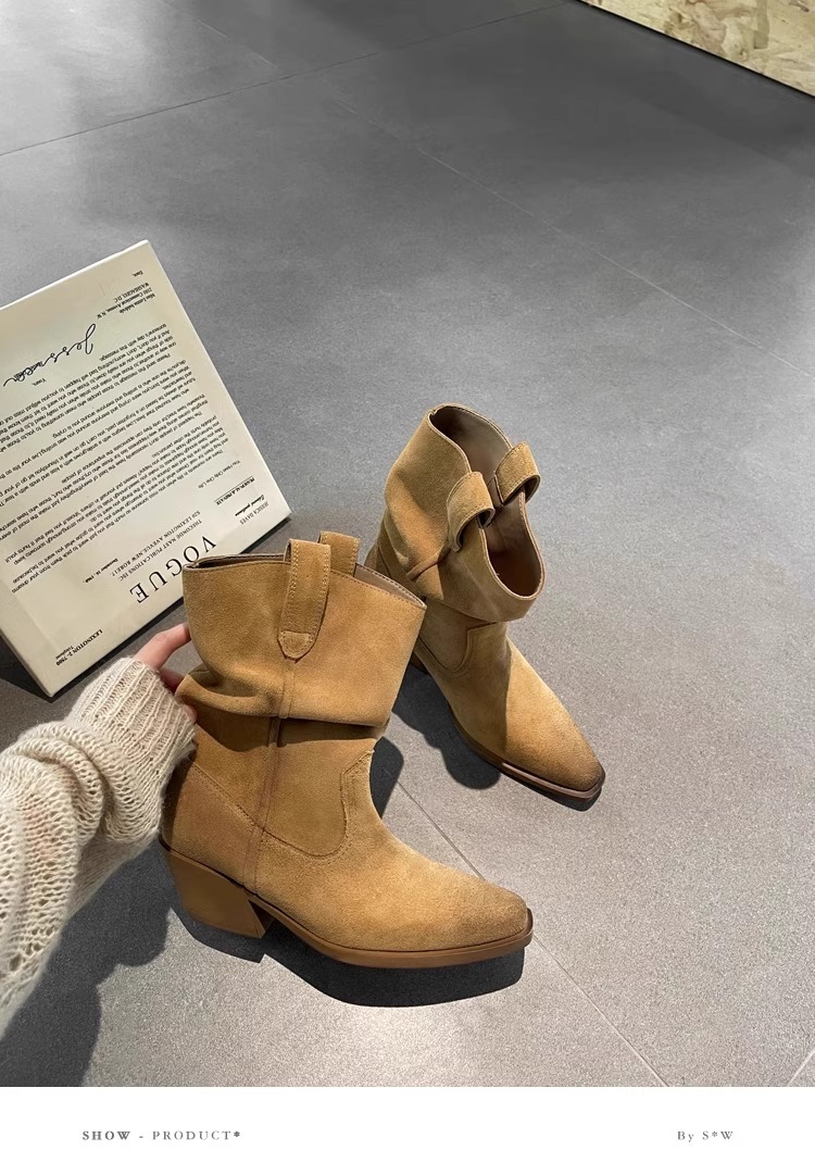 소가죽 버전 ~ 여성용 두꺼운 굽 천연가죽 마틴부츠, 레트로 웨스턴 데님 스택부츠, 여성용 스퀘어토 첼시부츠