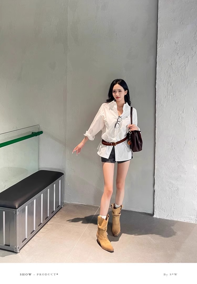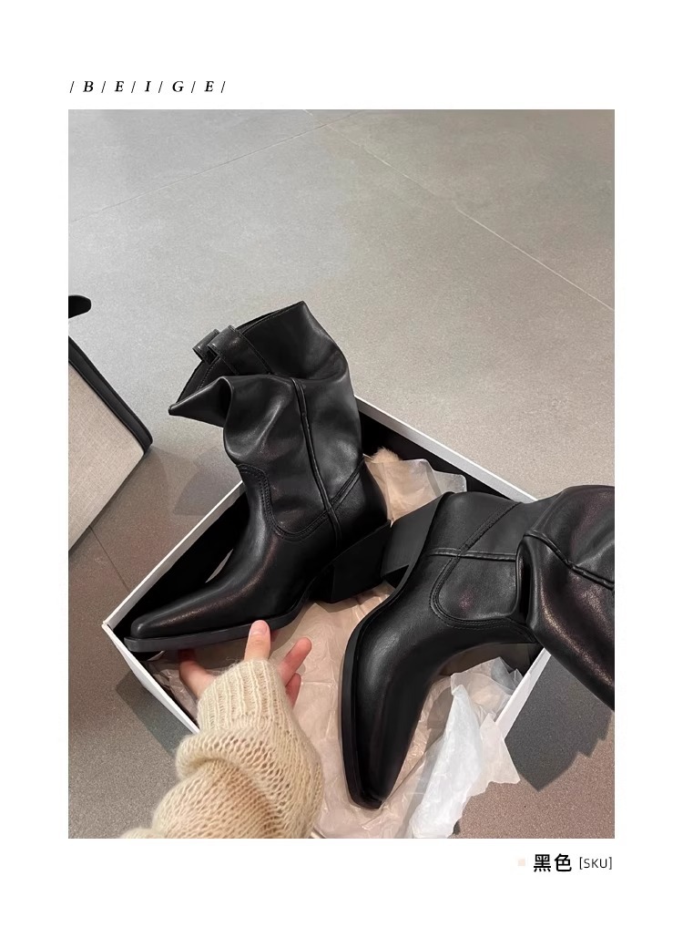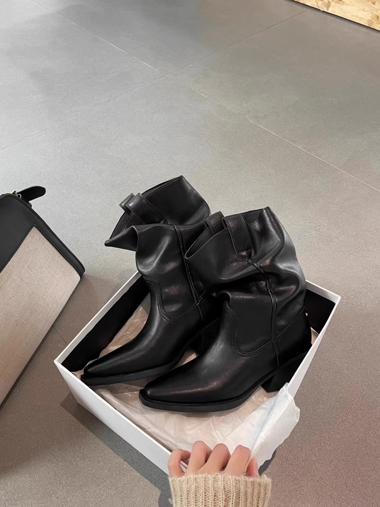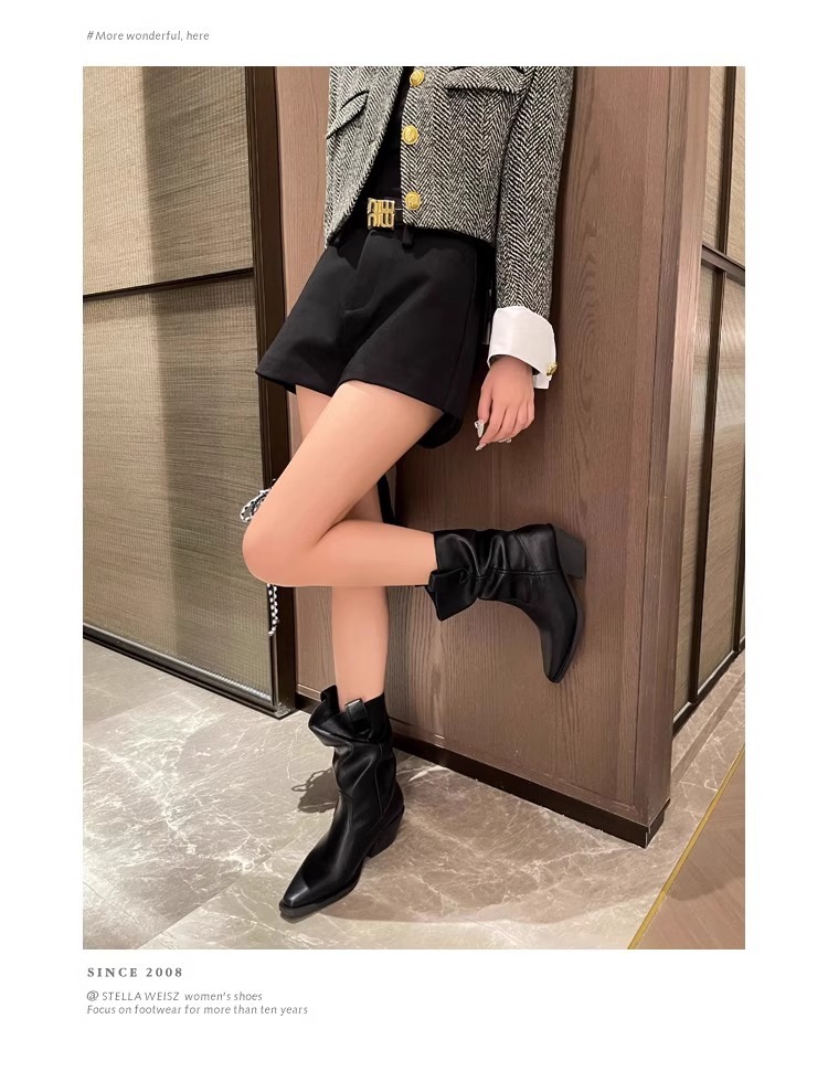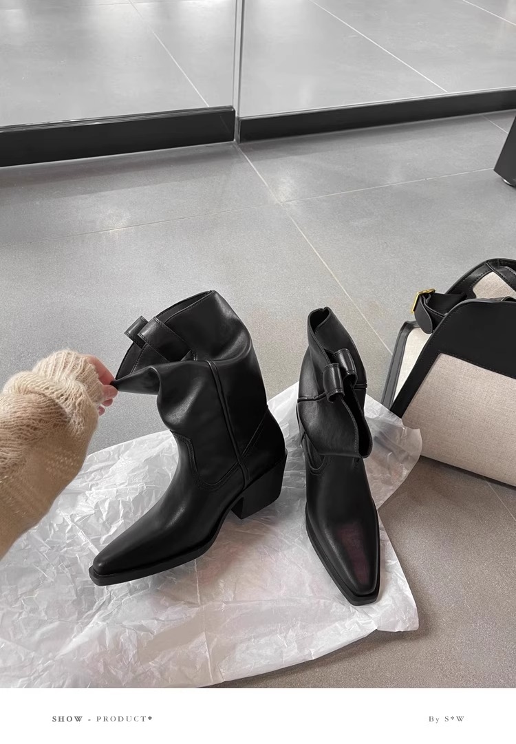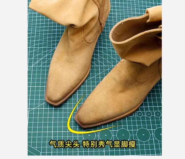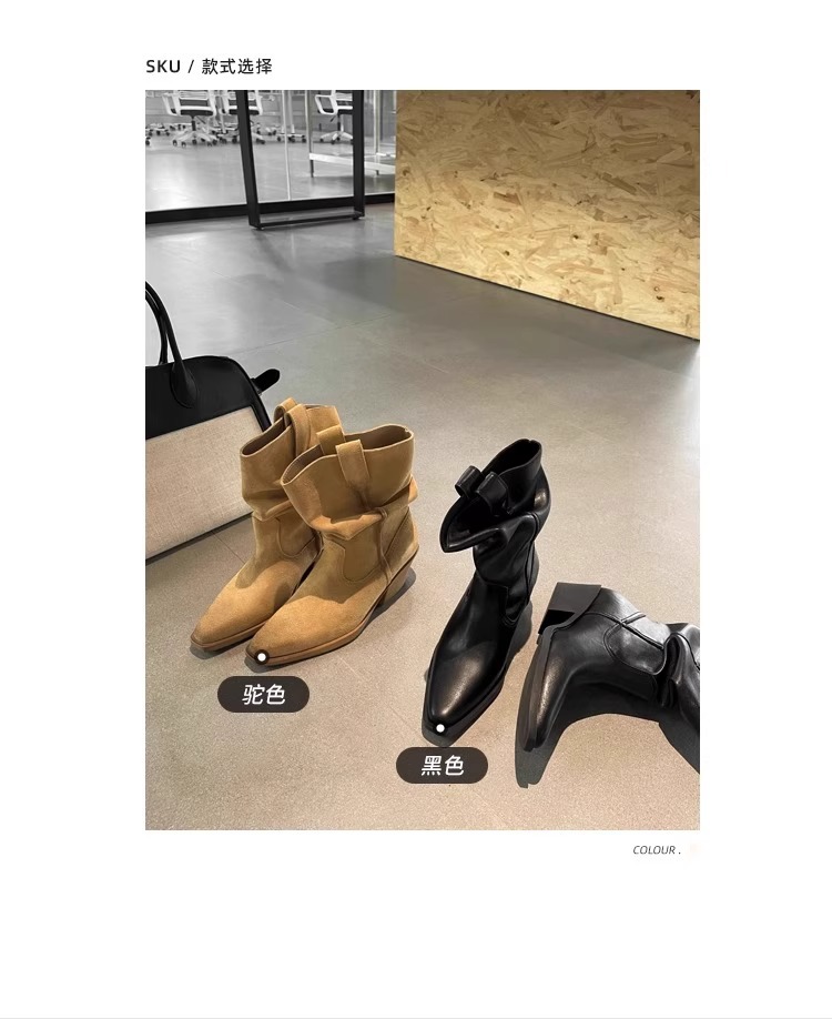 소가죽 버전 ~ 여성용 두꺼운 굽 천연가죽 마틴부츠, 레트로 웨스턴 데님 스택부츠, 여성용 스퀘어토 첼시부츠